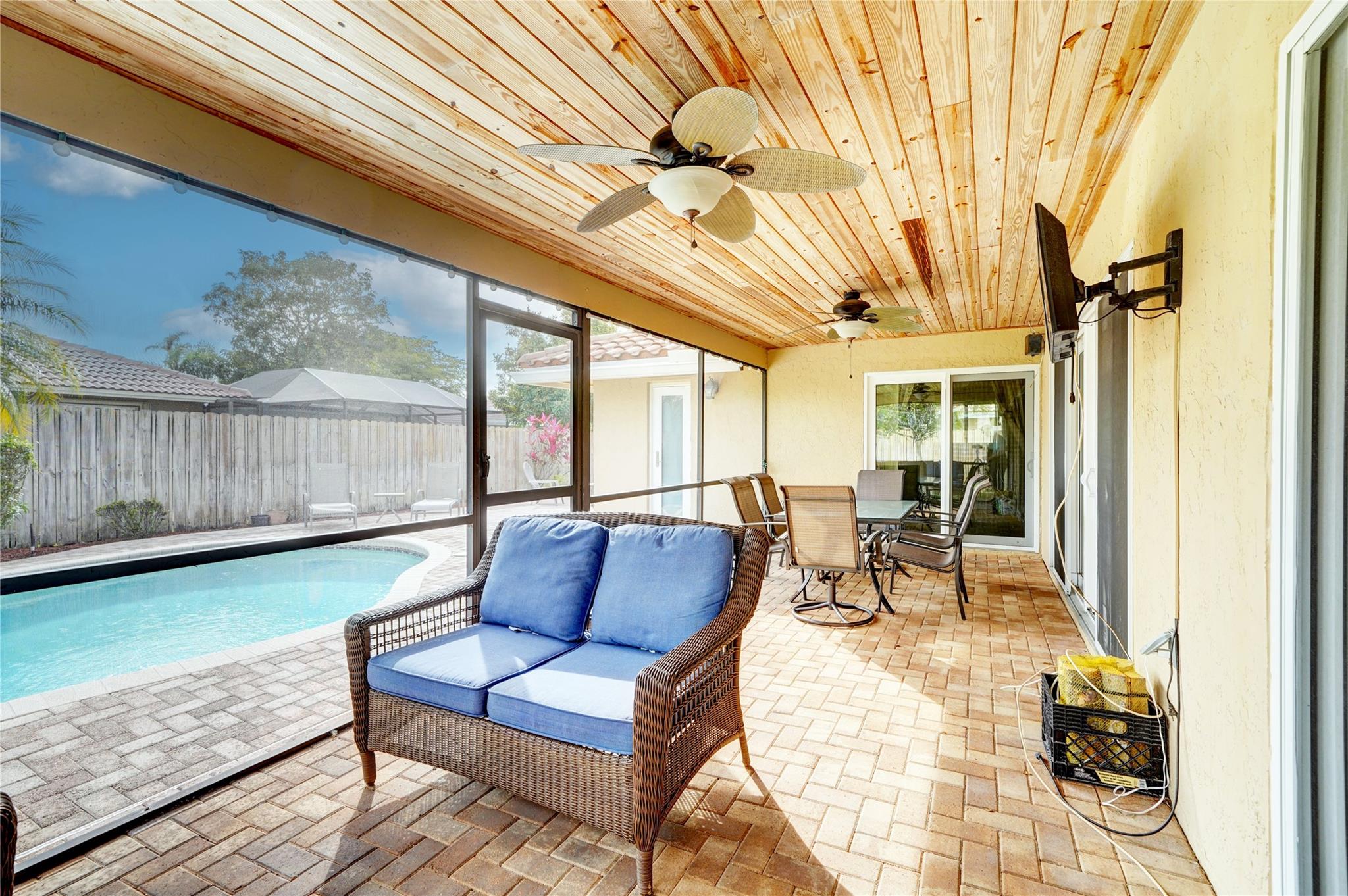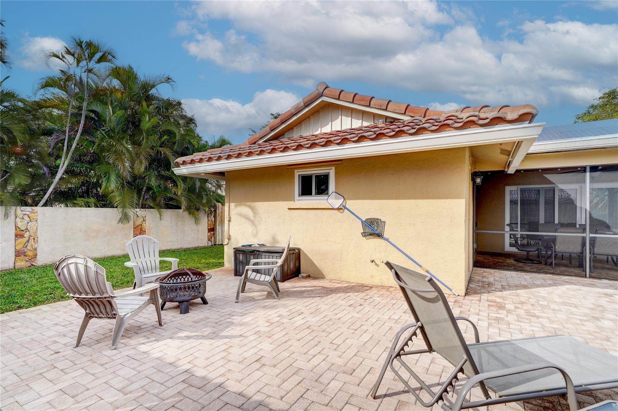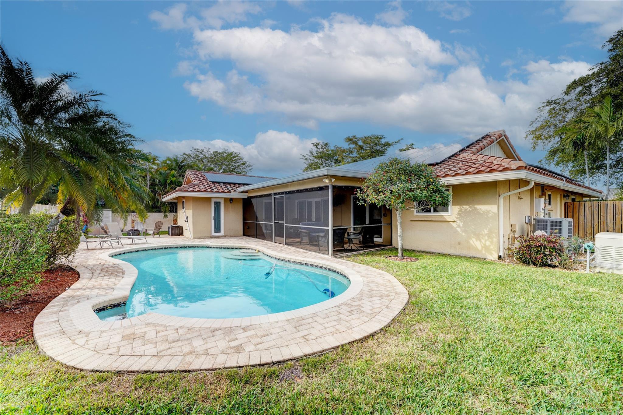 Welcome to your dream home! No HOA! This single-family home features 3 bedrooms, 2 bathrooms, A grand circular paver driveway, Upgraded kitchen with SS appliances, real wood cabinets, granite counters, engineered hardwood floors in living, dining room & Primary, tile through out the main house, New carpet in two of the bedrooms. Dive into luxury with your pool surrounded by your updated paver patio. Stay prepared with a House generator (Propane tank installed) and benefit from solar panels for an electric bill less than $30 per month. ALL IMPACT WINDOWS,WH & AC 2019 & Roof 2018. Separate laundry room adds convenience. Screened patio for outdoor living. Fenced backyard offers privacy. Experience the perfect blend of comfort, style, and functionality. Your dream home awaits! Hurry!