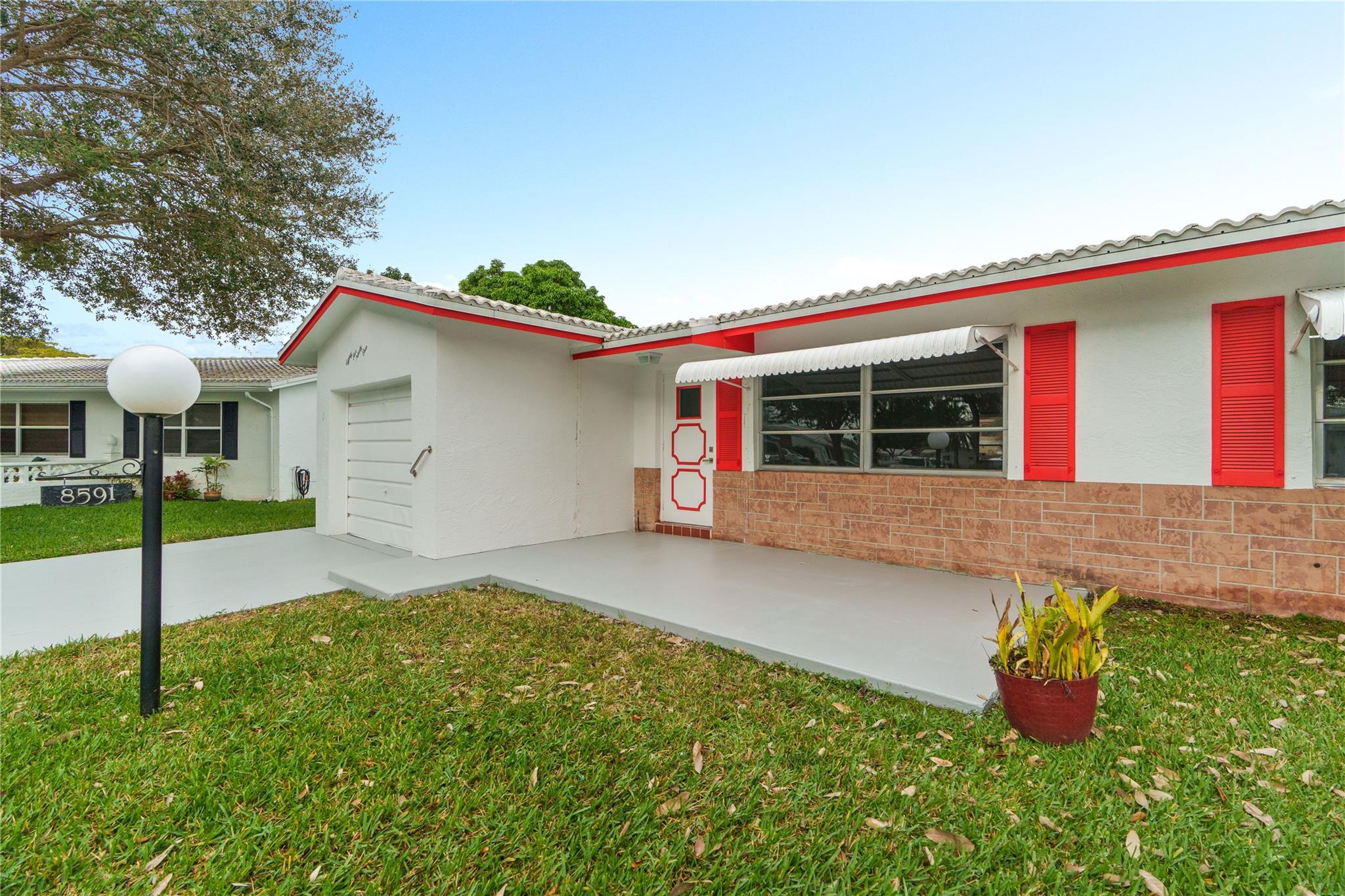 LAUDERDALE WEST 2/2 W/GARAGE. WATERFRONT! Premier 55+ community; tile and laminate floors, fresh paint, smooth ceilings, double wide concrete driveway, 5-year-old tile roof, stainless steel appliances, front & rear patios. Clean & move in ready for your custom updates to kitchen/baths. Low maintenance includes repair/replace of roof, Cable TV & Internet, free courtesy bus at your door to shopping and more, lawn service, exterior house painting, heated pools (2), spas (2), tennis courts (3), pool tables, ping pong, card rooms, professional shows, community parties, fully equipped fitness center and more. Very active community close to shopping, restaurants & parks. 20 min to beaches, airport, cruise ships & more. PRICED TO SELL.
