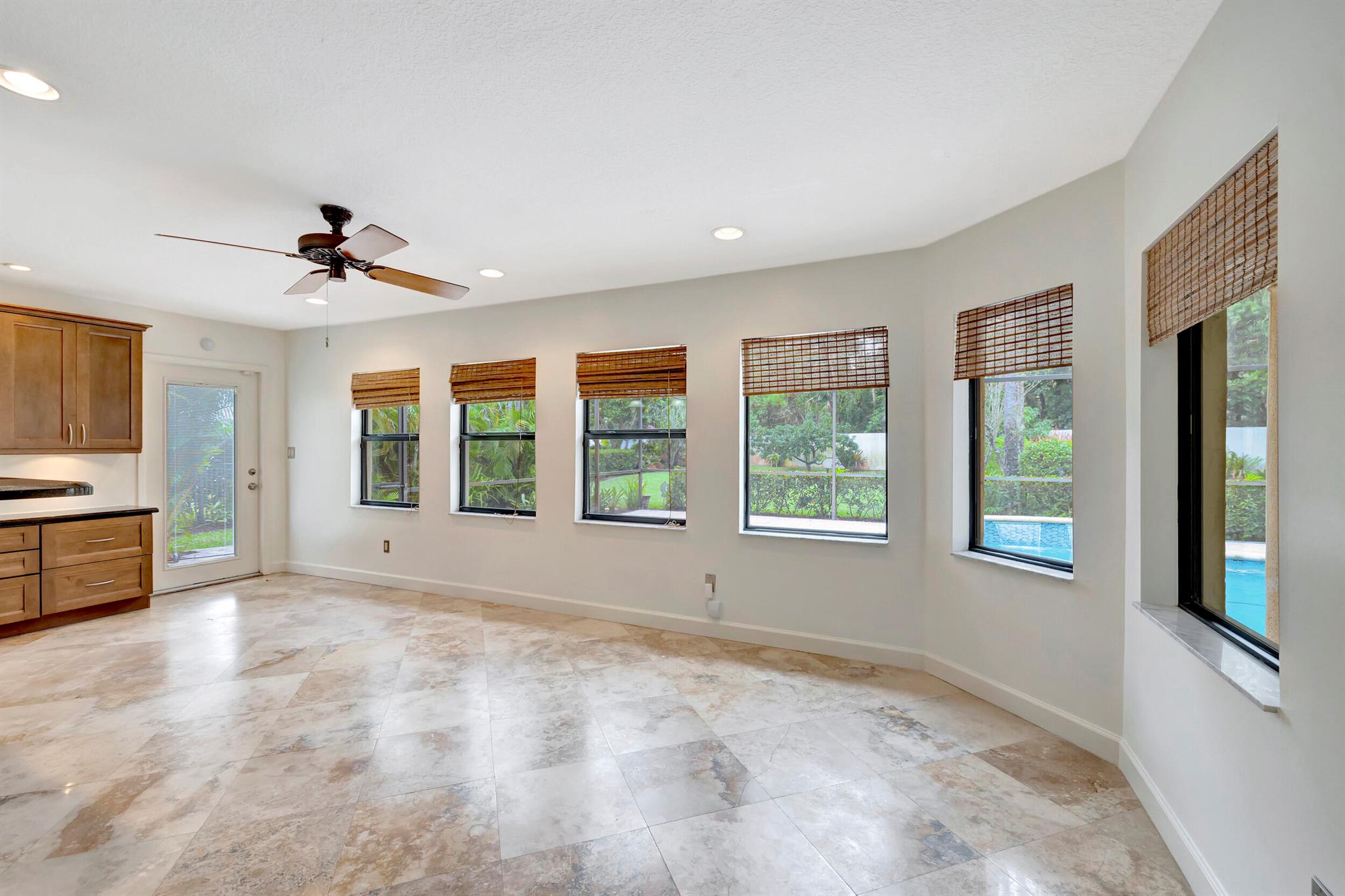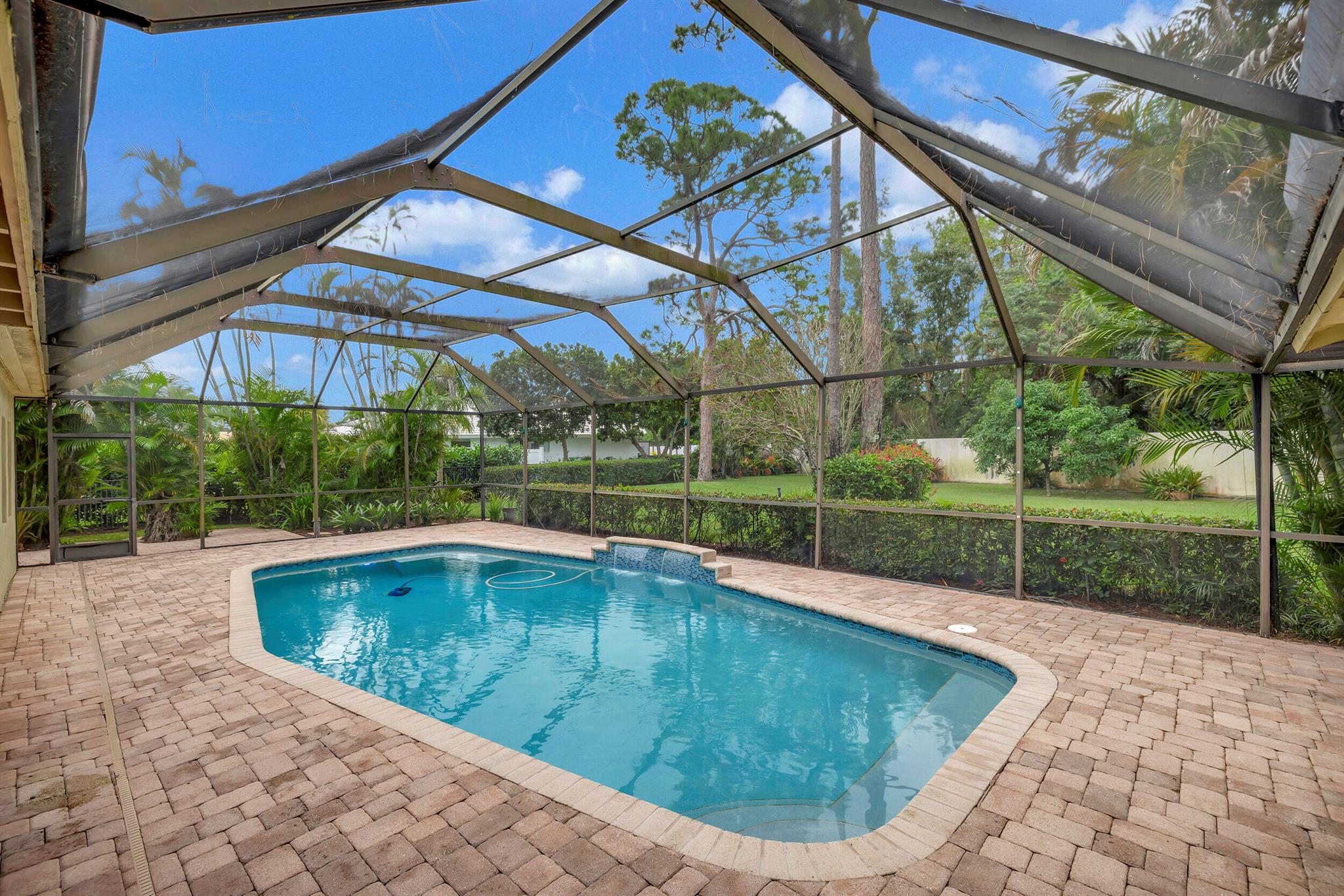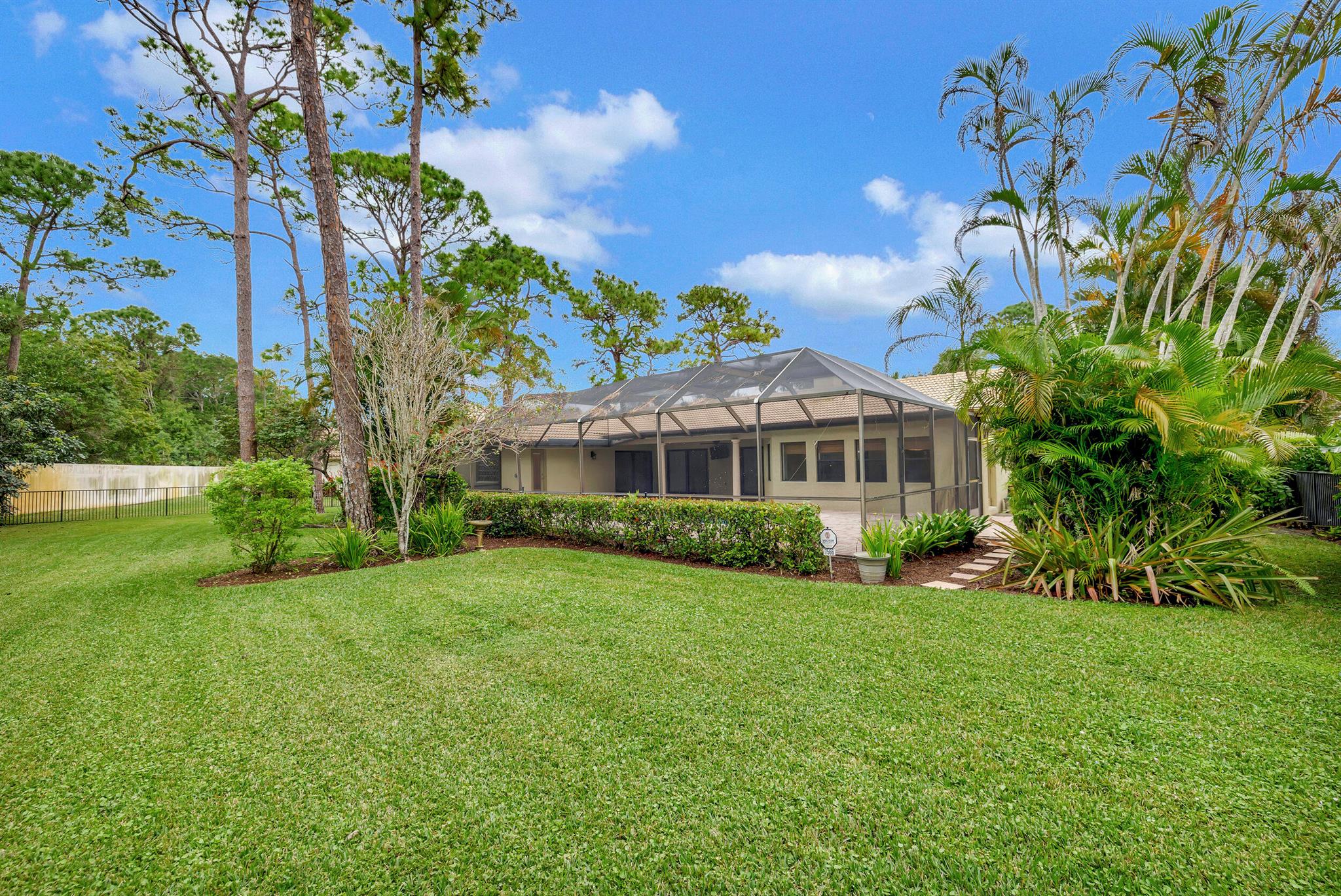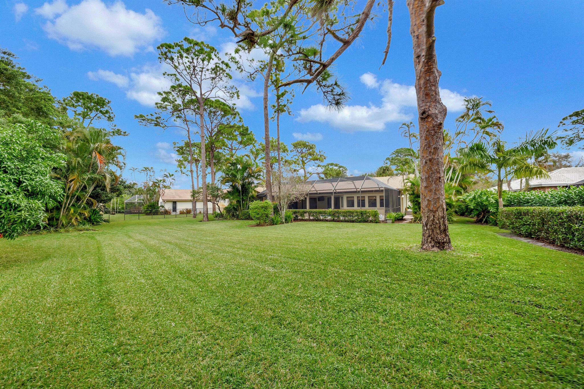 Discover this rare find nestled on a half-acre lot in the heart of Boca. A hidden gem, this absolutely beautiful home is discreetly tucked away in the back of the community, ensuring tranquility and privacy. The property boasts a sprawling fenced 1/2 acre lot, providing a sense of exclusivity and space. Security is paramount with a 24-hour manned security gate, offering peace of mind for residents. The large screened patio & pool area create a perfect retreat for relaxation and entertainment, surrounded by lush greenery for added serenity. Inside, the home showcases vaulted pickled cedar ceilings, adding a touch of sophistication and warmth. The expansive layout includes a large family room, a formal dining room, ideal for hosting gatherings and creating lasting memories. *CLICK MORE*