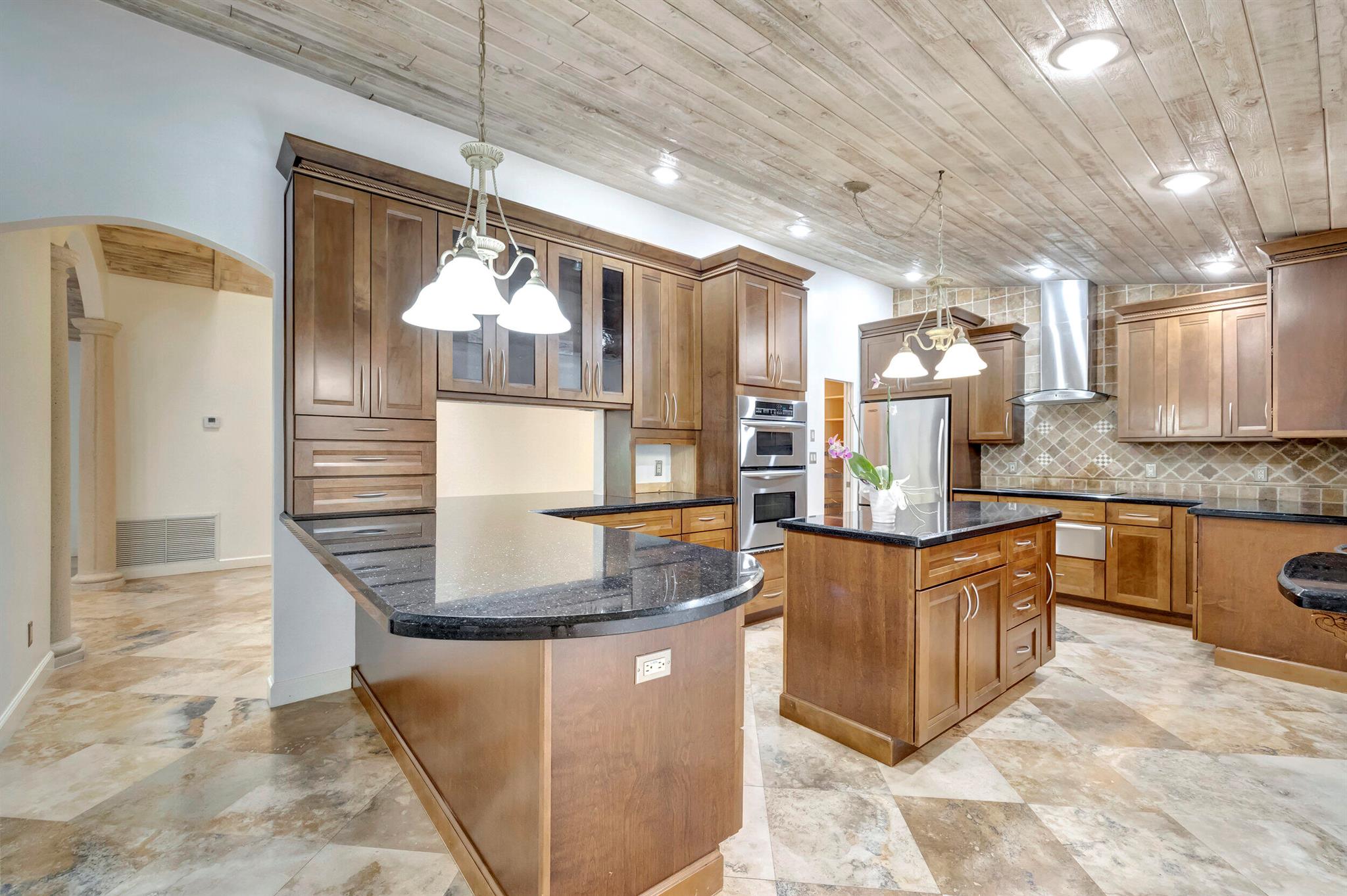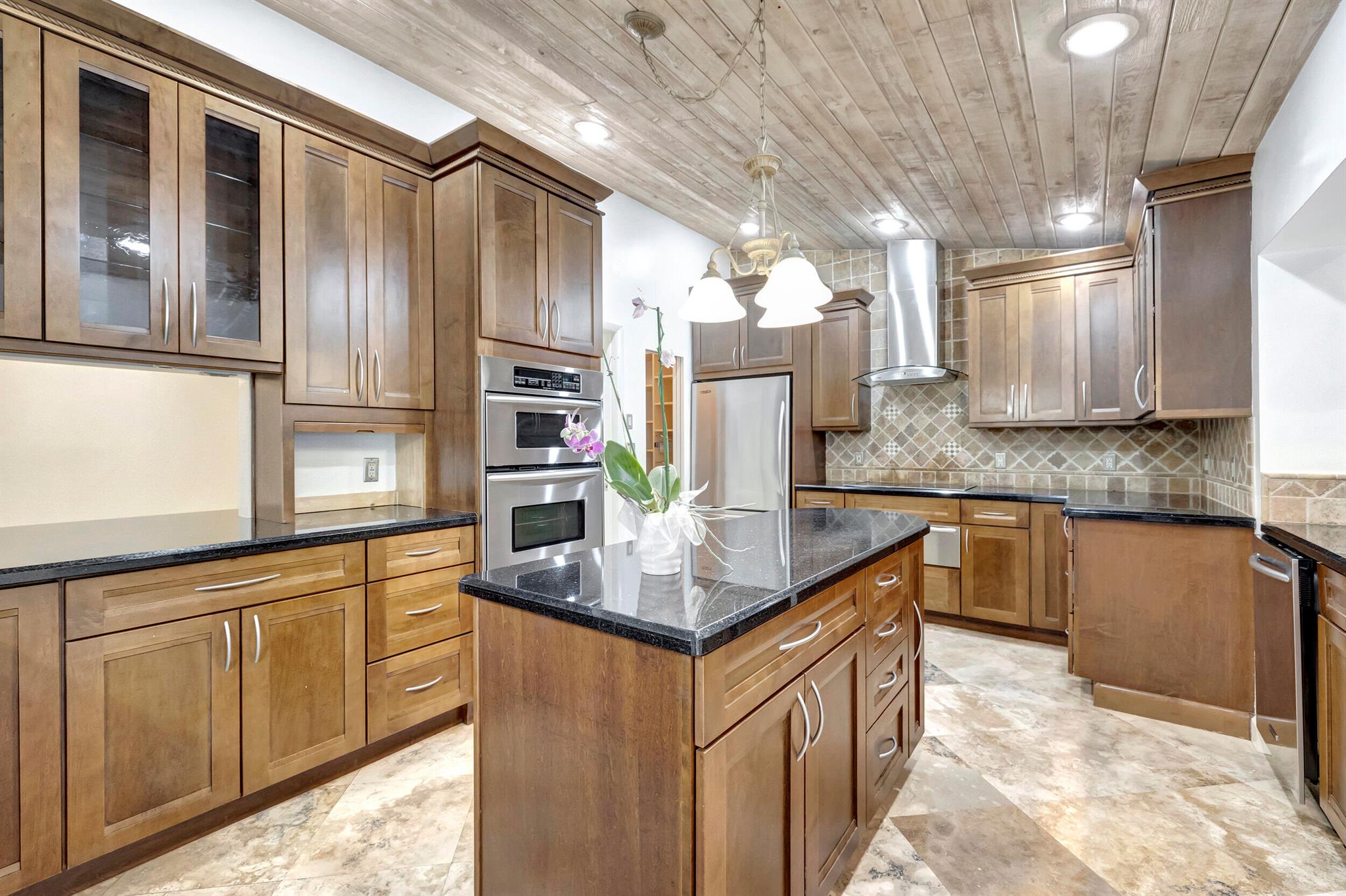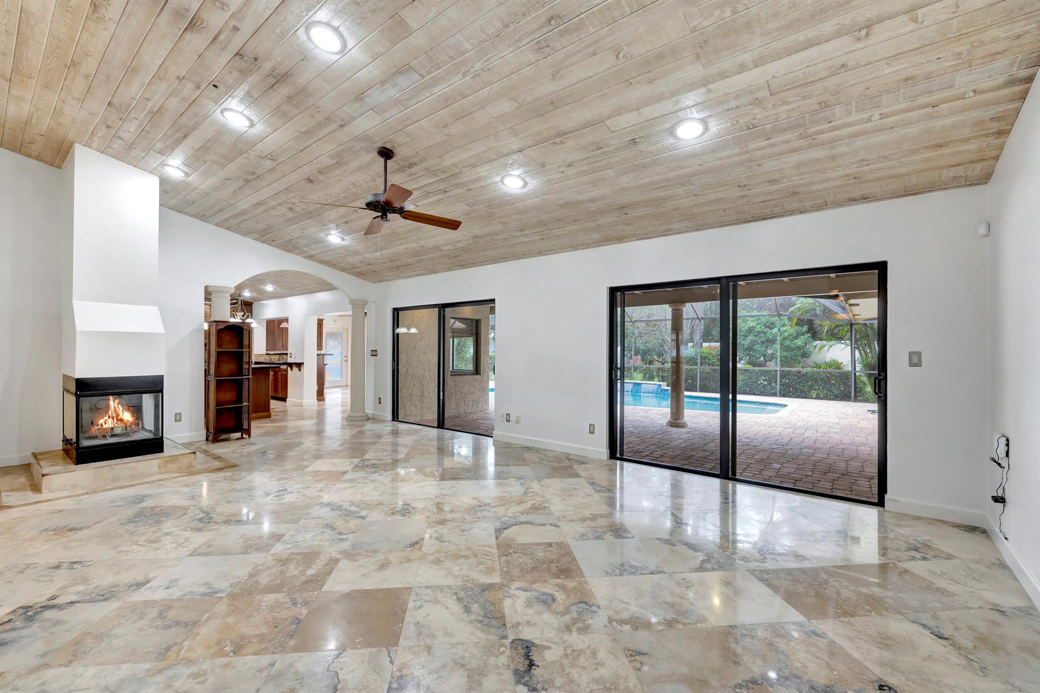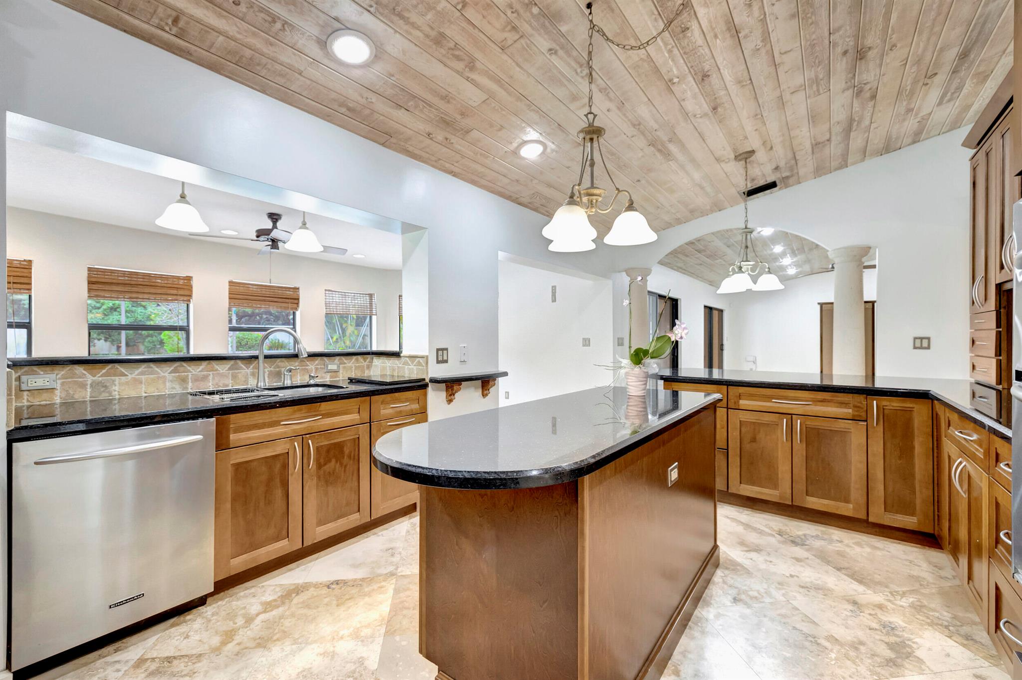 Discover this rare find nestled on a half-acre lot in the heart of Boca. A hidden gem, this absolutely beautiful home is discreetly tucked away in the back of the community, ensuring tranquility and privacy. The property boasts a sprawling fenced 1/2 acre lot, providing a sense of exclusivity and space. Security is paramount with a 24-hour manned security gate, offering peace of mind for residents. The large screened patio & pool area create a perfect retreat for relaxation and entertainment, surrounded by lush greenery for added serenity. Inside, the home showcases vaulted pickled cedar ceilings, adding a touch of sophistication and warmth. The expansive layout includes a large family room, a formal dining room, ideal for hosting gatherings and creating lasting memories. *CLICK MORE*