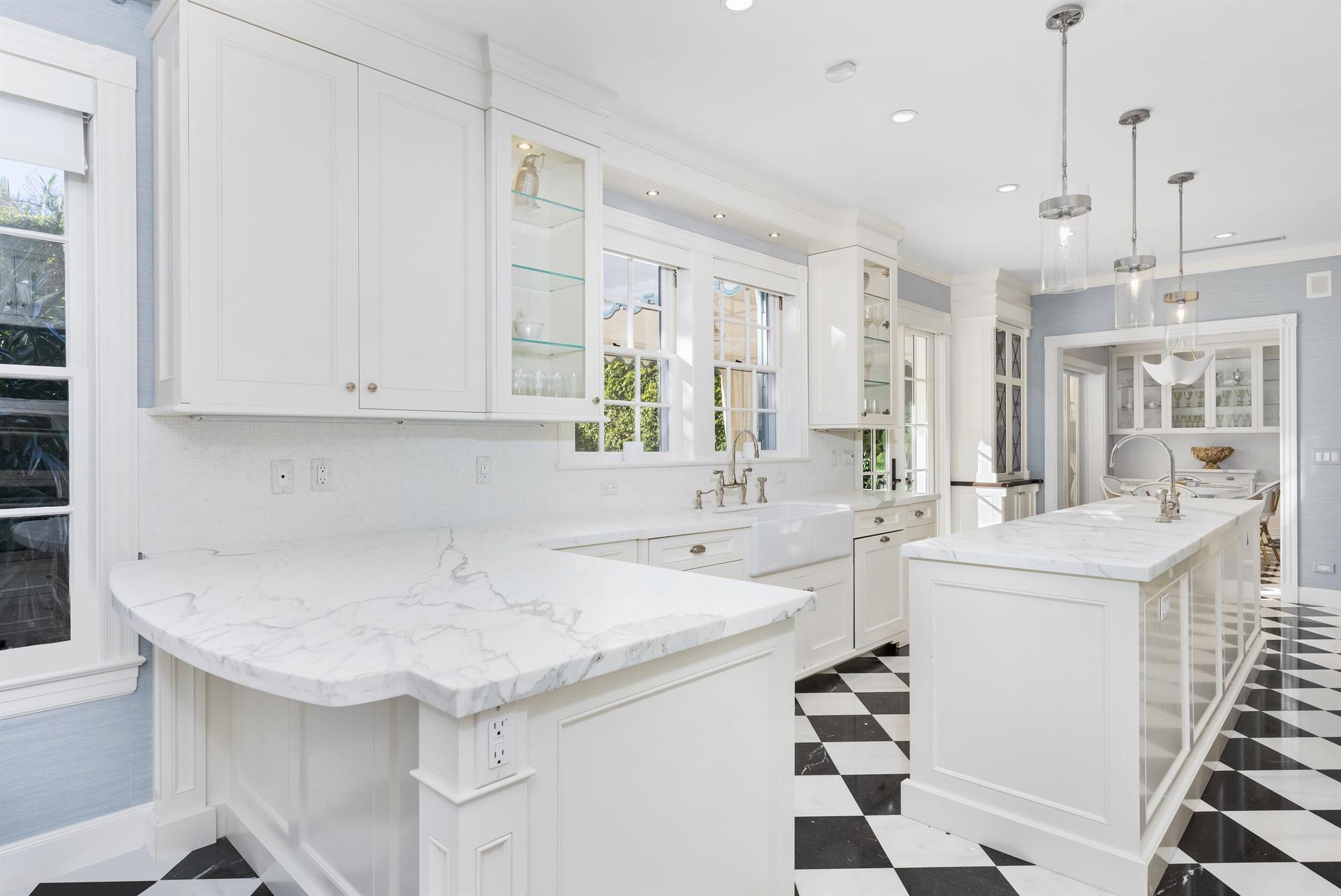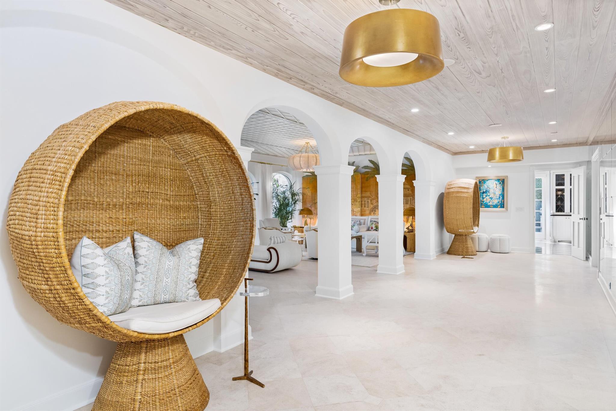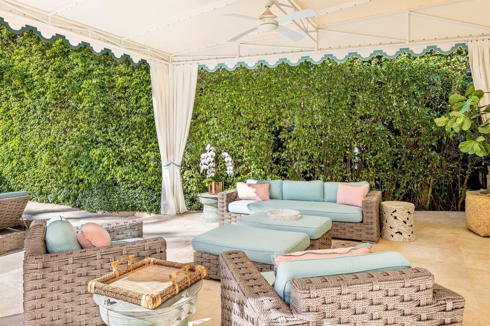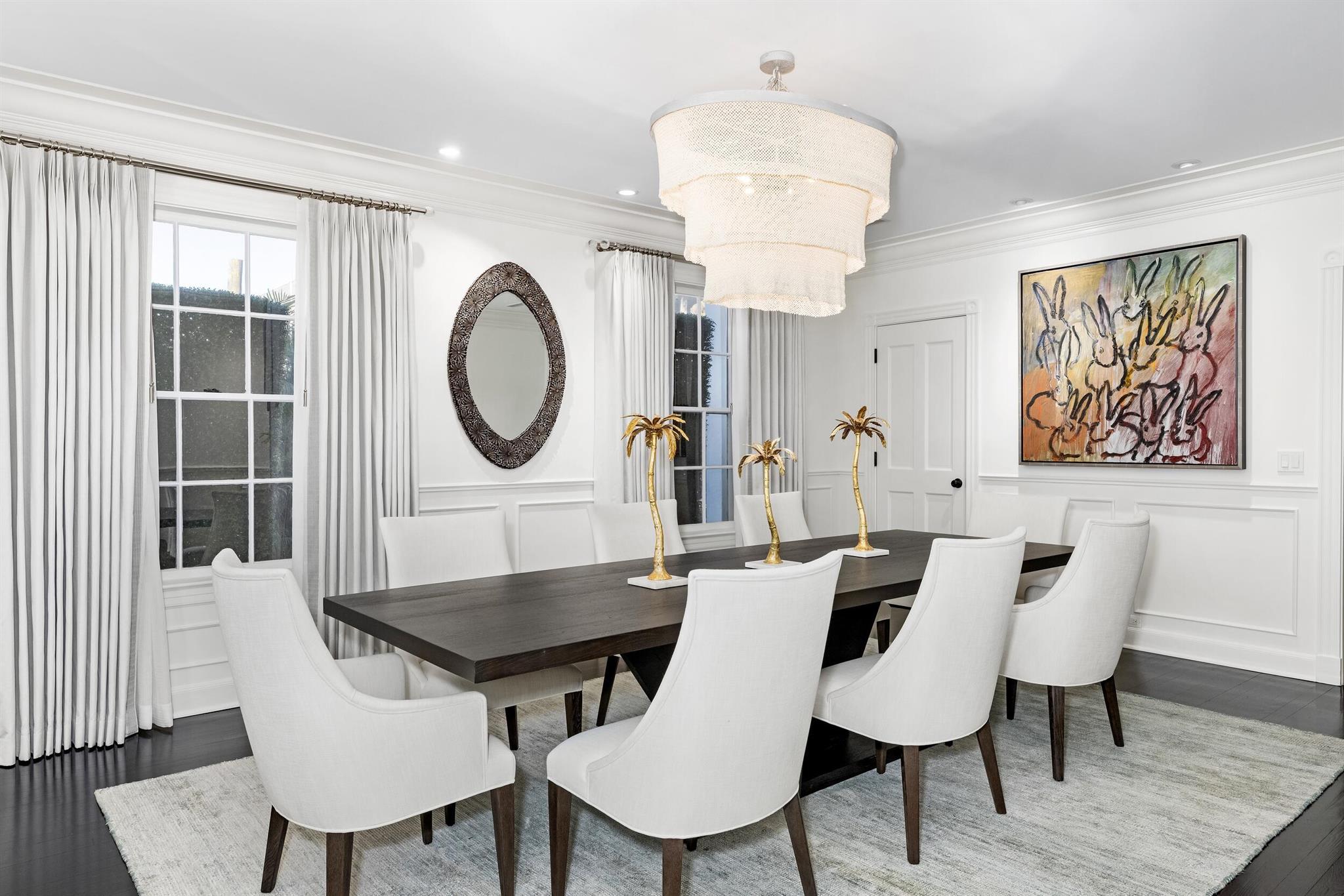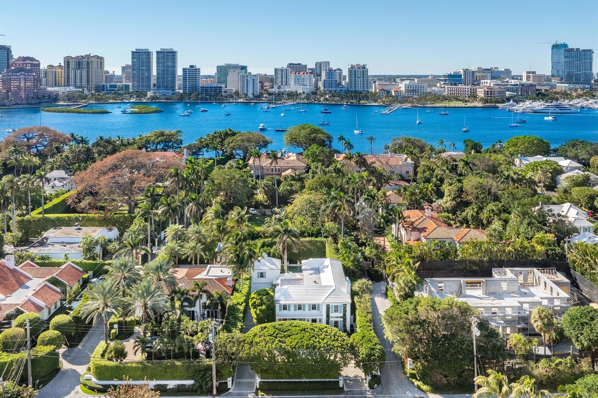 Gorgeously remodeled Monterey Colonial home designed by renowned Palm Beach architect John Volk. 6 bedrooms, 7 full baths, and powder room. Situated on a 14,500 +/- square foot lot, this home features over 7,000 total square feet, formal living room, and beautiful dining room. Formal entryway and large gallery hall. Oversized interior loggia leading to gourmet eat-in chef's kitchen and breakfast room. Iconic John Volk staircase leads to second floor den with Juliet Balcony. Expansive primary suite features gorgeous bath with stunning marble floors and details. Beautiful and serene landscaping surrounds large pool and covered patio. Gracious entry approach and parking with circular drive and driveway leading to 2 car air-conditioned garage. Guest apartment with terrace overlooking pool.