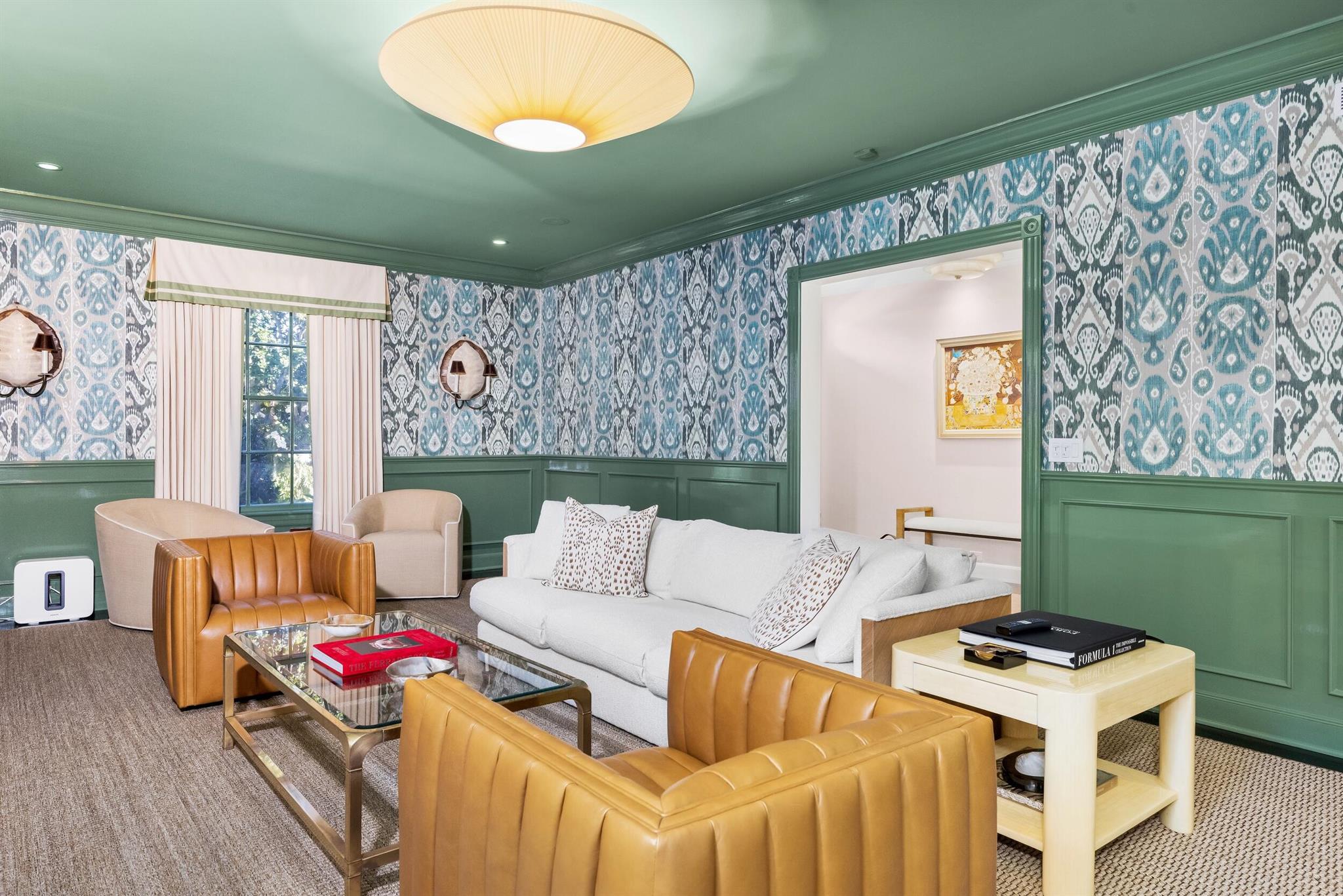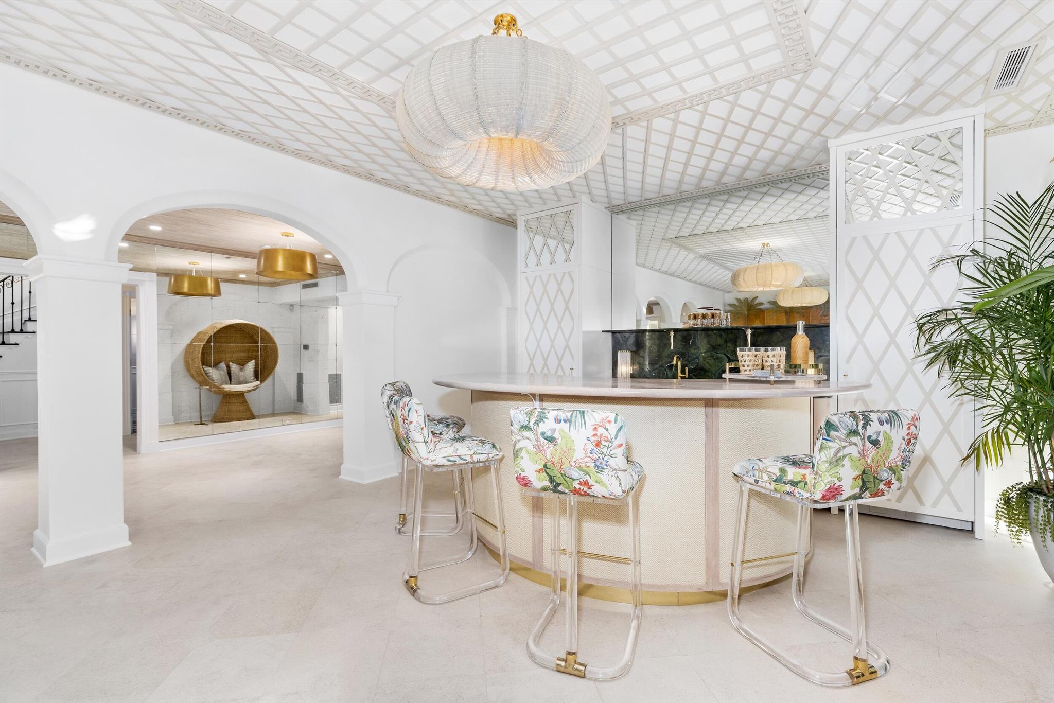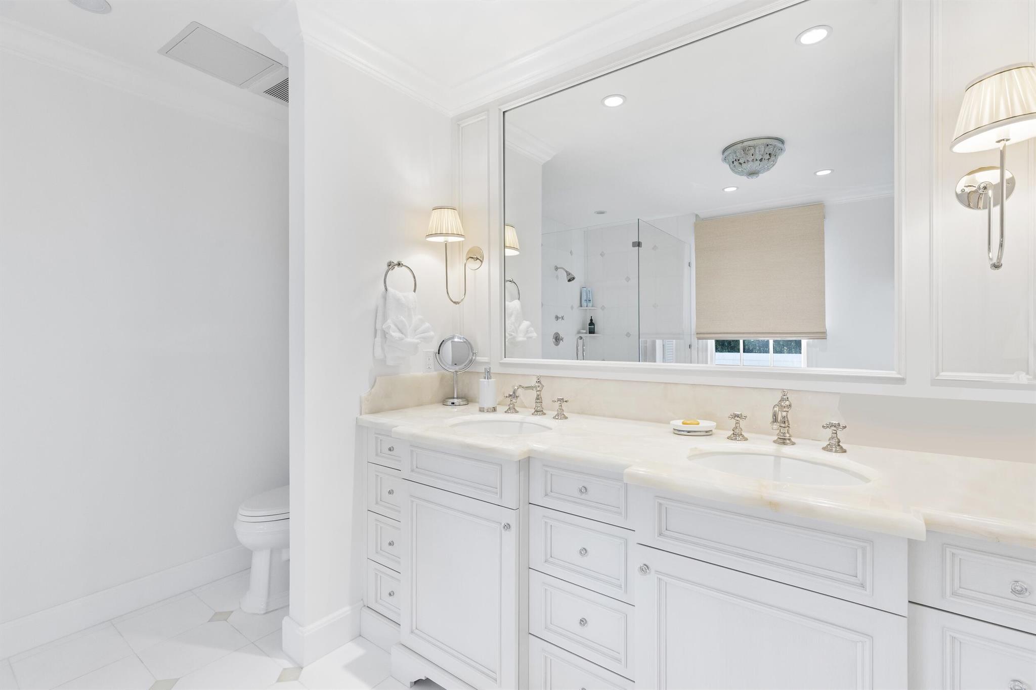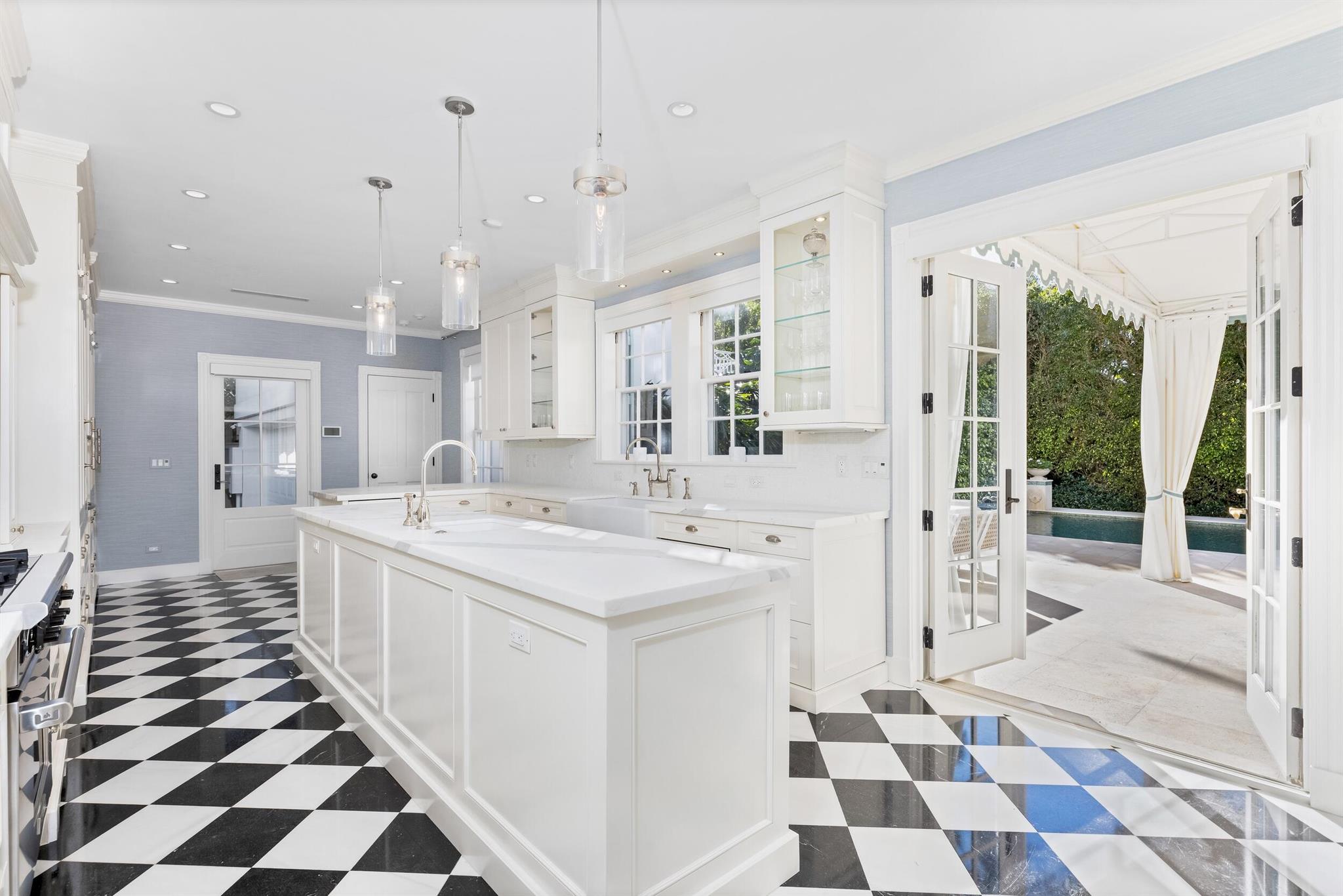 Gorgeously remodeled Monterey Colonial home designed by renowned Palm Beach architect John Volk. 6 bedrooms, 7 full baths, and powder room. Situated on a 14,500 +/- square foot lot, this home features over 7,000 total square feet, formal living room, and beautiful dining room. Formal entryway and large gallery hall. Oversized interior loggia leading to gourmet eat-in chef's kitchen and breakfast room. Iconic John Volk staircase leads to second floor den with Juliet Balcony. Expansive primary suite features gorgeous bath with stunning marble floors and details. Beautiful and serene landscaping surrounds large pool and covered patio. Gracious entry approach and parking with circular drive and driveway leading to 2 car air-conditioned garage. Guest apartment with terrace overlooking pool.