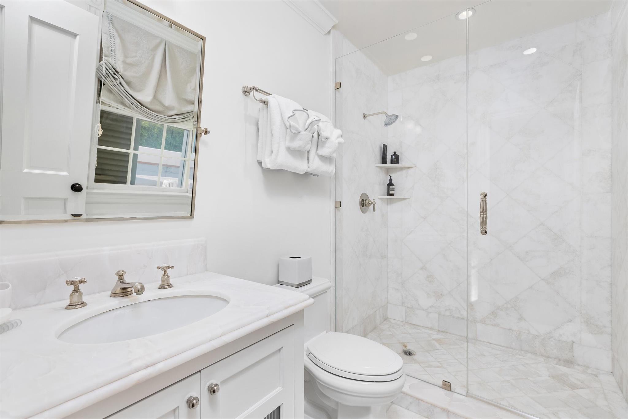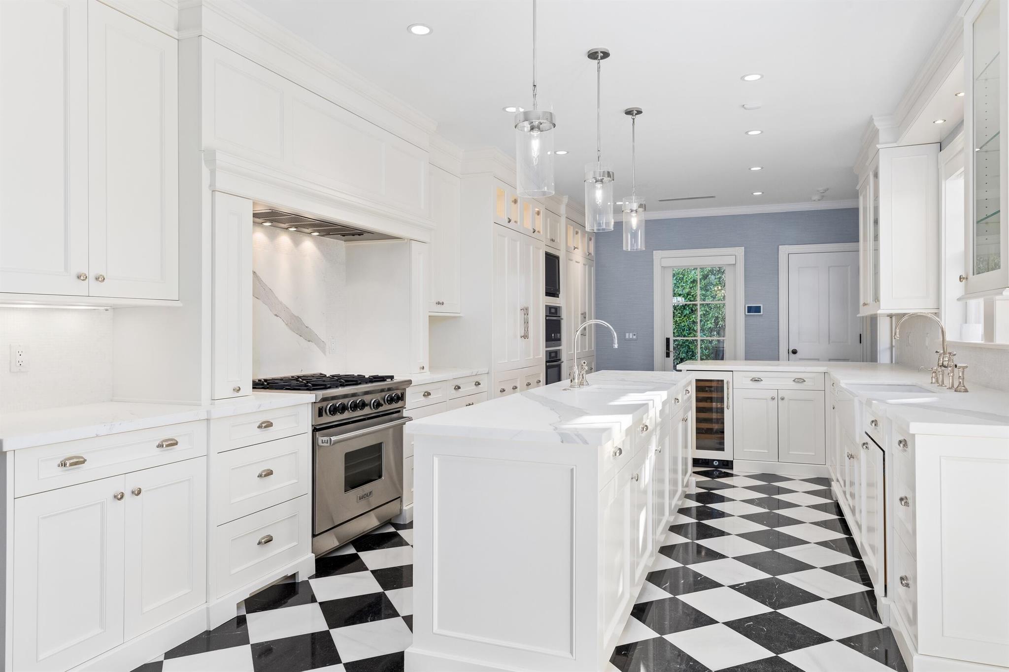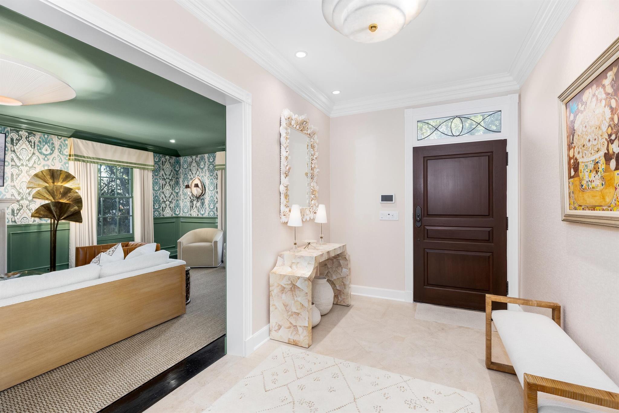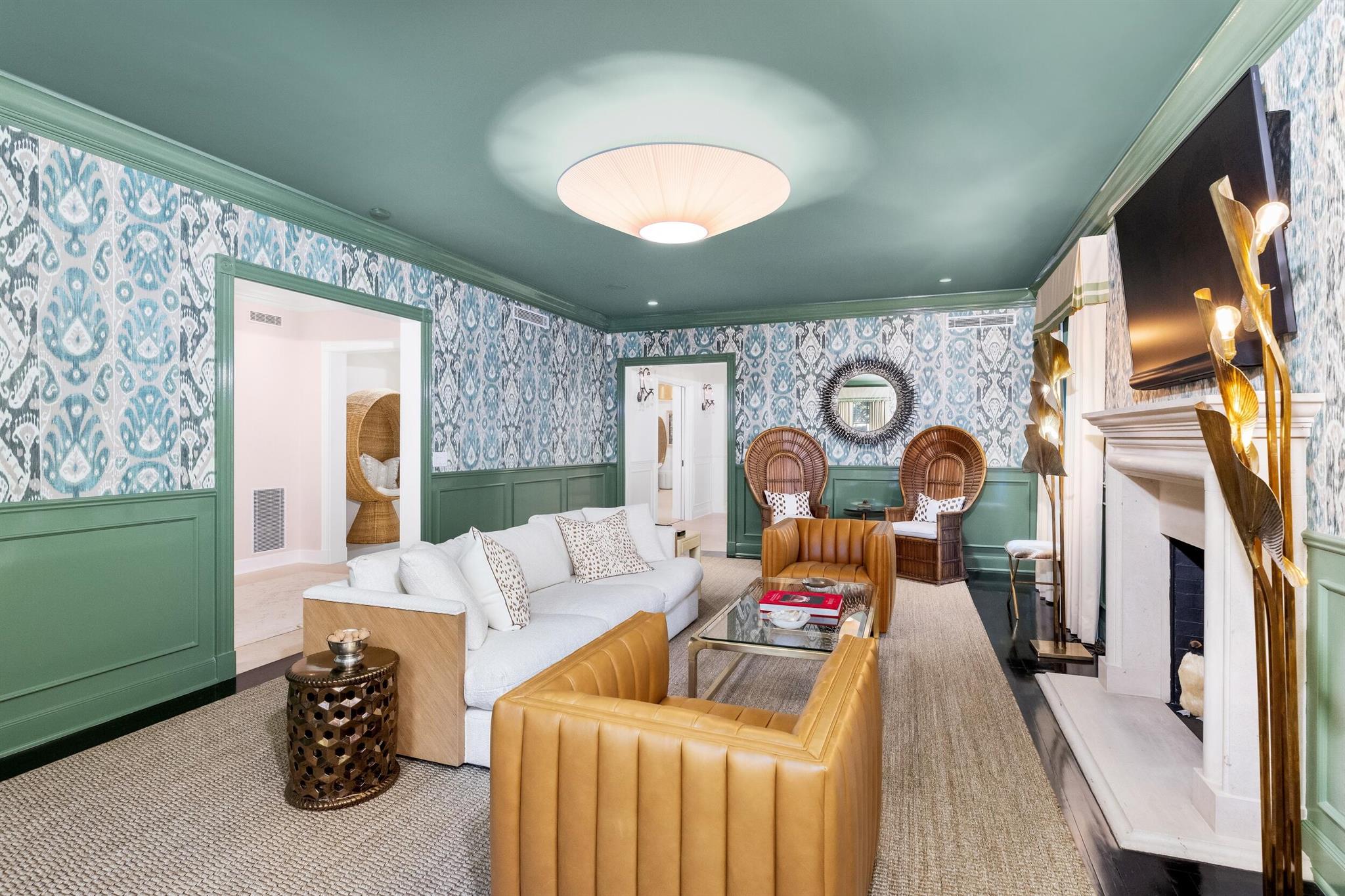 Gorgeously remodeled Monterey Colonial home designed by renowned Palm Beach architect John Volk. 6 bedrooms, 7 full baths, and powder room. Situated on a 14,500 +/- square foot lot, this home features over 7,000 total square feet, formal living room, and beautiful dining room. Formal entryway and large gallery hall. Oversized interior loggia leading to gourmet eat-in chef's kitchen and breakfast room. Iconic John Volk staircase leads to second floor den with Juliet Balcony. Expansive primary suite features gorgeous bath with stunning marble floors and details. Beautiful and serene landscaping surrounds large pool and covered patio. Gracious entry approach and parking with circular drive and driveway leading to 2 car air-conditioned garage. Guest apartment with terrace overlooking pool.