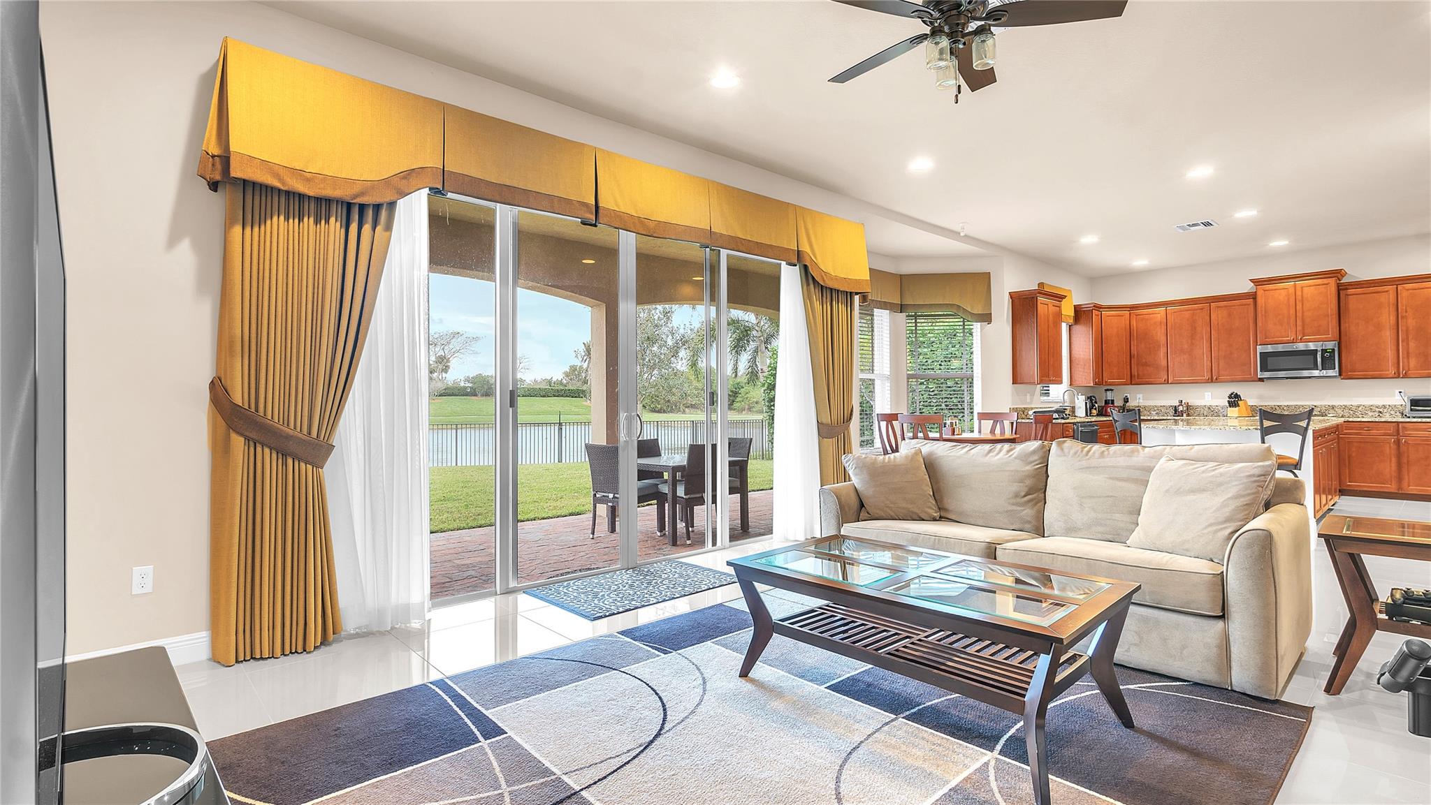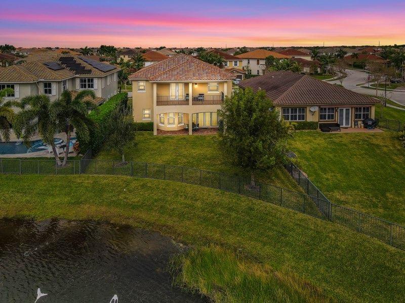 Welcome to this beautiful 4 bedroom and 4 full bathroom home with 3 car garage nestled within the prestigious community of Miralago. Updated kitchen, with stainless steel appliances, gas stove, & exquisite granit countertops, sets this home apart. Primary bedroom is a sanctuary with a balcony that overlooks the serene lake. Three additional bedrooms boast generous sizes & ample closet space with one having its own bathroom that can be used as a guest suite. The charming patio and yard is equipped to fit a pool. This lakefront home is a true gem and offers total back yard privacy. Impact windows & doors ensure both security & energy efficiency. New park will be constructed within walking distance of home. Residents can enjoy luxury recreational and wellness facilities in the community.