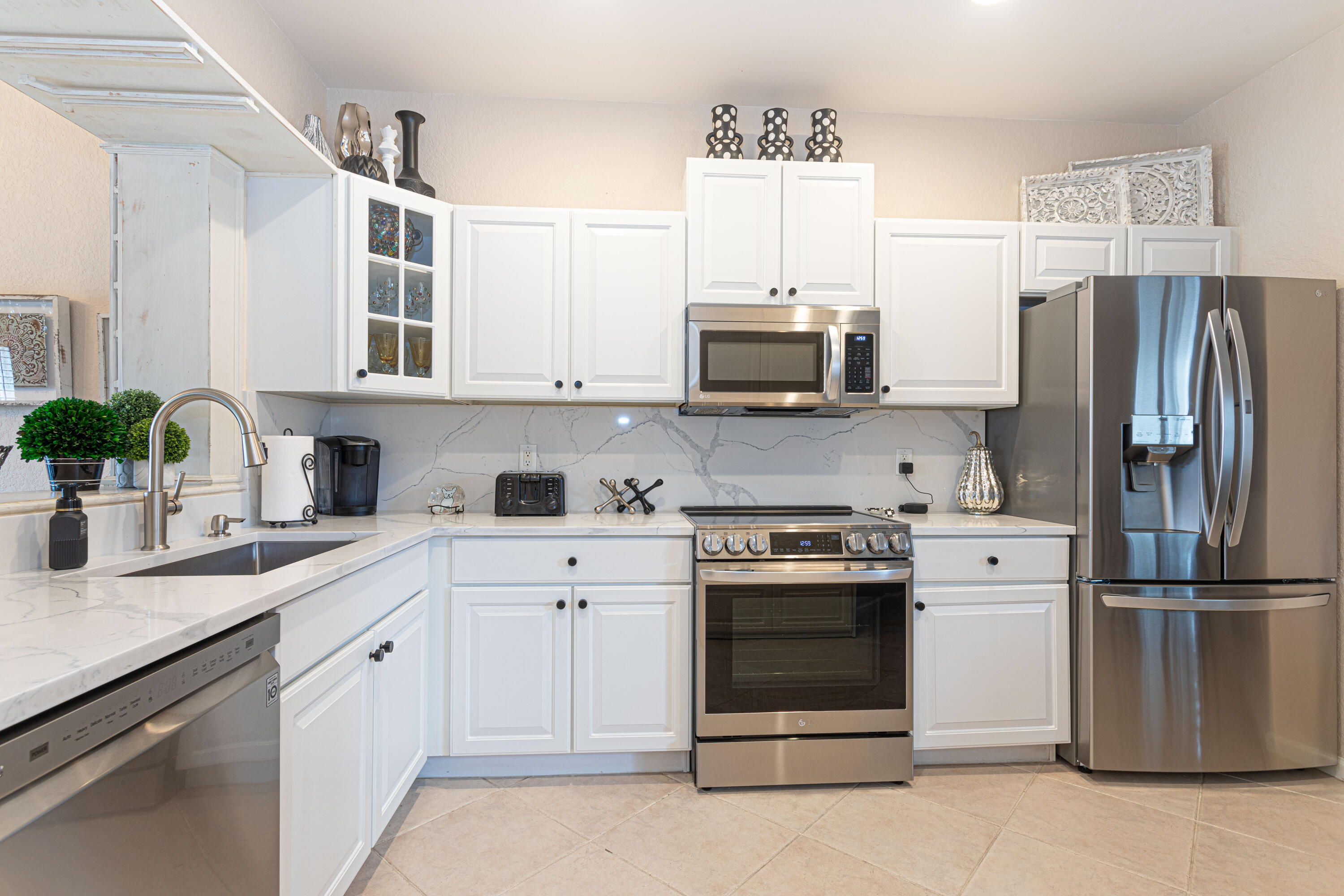 Immerse yourself in the tranquility of stunning long lake views from your patio. Appreciate the kitchen's beauty with granite tops and an inviting eat-in counter. This home radiates charm and personality, sparing no expense to provide a perfect blend of comfort in this 3-bedroom, 2.5-bath town-home with impact windows. Indulge in a gorgeous kitchen boasting granite countertops, a spacious eat-in counter, glass-top stove, built-in microwave, sink/faucet, and disposal. Beautiful ceiling fans and light fixtures enhance the entire space, while knockdown walls add a touch of sophistication. Relax on your screened patio, absorbing the breathtaking long lake views and tropical settings. This community ensures a lifetime of enjoyment, located in an A-rated school district and proximity to various