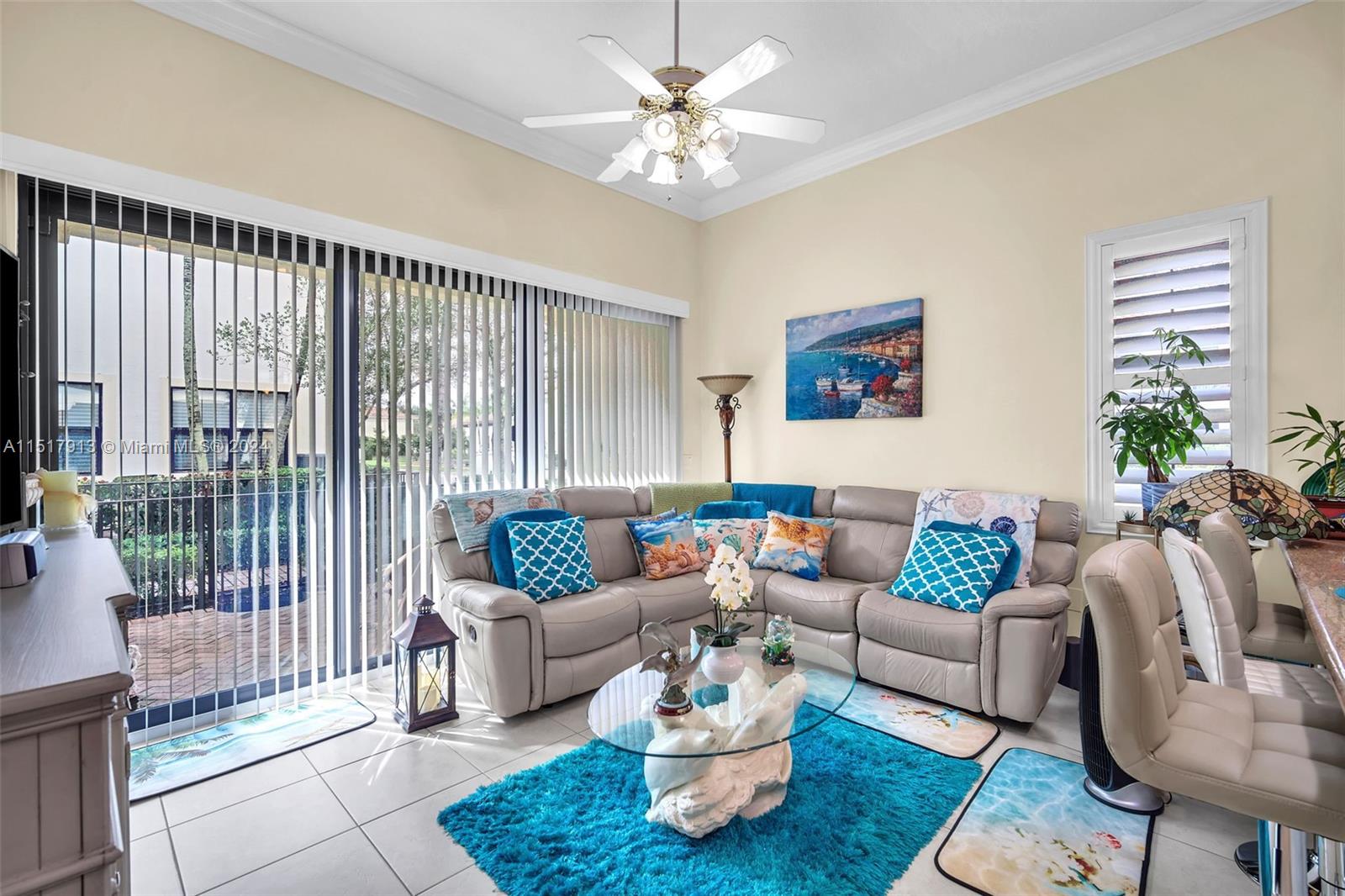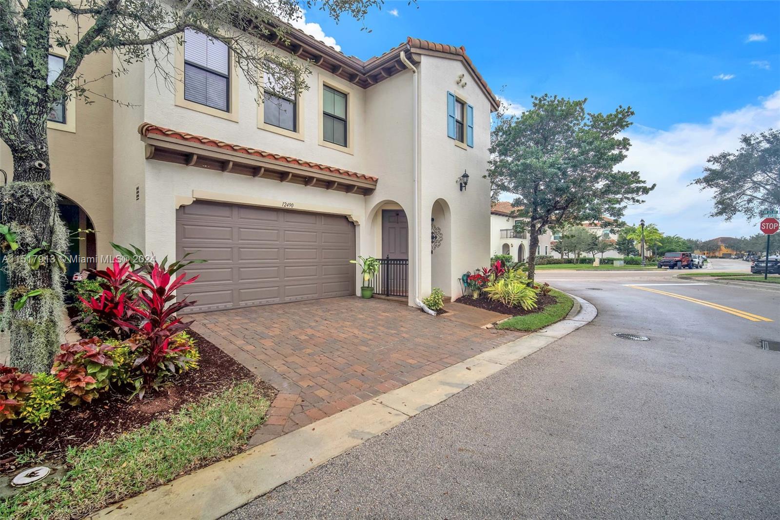 Immaculately maintained corner unit in Artesia. Home offers a rare, split floor plan with the primary suite on the 1st floor. Soaring 15ft ceilings with crown molding throughout. Cozy entry way flows into formal dining area. Open floor plan allows for an eat-in kitchen, with an island and breakfast bar overlooking the living room. Plush, fenced-in patio area. Ceramic tile and luxurious, hardwood flooring throughout. Plantation shutters, hurricane impact doors and windows throughout. Custom built-ins w/ utility sink in garage for maximum storage. Amazing location across from Sawgrass! Community clubhouse with 3 pools, a spa, gazebos, tiki hut, tennis and pickleball courts, indoor basketball, gym, billiards/poker, locker rooms with saunas, and many lounge, event and recreation-use rooms.