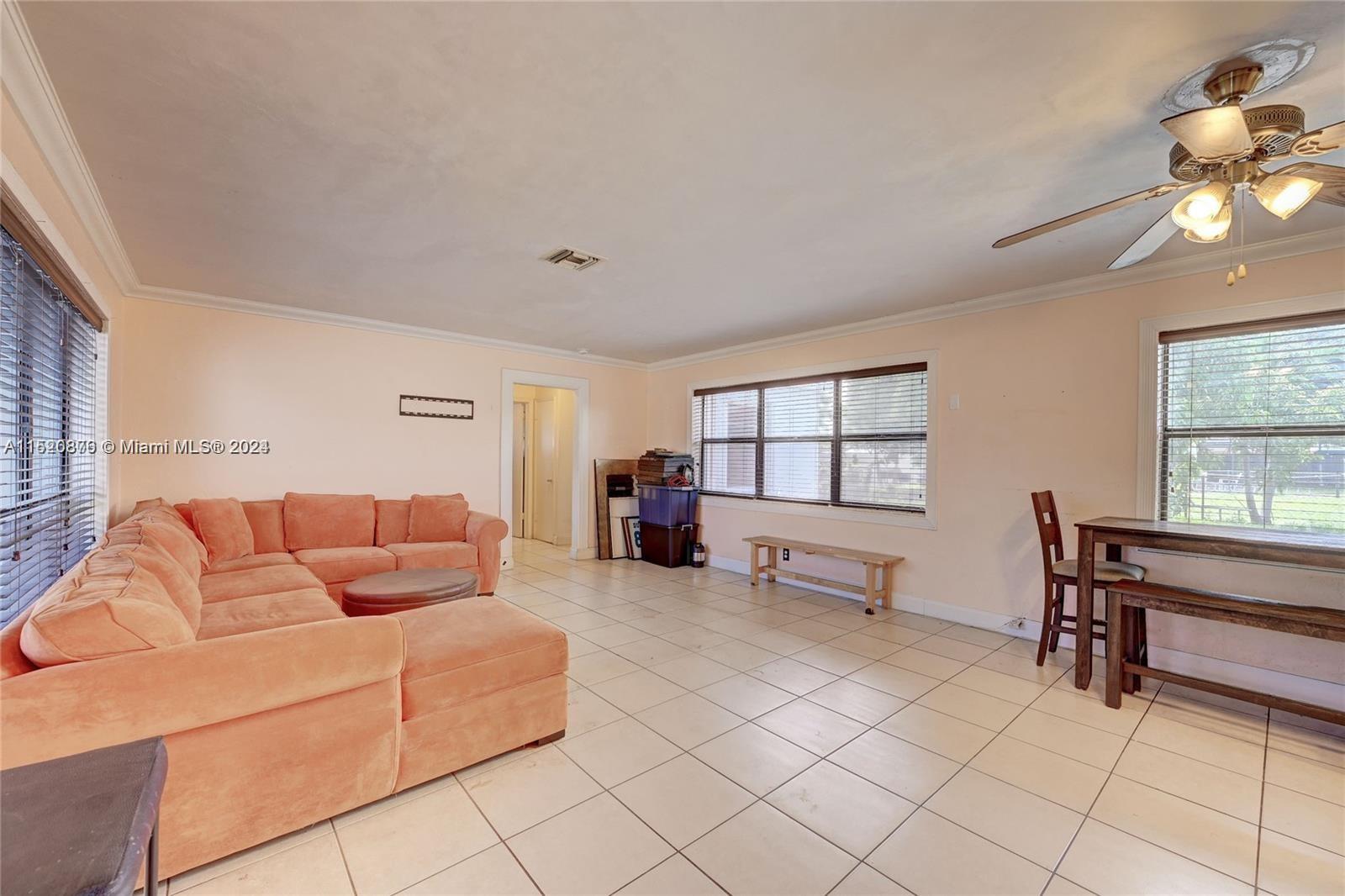 Cozy 3/2 home in Hollywood with large backyard. Tile and wood flooring with one bedroom with carpet. Spacious rooms. Laundry room area. Hurricane shutters. Tankless water heater. Enclosed backyard perfect for a future garden. Home is being sold as is. Perfect fixer upper. Come see it today!