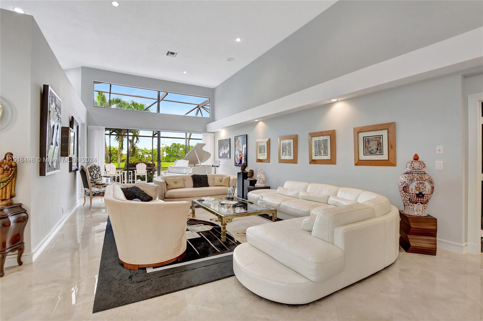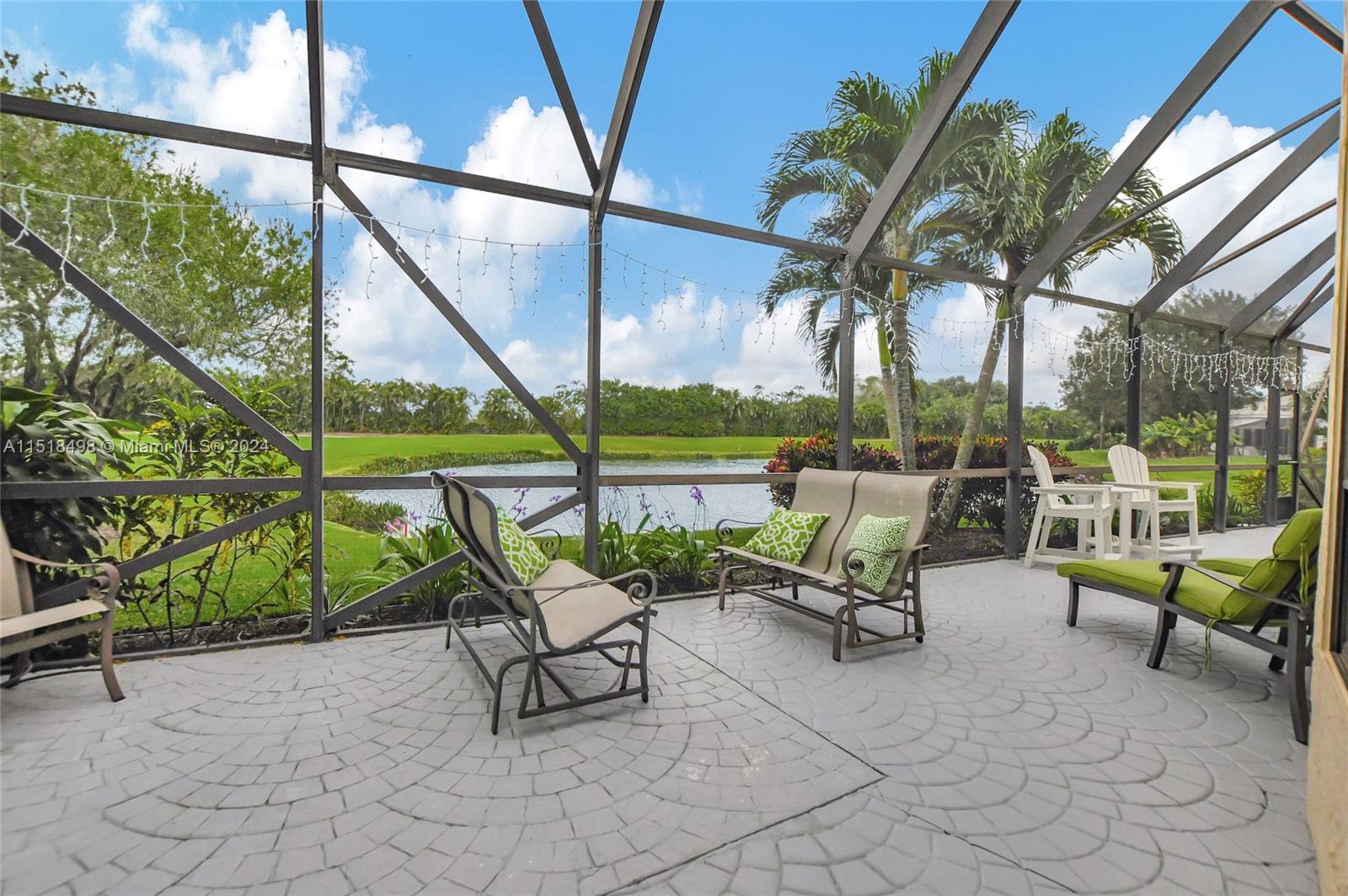 True 3BR + Den remodeled about 8 yrs. ago in Today's Contemporarty style. Modern Kitchen, Baths & Porcelain Tile Floors. Move right in. Excellent Lake & Golf Front lot with no rear Neighbors. Vaulted Ceilings in Main Living areas. Primary Suite has a huge walk-in closet as well as a separate office/work space. Over 2,800' SF under air. Either a Golf or Social Membership (depending on availability) must be purchased in Stonebridge Golf & Country Club. Contact for Fees. HOA fees inc, Lawn Care, Cable, 24 Hr Manned Gate with Roving Security, Internet & HOA Mgmt. Screened Lanai overlooking Lake. Refrigerator as well as 1 of 2 AC's is New. Induction Cooktop