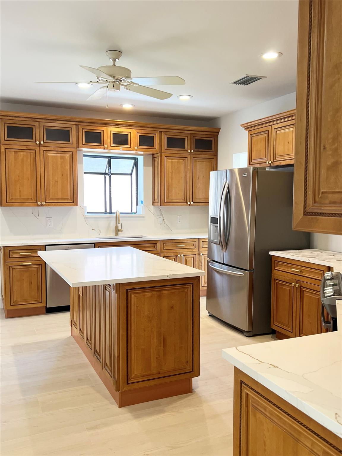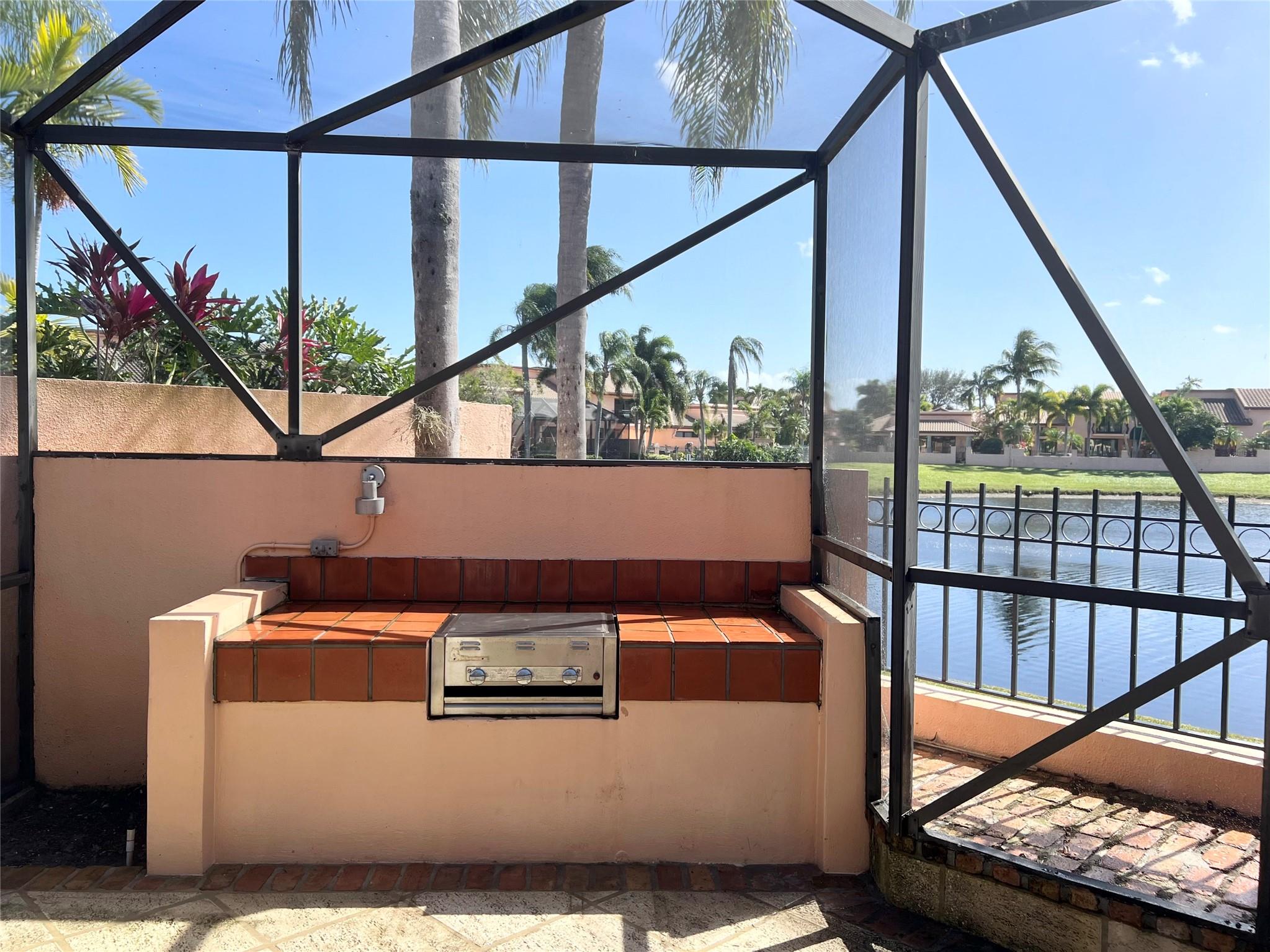 This waterfront house 3 bedrooms/2 bathrooms (high ceilings and spacious rooms) is located at the sought after Villa Flora at Boca Pointe (gated community,24hours security, no mandatory membership; low HOA monthly fee $470, includes landscaping, irrigation, cable). The house has an open water view. It just underwent a substantial remodel including new porcelain floors and baseboards, recessed lighting, new paint, remodeled bathroom (w/ permit), new laundry room, new kitchen quartz countertops/backsplash, alarm system and more. The large screened porch is on a lake with a south orientation ,it has an inground Jacuzzi and a built-in grill. The house has also a separate laundry room, 2 car garage (epoxy floor), 3 walk-in closets, a built-in grill. Short-term CC membership avail not req.