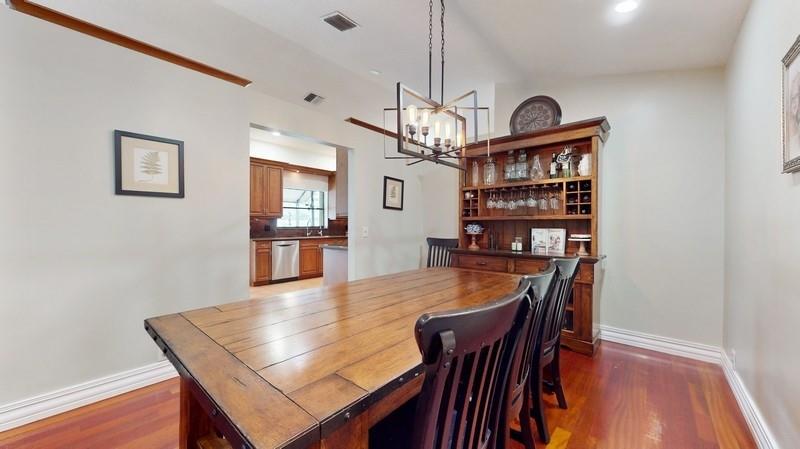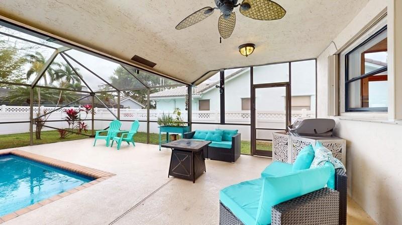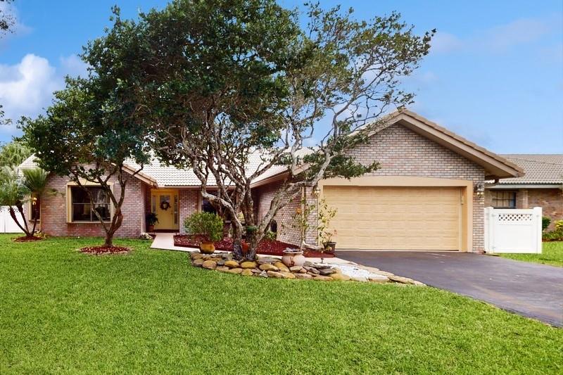 Remodeled Pine Ridge Beauty! Interior newly painted, New Knock-Down Ceilings, New LED Hi-Hat Lights, No Carpeting throughout: Tile, Hardwood Flooring in Formal Dining/Living room, Laminate in Bedrooms. Upgraded Gourmet eat-in Kitchen: Warm Wood Cabinets, eat-in area with loads of storage & workspace, High-end Granit Counters, S/S appliances ~4 years new: Double Ovens, Micro, Sink, plus Wine Cooler. Two Updated Cabana Baths: Wood Cabinets, new Sinks, Tile, Granite, Lighting, new Toilets. Enjoy Florida living in the Screened Patio, newer Diamond Brite Pool (2019), Privacy Fence (2021). Storm Impact Safe Home with Garage, Front Doors (2021) & Accordion Shutters in 2018, Driveway Re-sealed 2024. Low HOA in tree lined Pine Ridge, close to Parks & the Sawgrass. Sold As-Is but Home Warranty incld