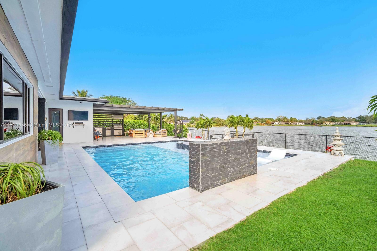 NO EXPENSE WAS SPARED IN THIS ABSOLUTELY SPECTACULAR WATERFRONT POOL HOME IN FLAMINGO GARDENS. RE-IMAGINED FLOOR PLAN UNLIKE ANY OTHER SHOWCASES HIGH QUALITY FINISHES & EXCEPTIONAL TASTE AT ITS FINEST. SHOW STOPPING KITCHEN FEATURES TWO-TONED CABINETRY W EXOTIC QUARTZ TOPS, RANGE, ISLAND W BUILT IN MICROWAVE & WINE FRIDGE. ENJOY COFFEE BAR, WOOD FLOORS, IMPACT WINDOWS & DOORS, STUNNING ACCENT WALLS, DESIGNER WALL PAPER, GORGEOUS FIXTURES & DREAMY LAUNDRY ROOM & GARAGE. SPACIOUS PRIMARY SUITE HAS 2 WALK-INS CLOSETS & EN-SUITE BATH DREAMS ARE MADE OF W CABANA ACCESS TO THE POOL. BACKYARD PARADISE FEATURES NEWLY REMODELED POOL & SPA, NEW PERGOLA & AMAZING OUTDOOR KITCHEN. SOAK-UP THE SUN POOLSIDE WHILE INDULGING IN SOME OF THE MOST CAPTIVATING VIEWS IN COOPER CITY. ZONED COOPER CITY SCHOOLS.