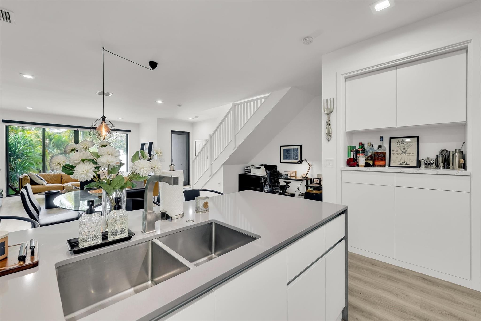 Impeccable & stunning best describe this corner unit townhome located in one of the most desirable neighborhoods in Ft. Lauderdale. It sits just minutes away from the beach & the popular shopping district along Las Olas Blvd. The kitchen boasts stainless steel appliances, solid surface countertops, sleek cabinetry & a large dine-in island. The open floor plan & volume ceilings maximize the space. The second floor is comprised of 3 bedrooms & a laundry room. The Primary bedroom includes its own rooftop private balcony overlooking the beautiful yard and the Guest bedroom has been converted to a massive custom California Closet with desk space perfect for a second work from home space. There is also plenty of room for parking with a two-car garage & driveway space for another two cars.