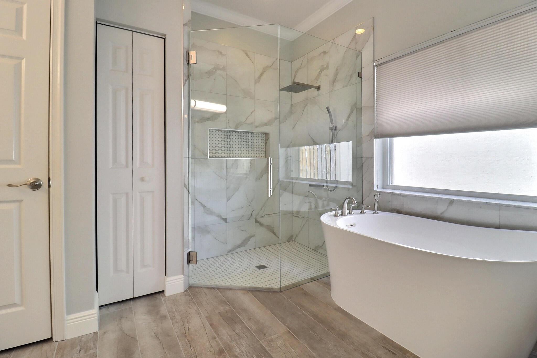 GORGEOUS! 3 bed 2 bath LAKEFRONT home w/ REMODELED BEDS/BATHS in upscale Andros Isle. High ceilings & a spacious, split-layout give this home a bright & open feel. Entertain family & friends on the extended, covered/screened patio & large yard w/ lake views beyond. The kitchen features granite counters, newer stainless appliances including BOSCH dishwasher, pantry, tiled backsplash, breakfast area & barstool seating w/ custom stone front. Wake up to lake views from the primary suite w/ UPGRADED tile flooring, 2 walk-in closets w/ built-ins & REMODELED en-suite bath w/ QUARTZ, dual-sink vanity, high-end soaking tub & floor-to-ceiling designer-tiled frameless shower. 2 addt'l bedrooms w/ large closets towards the front of the home (one w/ UPGRADED flooring & another used as an office)