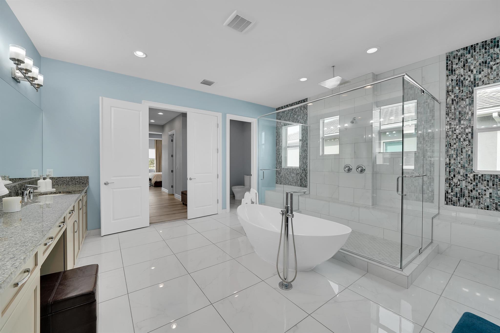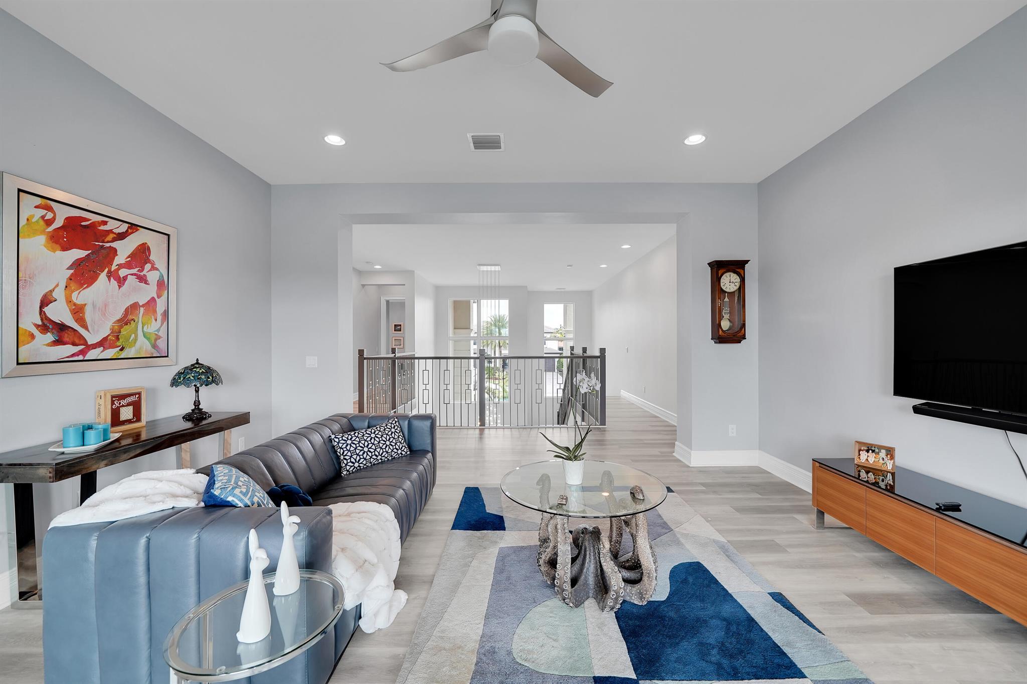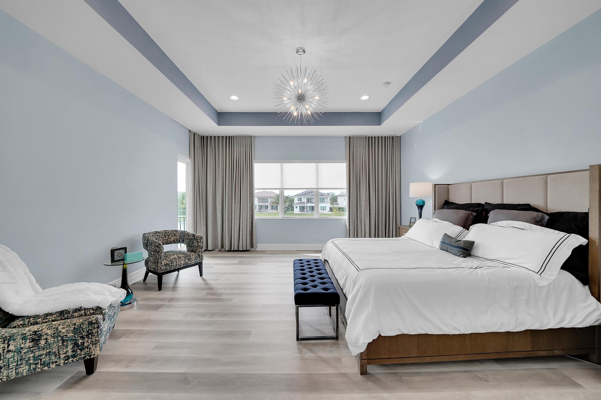PRICE ADJUSTMENT. Welcome to luxury in this stunning & spacious 5800 sq. foot pool home on a lake on a quarter acre lot in an exclusive gated community of 56 homes. With 5 ensuite bedrooms, walk-in closets & 1 bd/1.5 baths downstairs the residence boasts over 200k in upgrades. The expansive living space blends sophistication & comfort, with a chef's kitchen equipped with top-of-the-line appliances,.. Custom electric curtains & blinds effortlessly enhance privacy. Upstairs is an open family room that leads to a lakeview veranda. The primary bedroom has 2 custom walk-in closets Practicality meets luxury with impact windows & a 2-zone air conditioning system. The convenience of a 4-car garage with epoxy floors adds a touch of practicality. A rated School zone. Walk to parks and recreation