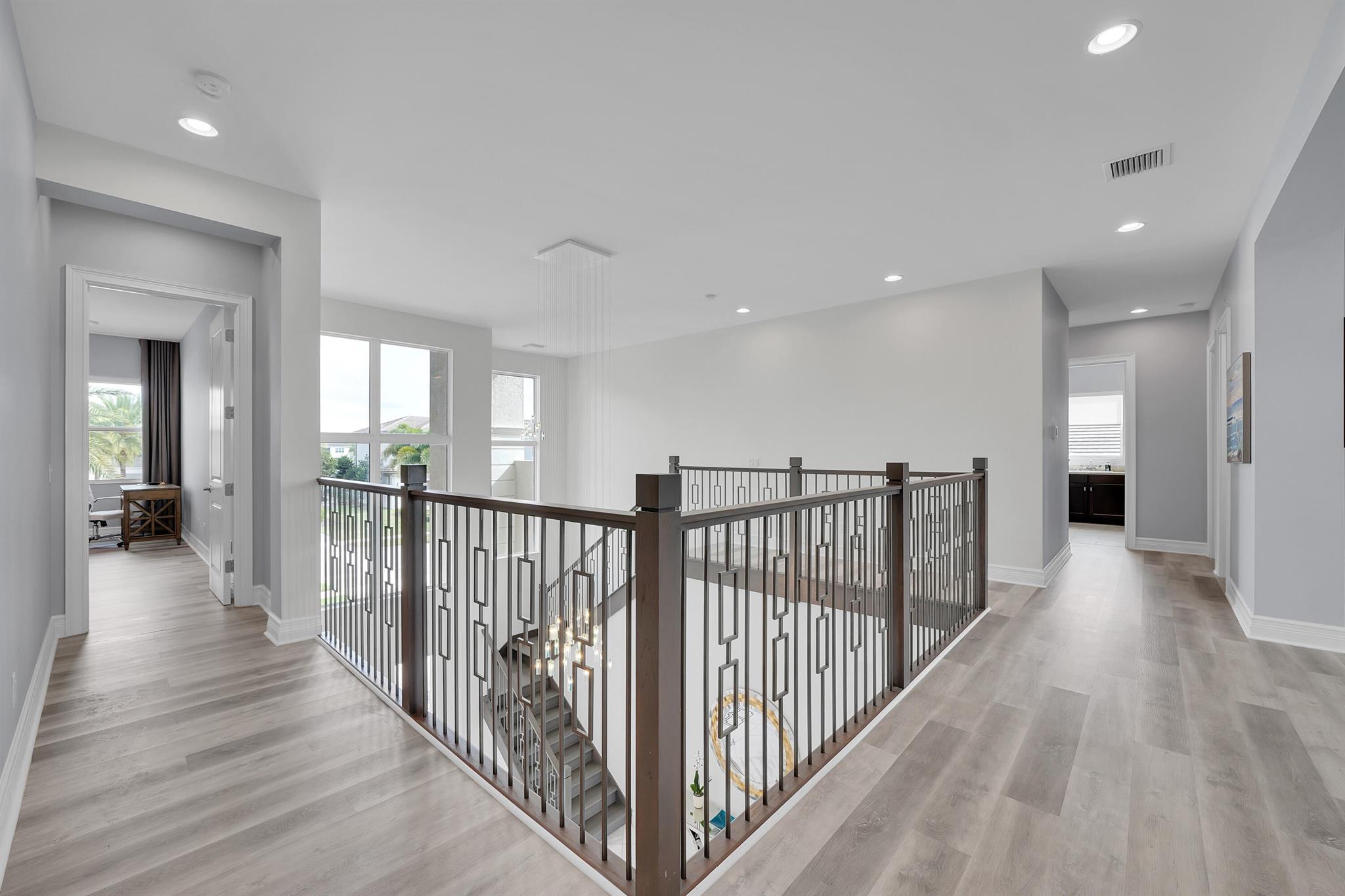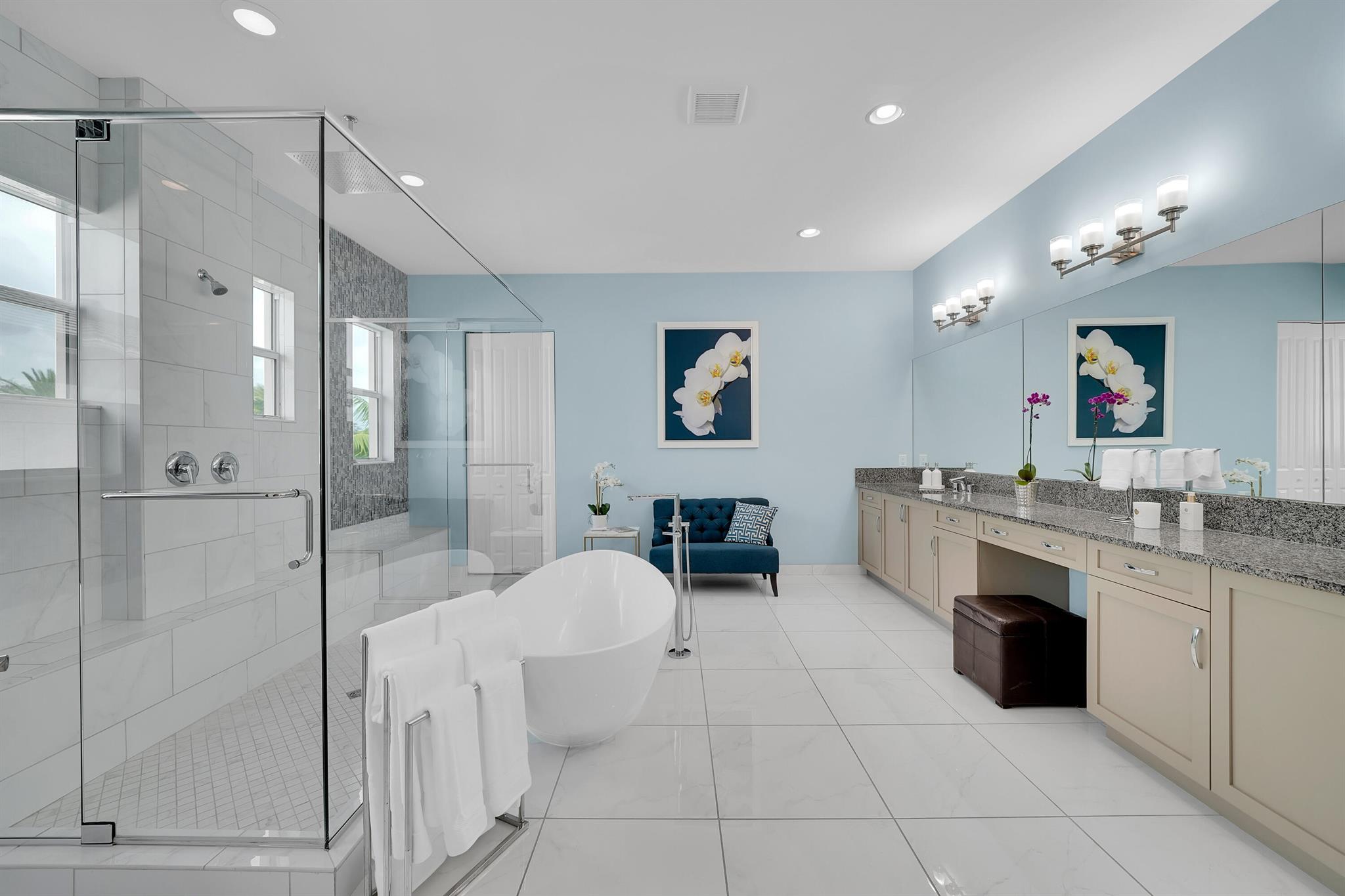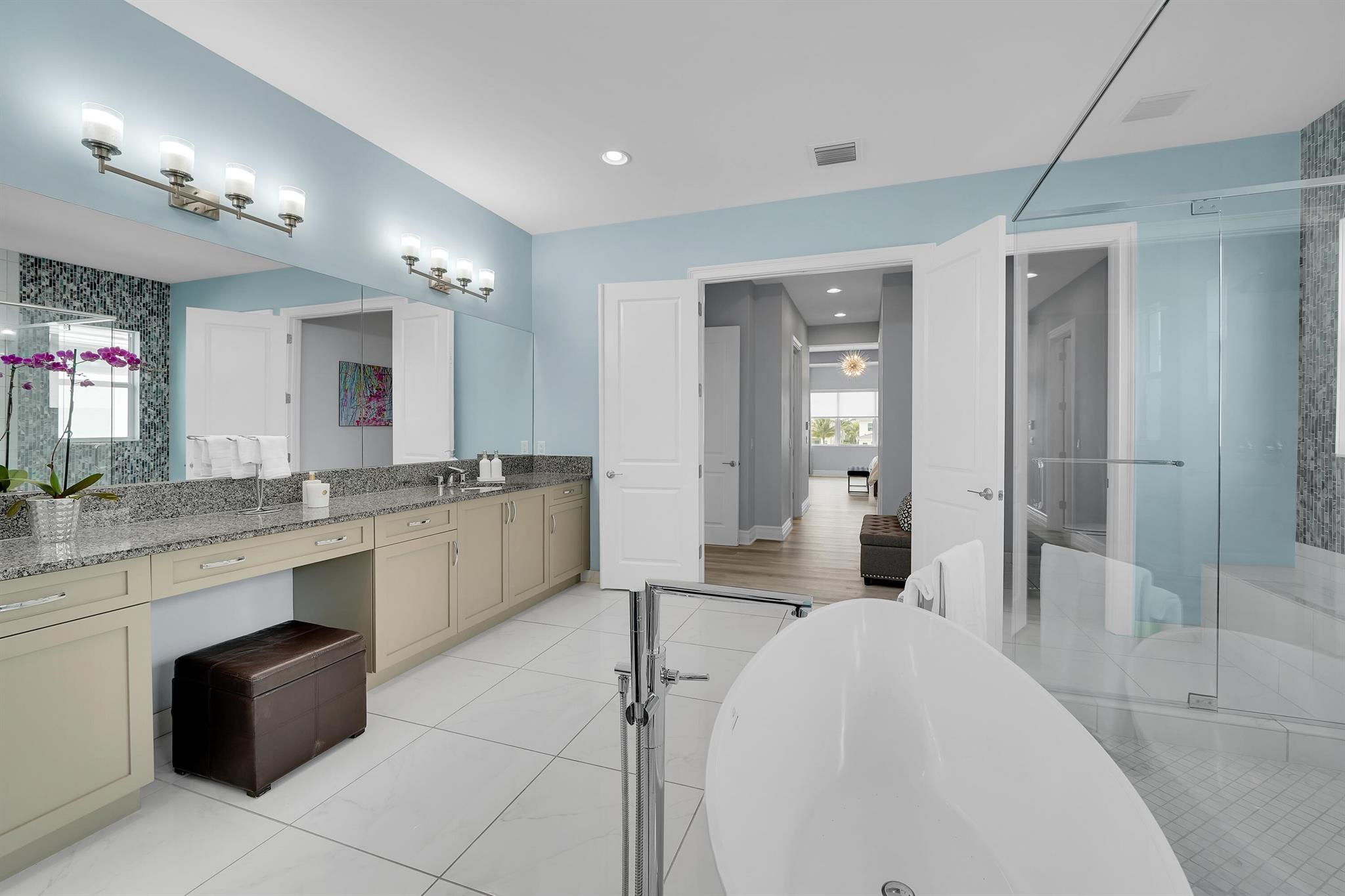 PRICE ADJUSTMENT. Welcome to luxury in this stunning & spacious 5800 sq. foot pool home on a lake on a quarter acre lot in an exclusive gated community of 56 homes. With 5 ensuite bedrooms, walk-in closets & 1 bd/1.5 baths downstairs the residence boasts over 200k in upgrades. The expansive living space blends sophistication & comfort, with a chef's kitchen equipped with top-of-the-line appliances,.. Custom electric curtains & blinds effortlessly enhance privacy. Upstairs is an open family room that leads to a lakeview veranda. The primary bedroom has 2 custom walk-in closets Practicality meets luxury with impact windows & a 2-zone air conditioning system. The convenience of a 4-car garage with epoxy floors adds a touch of practicality. A rated School zone. Walk to parks and recreation