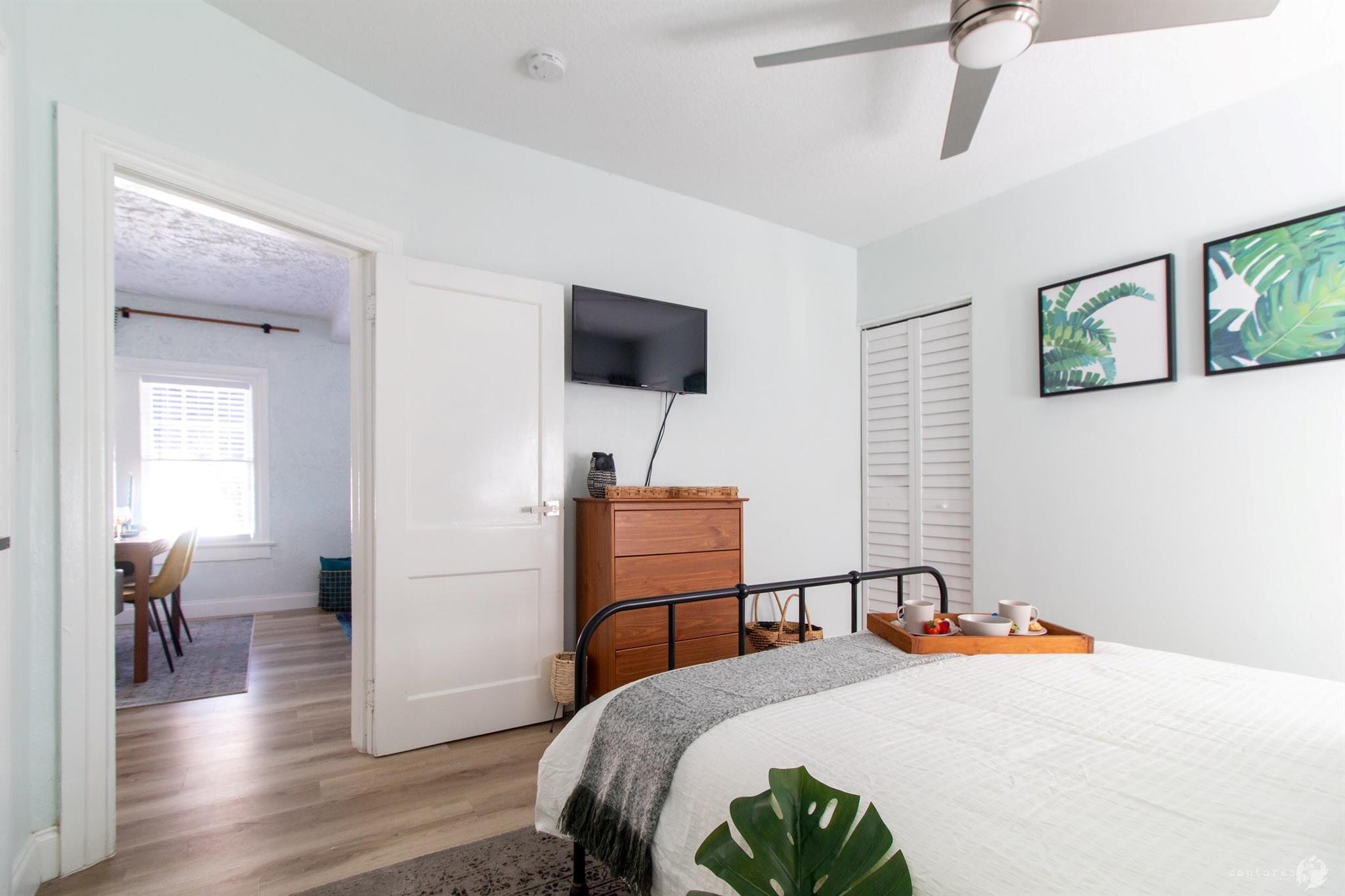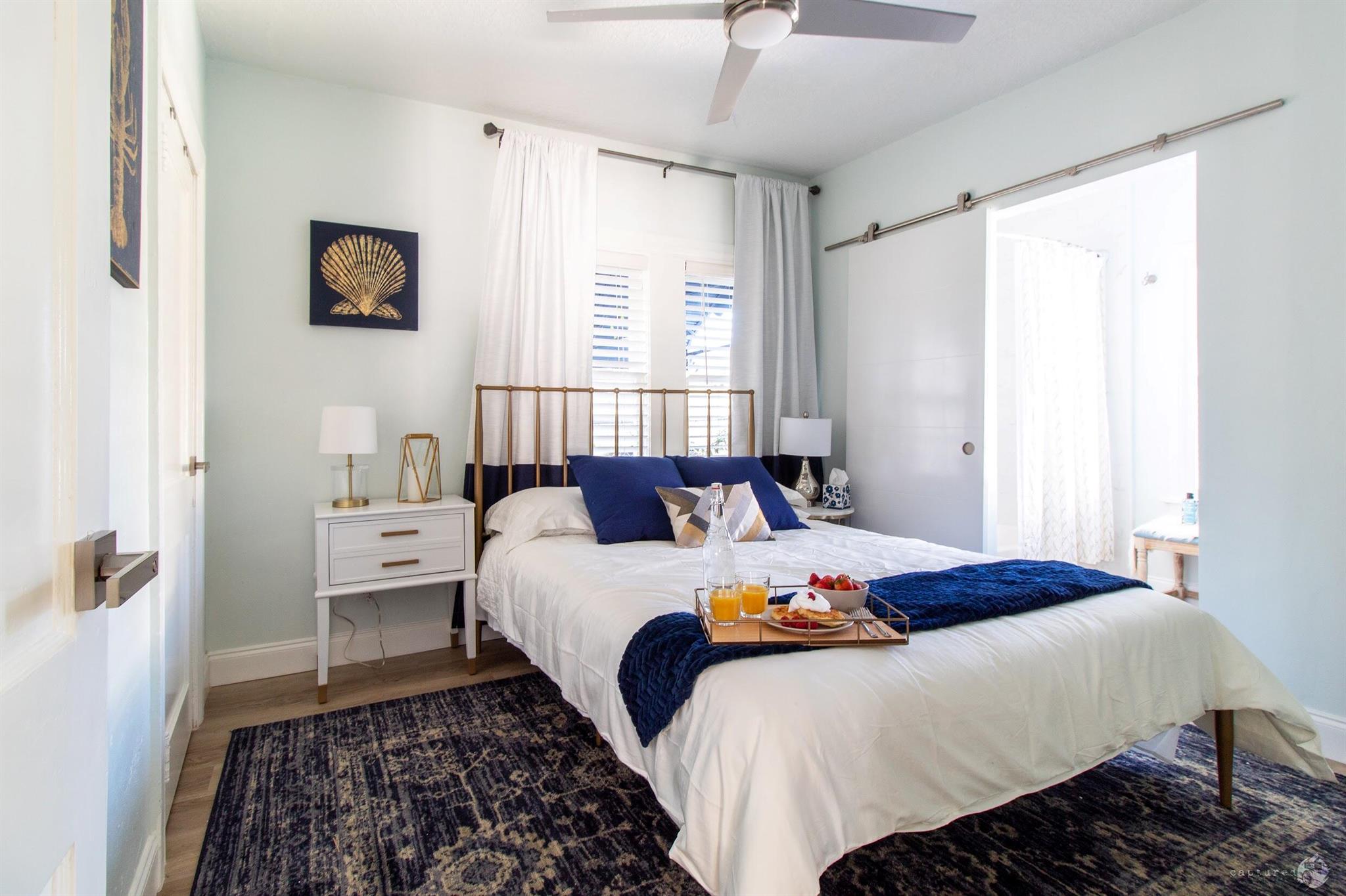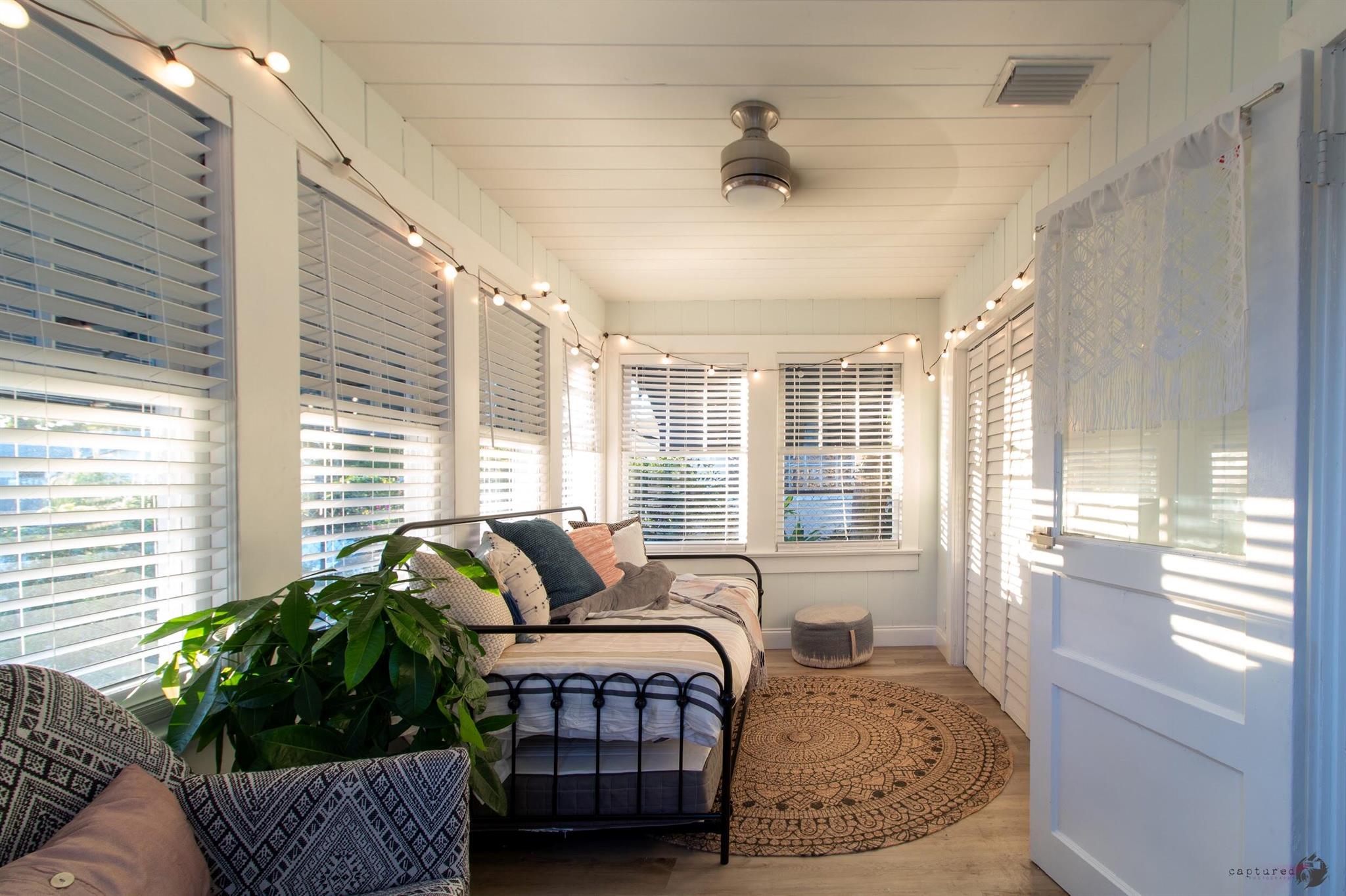 Absolutely charming former AirBNB cottage. This wonderful home has everything you want in a historic, unique living space. There is character throughout every room. Enjoy two standard bedrooms, one with an ensuite bath and the sunroom that doubles as a porch and also a bedroom, The vintage kitchen includes the origianal farmhouse sink and glass cabinets to show off your glassware or china, A non-working fireplace highlights the ambiance in the living room and adjacent dining area, The property also includes a legal garage apartment rental. Lease out for additional income or use as a guest house. 300 square foot efficiency with kitchen and bath! With the option to purchase the home furbished it could be turned back into an AirBNB or you can purchase for your own enjoyment.