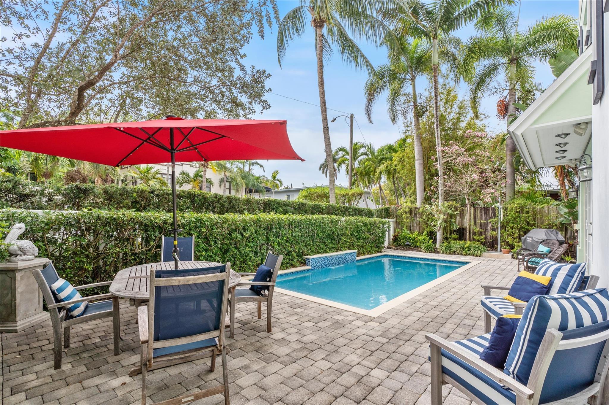 Welcome to your serene retreat in the heart of Victoria Park! This Key West-style townhome offers a perfect blend of modern elements with classic elegance. It is a 4 bedroom / 3,5 baths corner unit with a private pool, 2 rooftop terraces & a 2-car garage. 3 levels of living space complete with an elevator. The open kitchen has granite counters and a Wolf gas stove. The master suite features a balcony, a walk-in closet and a custom mural in the bathroom. 4th bedroom is used as an open loft. Other features include: impact windows & doors, plantation shutters, full home surround sound system, metal roof. The fully fenced backyard is complete with a heated saltwater pool & outdoor shower. No HOA. Superb location close to the vibrant Las Olas Blvd, shopping & the beach. Call to see it today!