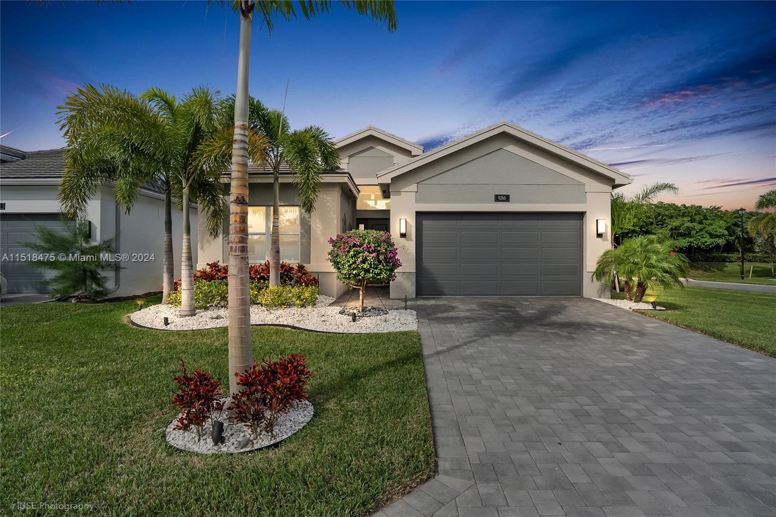 Welcome to Valencia Sound, a prestigious and newly developed 55+community. This sophisticated one floor Diamond model, situated on a spacious corner lot with illuminated trees, is less than one year old. Split floor plan with 2 bed/2 bath + a Den/office, spacious walk in closets and abundant storage. The gourmet kitchen has SS appliances, gas range. Step outside onto a screened covered porch. Impact doors and windows, 2 car garage with Epoxy floor. Resort style club house with a plethora of amenities including full service restaurants, tennis, pickleball courts, pools with cabanas, indoor/outdoor bars, card rooms, arts and crafts room, a well equipped fitness center and a grand ballroom featuring dance floor and billiards. Experience the epitome of luxury living at this vibrant community