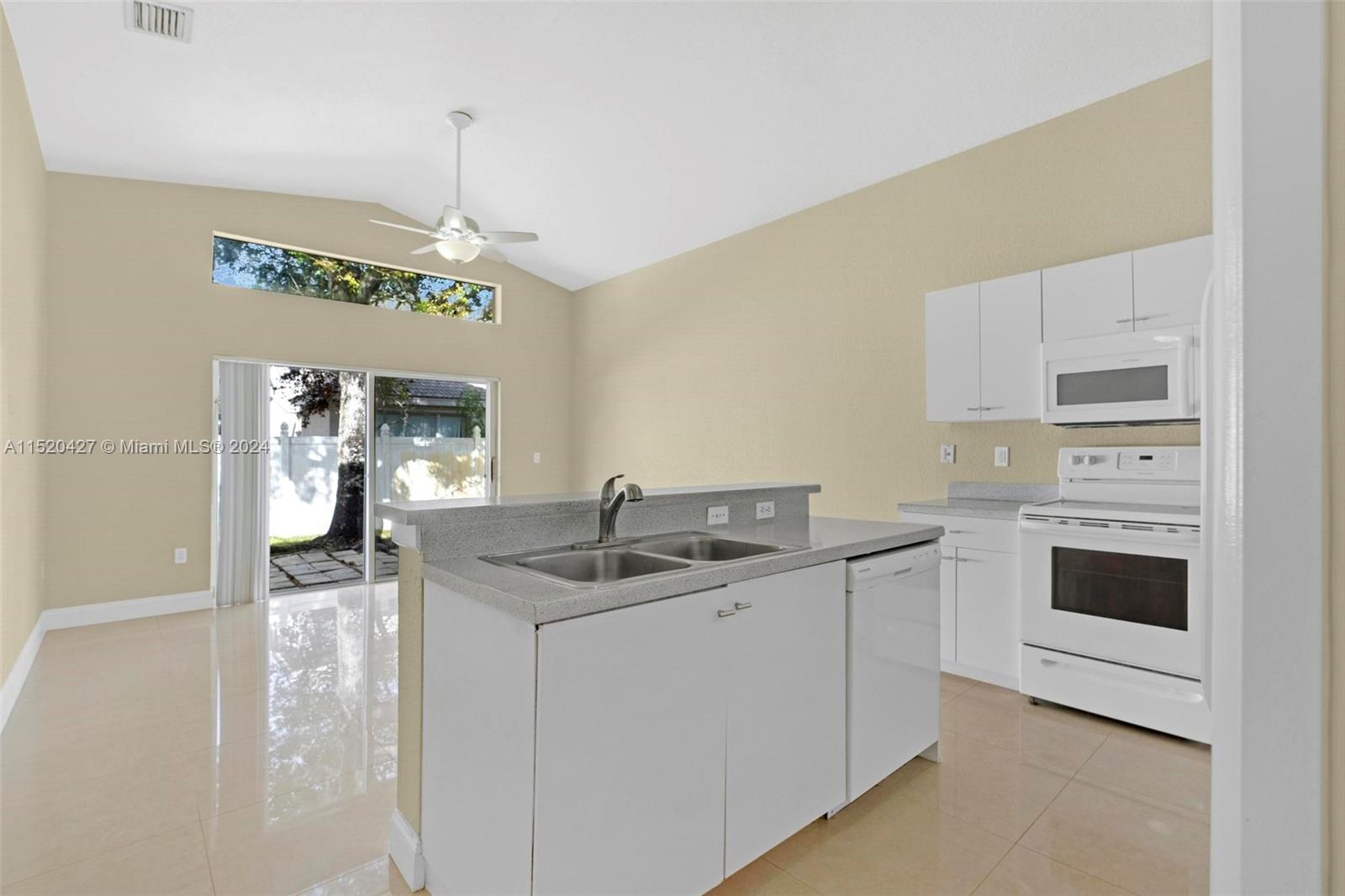 Embrace the allure of Mediterranean living in this captivating single-family home nestled within the enchanting Silver Isles neighborhood. A symphony of charm and functionality, this residence boasts an inviting open floor plan with 4 bedrooms and 2 bathrooms, all adorned with pristine porcelain tile floors. The heart of the home is an open-concept kitchen bathed in natural light under voluminous ceilings. The master bedroom includes walk-in closets, a dual vanity, and another step-in shower for added indulgence. The home includes a laundry room, a family room, and generously sized guest bedrooms. Enjoy the serenity of your fenced-in private yard, perfect for gatherings on the patio or quiet moments on the covered porch. Park with ease in the 2-car garage. Priced to sell and easy to show