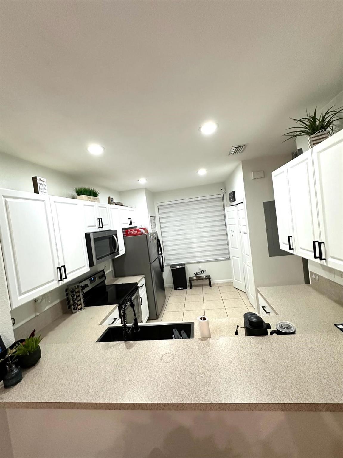 This 3 bedroom2.5 bath spacious corner townhouse features an open floor plan with tall ceilings. Price to sell. The 1st floor features the kitchen, laundry closet, 1/2-bathroom, huge living/dining room overlooking enclosed patio. All 3 bedrooms are upstairs. bathrooms have been recently remodeled. plenty of storage space & lots of natural light. A/C is 2 years old; Samsung smart washer/dryer are 1 year old. 2 outdoor storage closets. 1 assigned parking in front and plenty of guess parking. Beautiful community pool cabana area. HOA fee includes exterior maintenance, paint/repairs, landscaping & pool maintenance, etc. No rental restrictions. Pets are allowed. 24HR SHOWING. PLEASE TEXT AGENT FOR SCHEDULING.