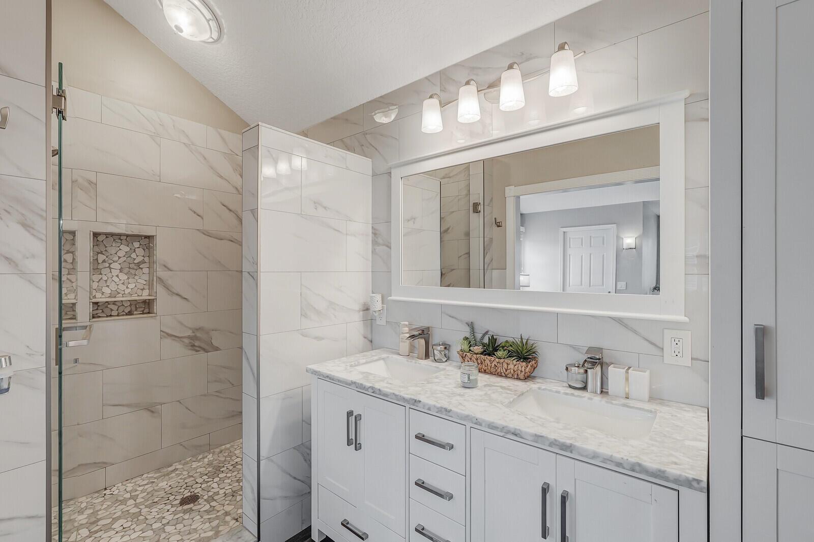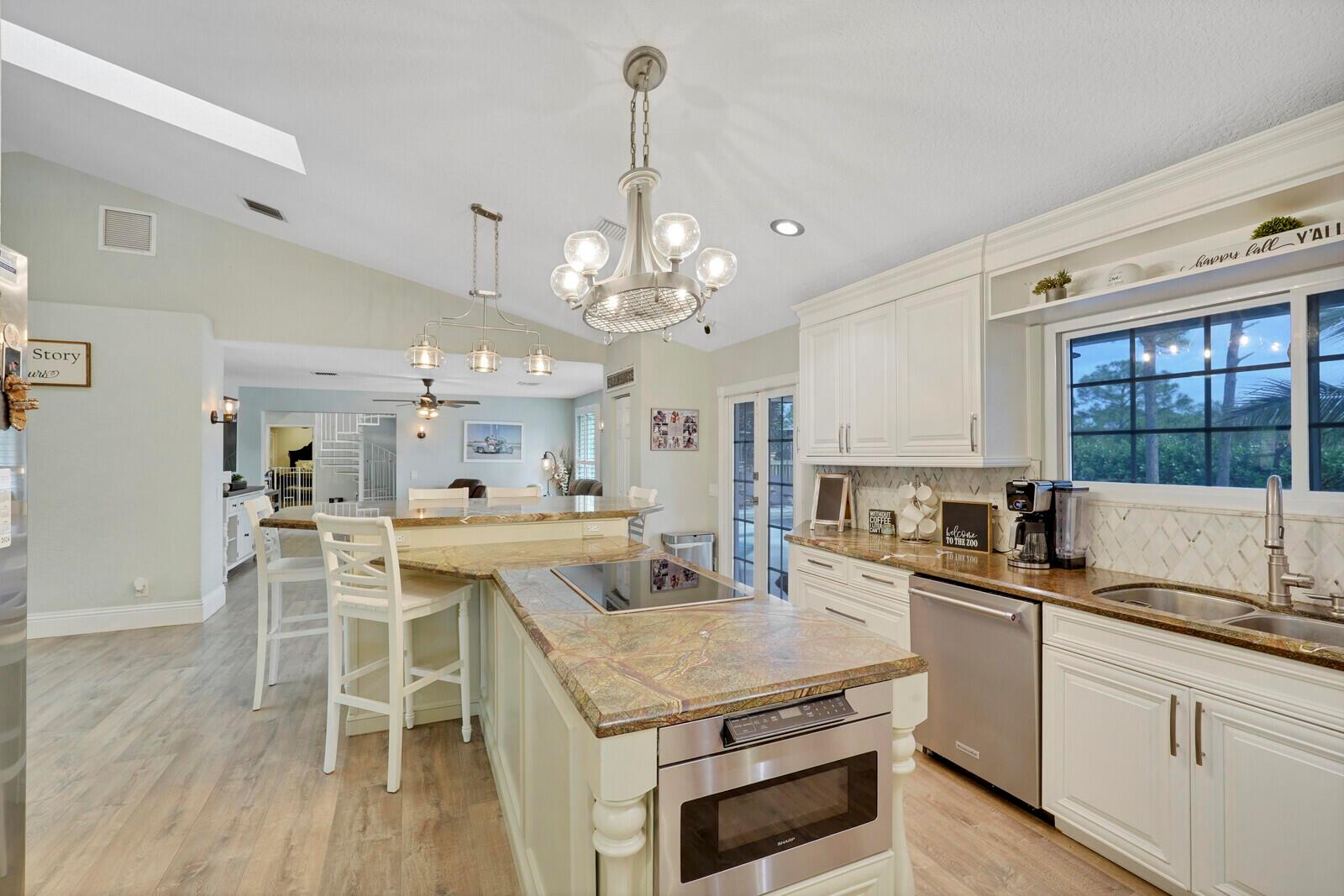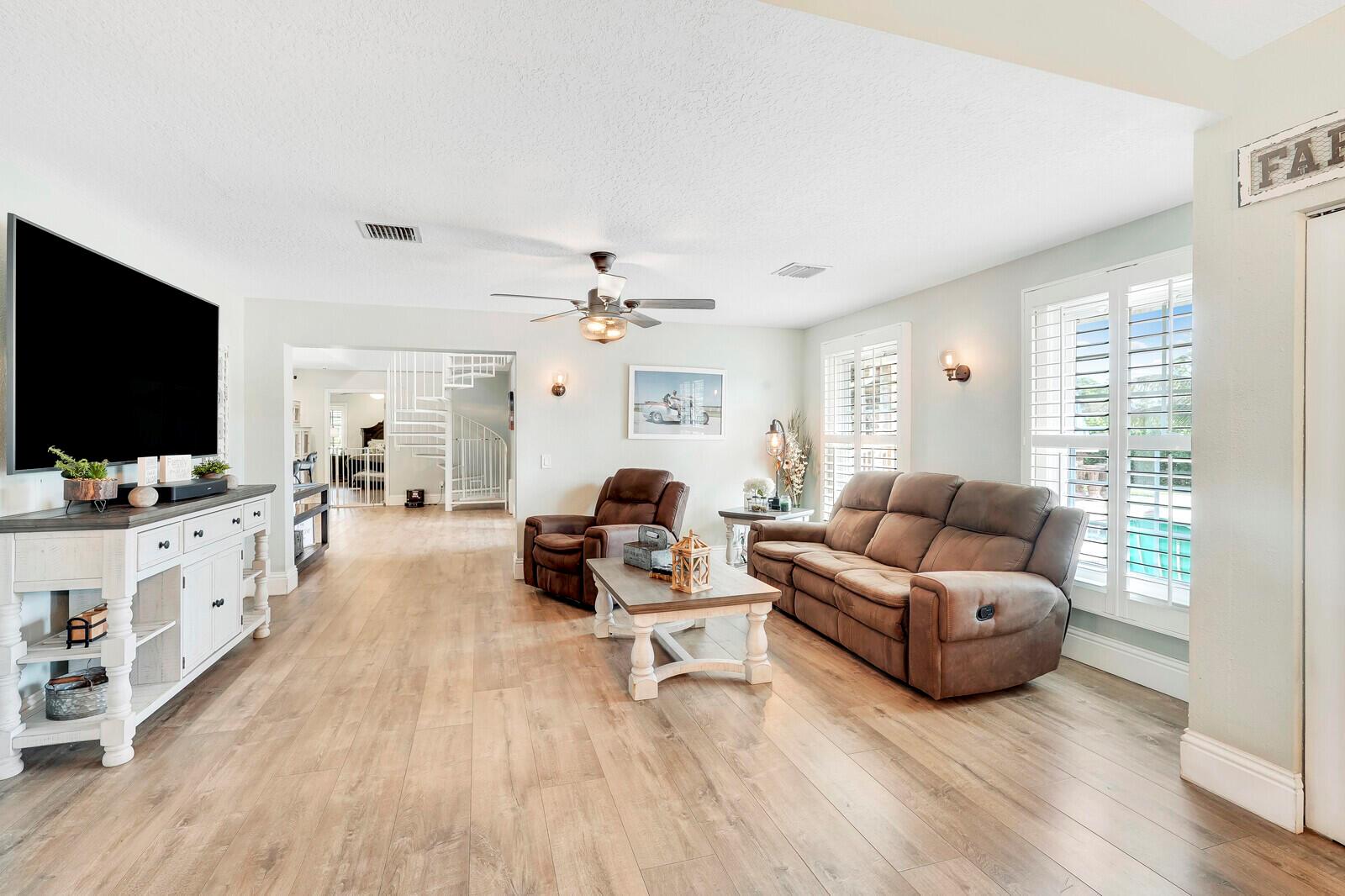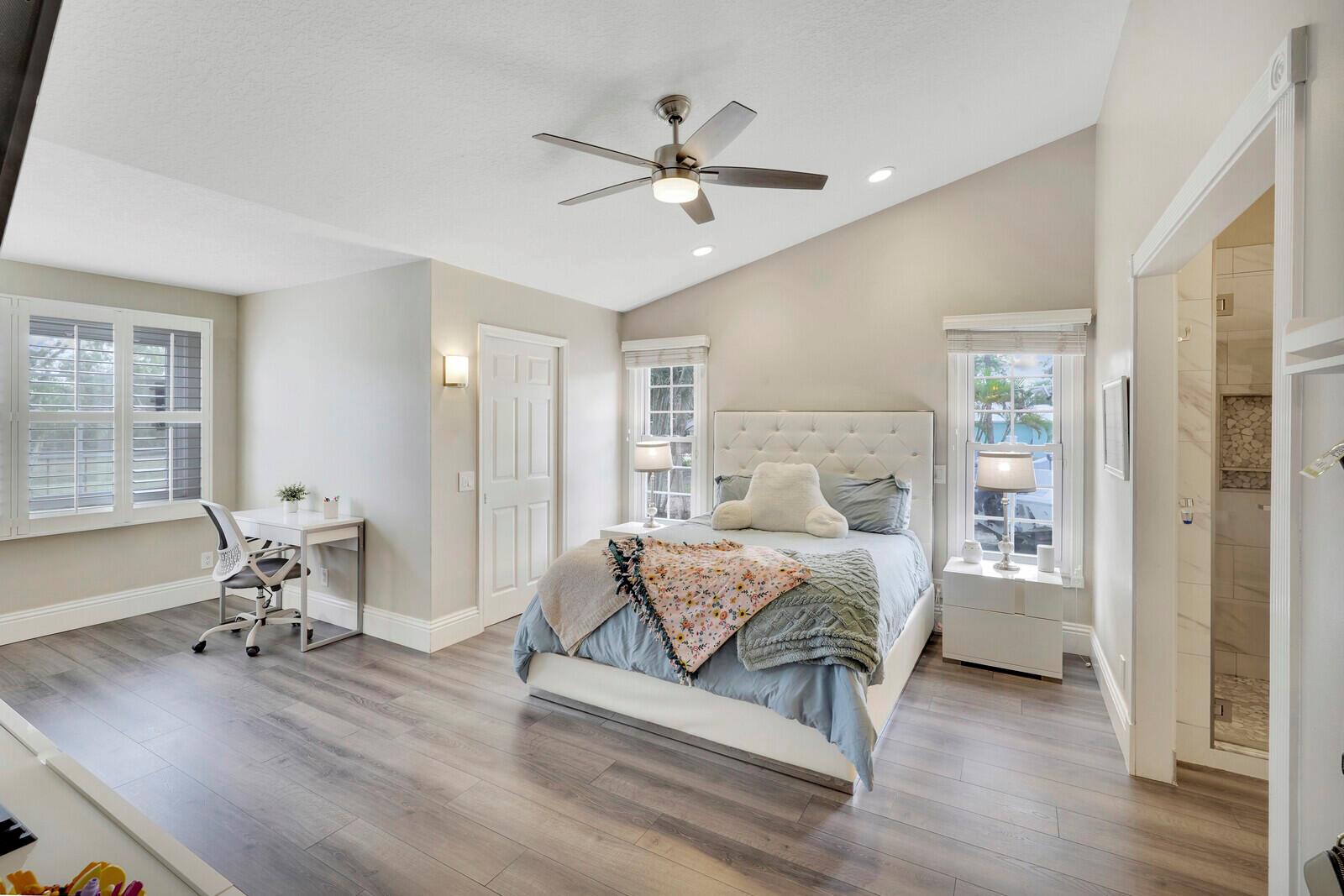 This stunning 4bd, 3ba residence, perfectly situated on a sprawling 1.4 acre lot in Palm Beach Country Estates. You'll be captivated by the grandeur of vaulted ceilings & a spacious nearly 3000 sqft. floor plan that exudes opulence at every corner. The upgraded kitchen has generous storage offering both gas & induction cooking options. Boasting 2 master suites both with luxurious en suites, dual sinks, separate showers, & custom cabinetry for a spa-like retreat, along with substantial walk-in closets. Outside is an entertainer's dream, featuring state of the art heated pool & spa, custom built fire pit & area for an outdoor kitchen creating the ideal setting for year-round entertainment. The property has a 500 gallon in-ground propane tank, a new 2023 AC unit & a 2022 pool heater!