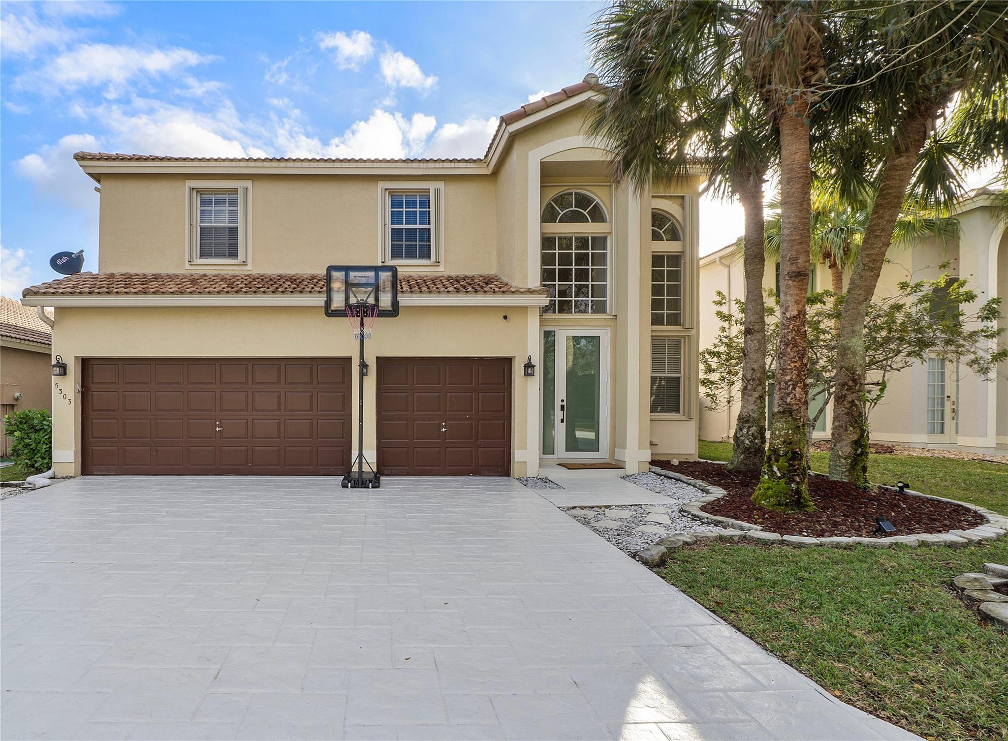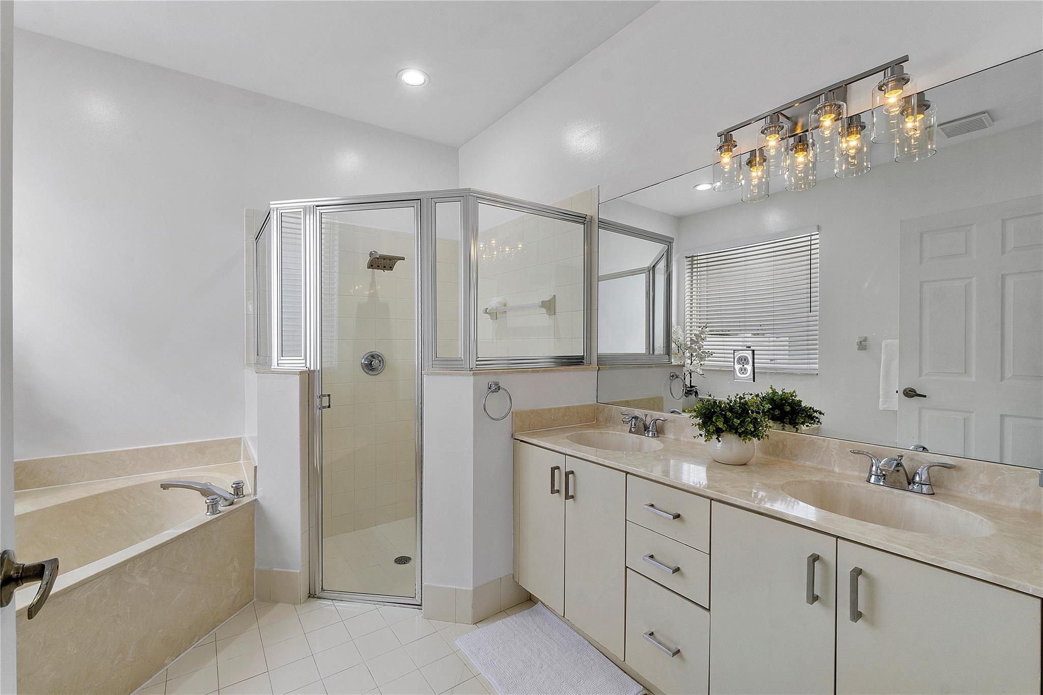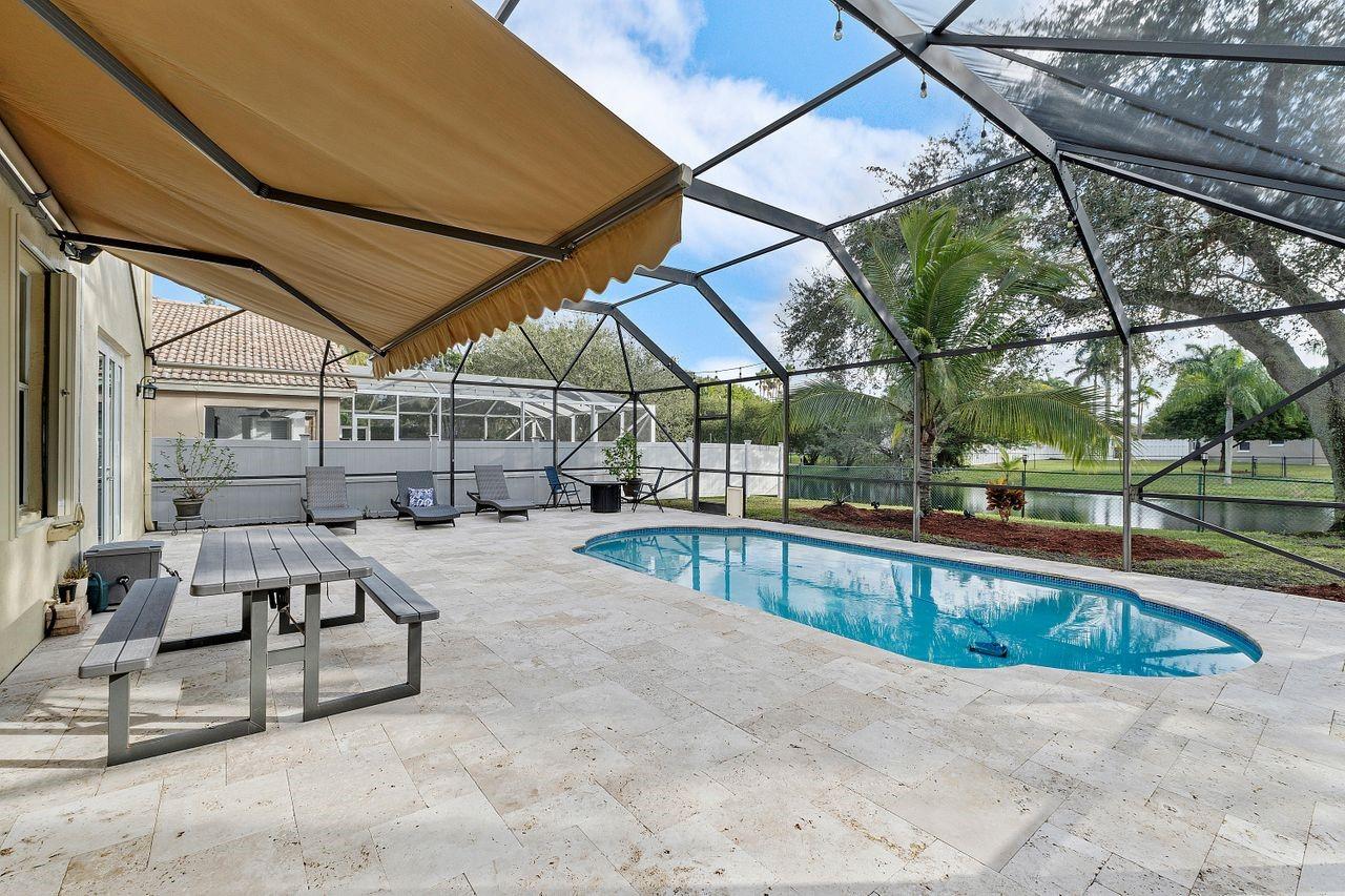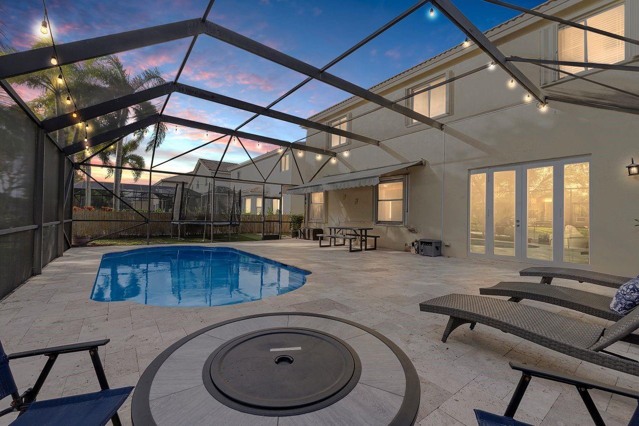 Stunning 5 beds, 3.5 baths + huge loft in the desired gated Sanctuary in Kensington. Over 90k in upgrades, 3-car garage, high volume ceilings, 2021 roof, remodeled sparkling pool w/custom shades, retractable awning, & travertine tiles. Open-layout Kitchen with SS appliances and quartz counters. Large Master bedroom is on 1st floor overlooking the pool area with walk-in closet, MB has double sinks, tub and separate shower. 2nd Master suite on the 2nd floor with en-suite bathroom & walk-in closet. Tile floors downstairs, vinyl on the stairs and loft & newer carpet in the bedrooms. Enjoy the Screen-in patio with french impact doors and captivating water views perfect to relax & entertain. Accordion Shutters throughout. Excellent location near by A-rated schools, shopping, & low HOA.