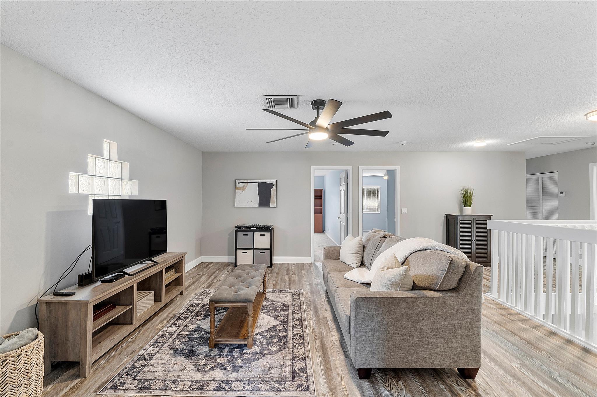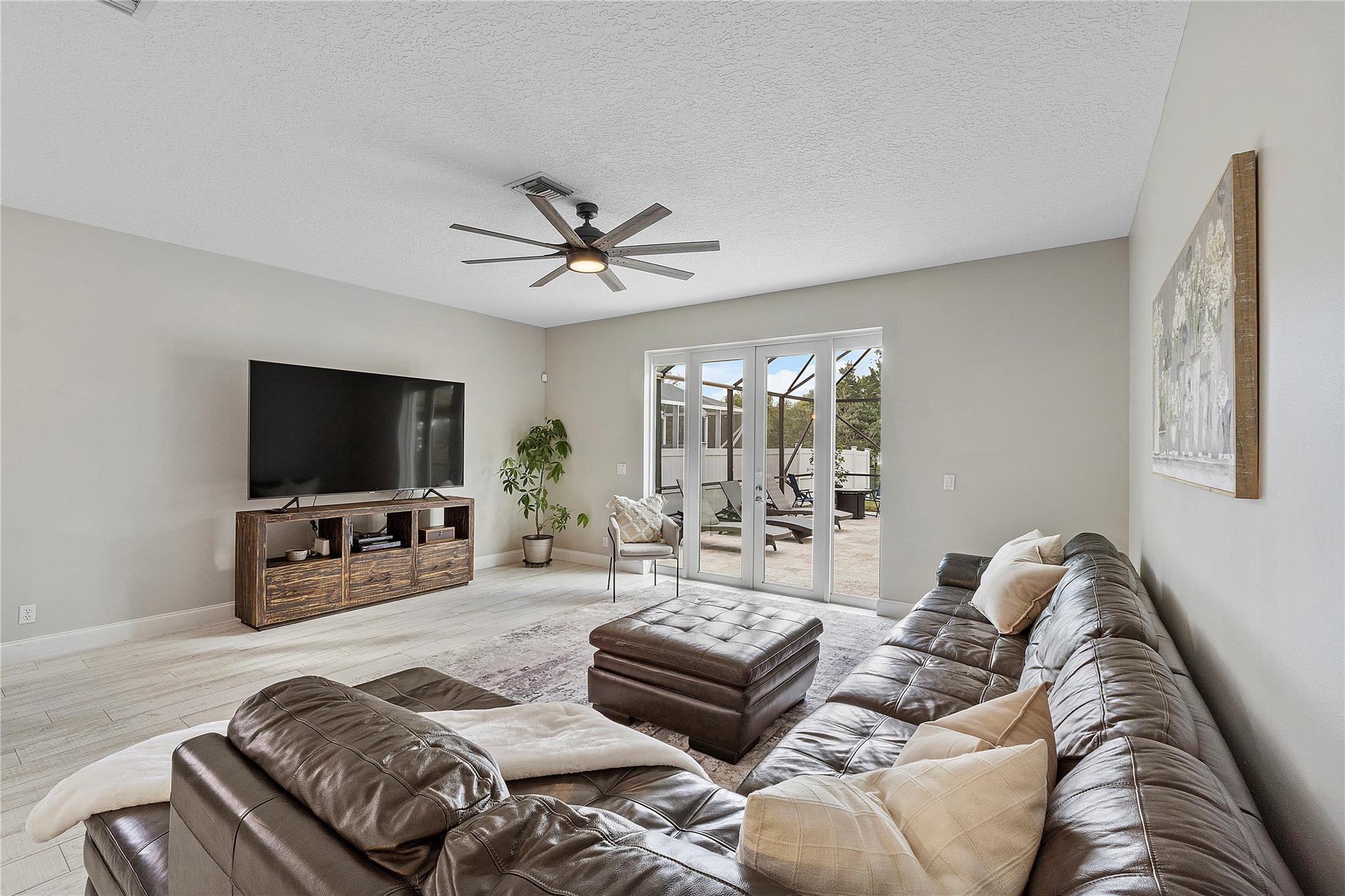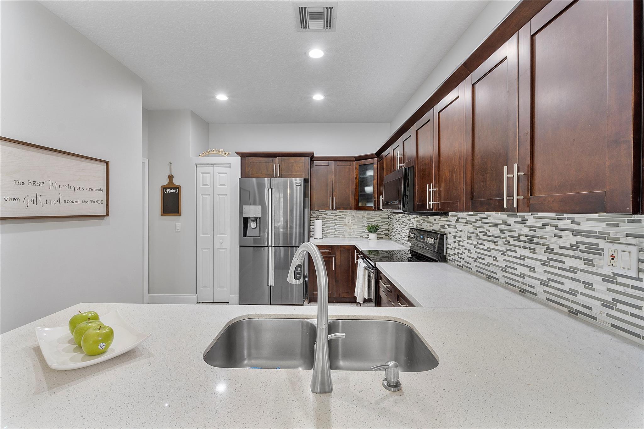 Stunning 5 beds, 3.5 baths + huge loft in the desired gated Sanctuary in Kensington. Over 90k in upgrades, 3-car garage, high volume ceilings, 2021 roof, remodeled sparkling pool w/custom shades, retractable awning, & travertine tiles. Open-layout Kitchen with SS appliances and quartz counters. Large Master bedroom is on 1st floor overlooking the pool area with walk-in closet, MB has double sinks, tub and separate shower. 2nd Master suite on the 2nd floor with en-suite bathroom & walk-in closet. Tile floors downstairs, vinyl on the stairs and loft & newer carpet in the bedrooms. Enjoy the Screen-in patio with french impact doors and captivating water views perfect to relax & entertain. Accordion Shutters throughout. Excellent location near by A-rated schools, shopping, & low HOA.