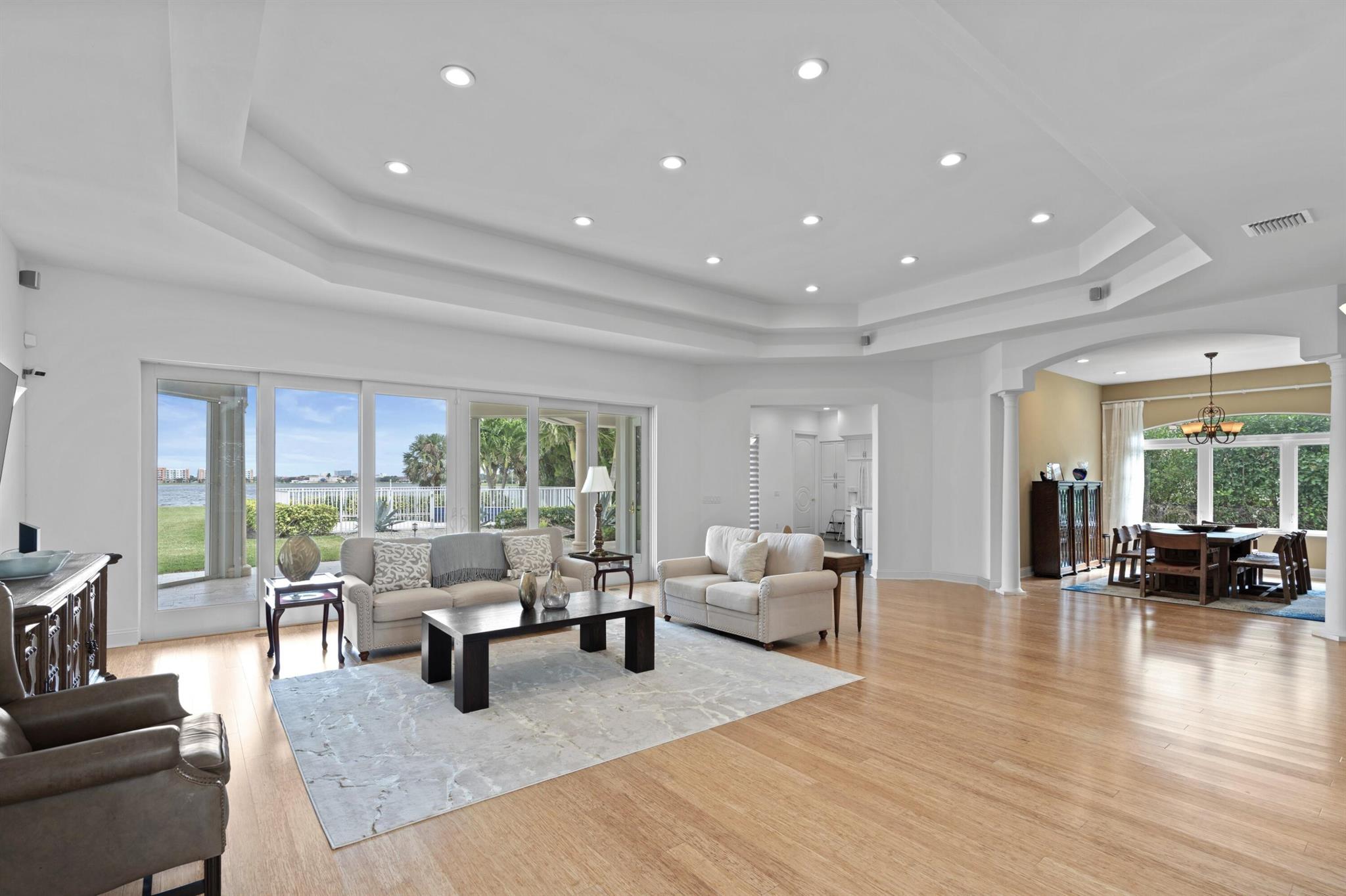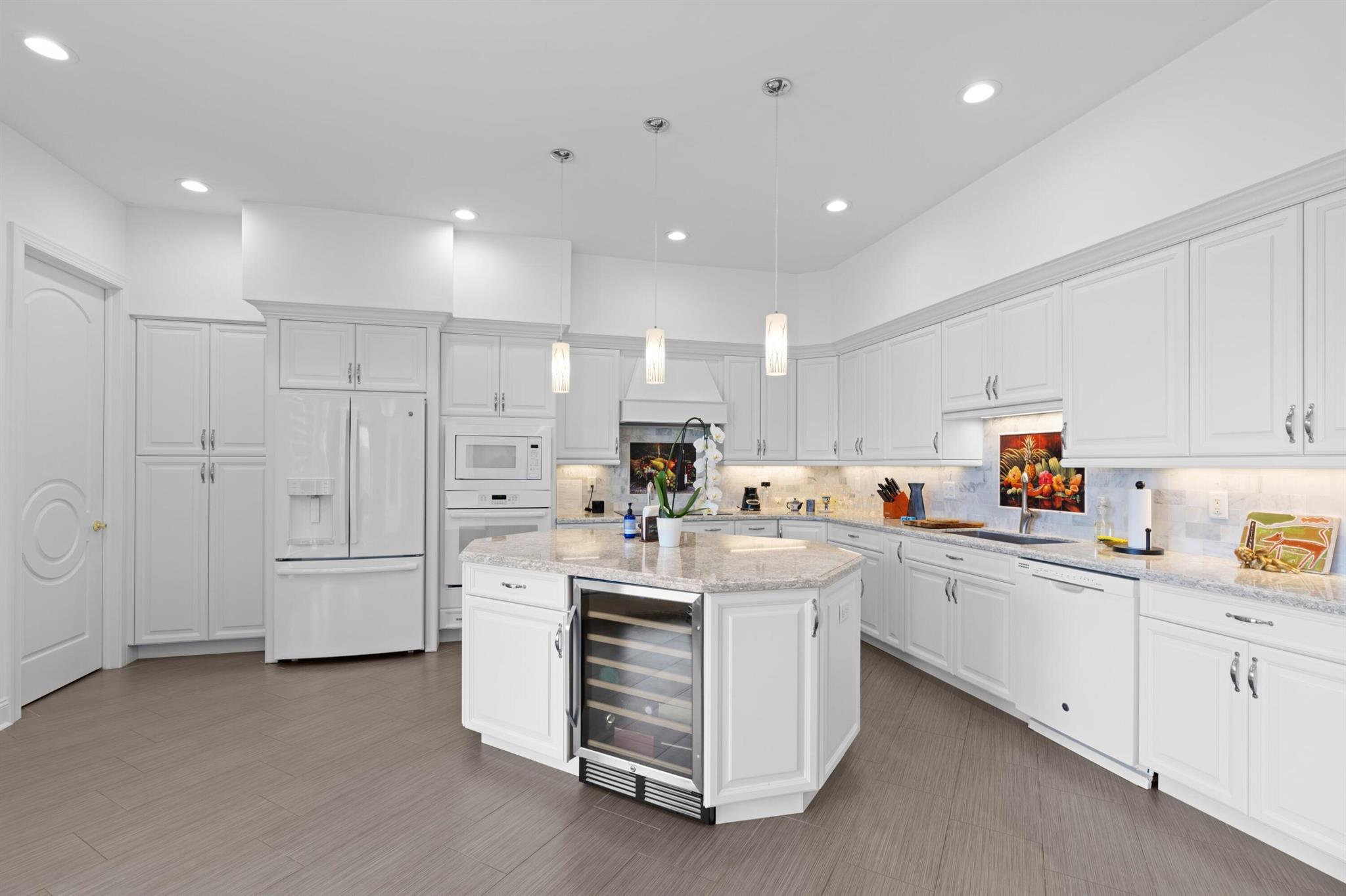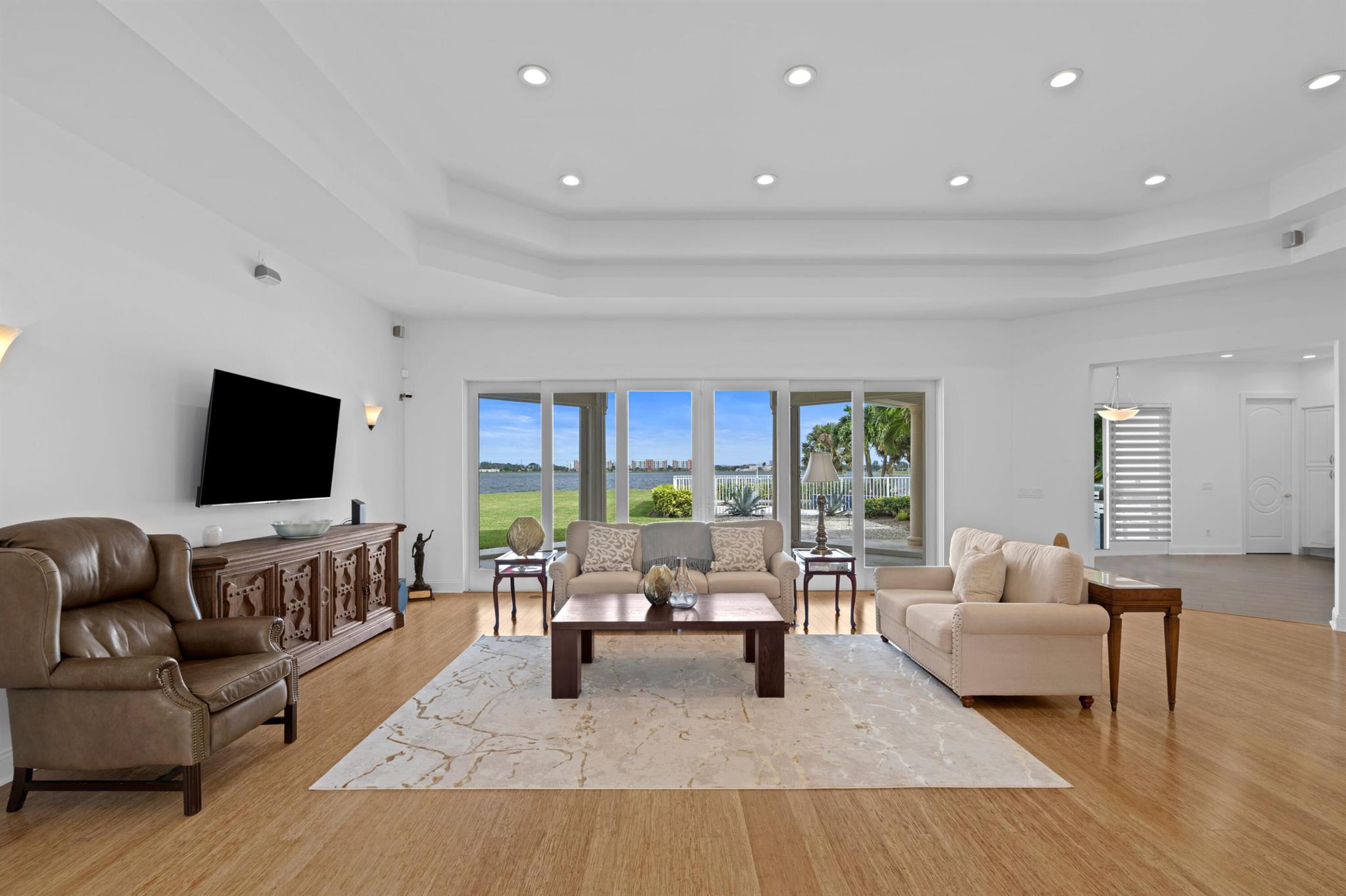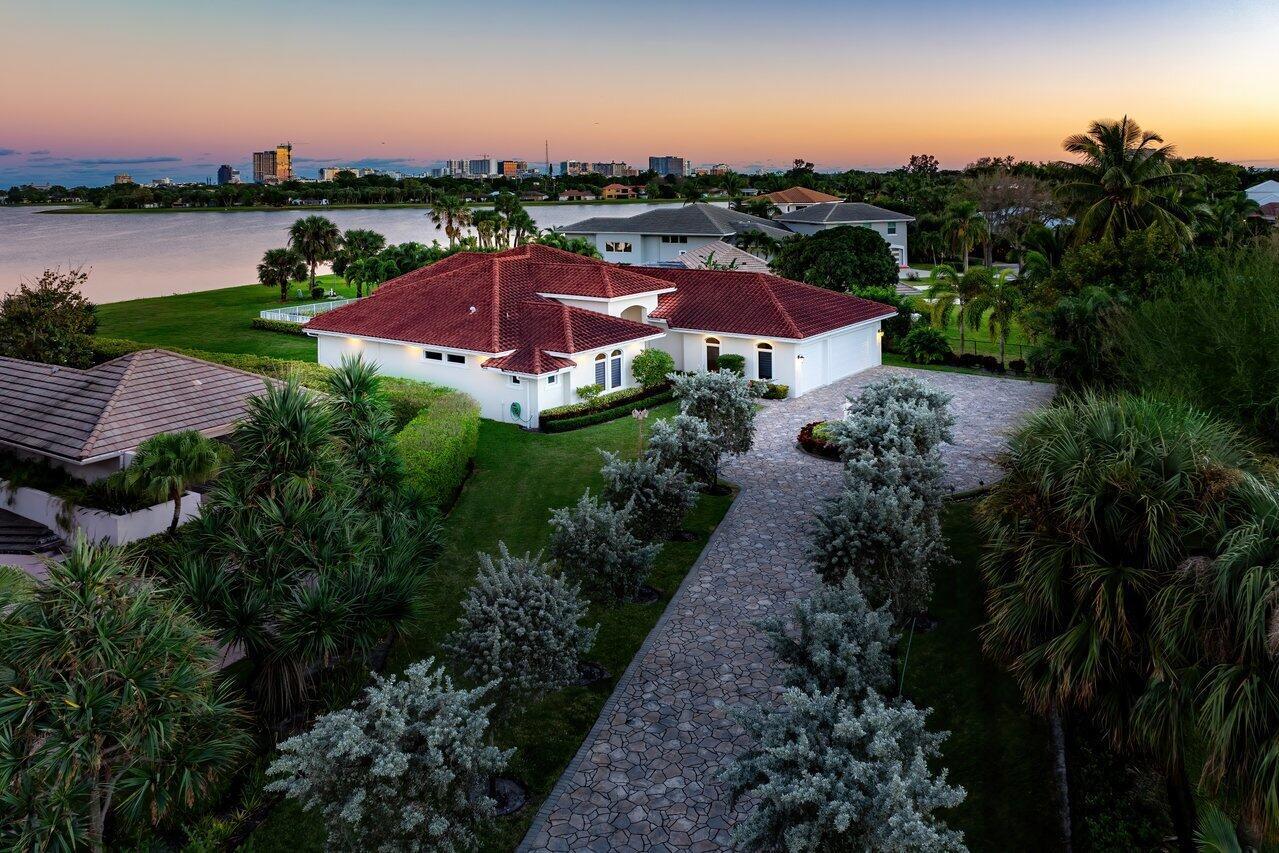 Welcome to 10 Firestone, a luxurious 4-bedroom waterfront estate in Presidential Estates. Built in 2016, this stunning residence boasts serene lake views, high ceilings, and bright interiors. The spacious kitchen featuring a wine cooler is ideal for any chef and the grand outdoor patio is perfect for entertaining. Park 3 cars in the garage! Outdoors, enjoy the saltwater pool with a grilling/bar area as well as an expansive backyard. This gated community offers security and tranquility. You're moments away from the beach, Palm Beach International Airport, Rosemary Square, the Palm Beach Outlets, and local golf courses. This gem sits on a quiet cul-de-sac and is close proximity to the new and improved Banyan Cay Resort and Golf Club. Discover luxury living at it's finest