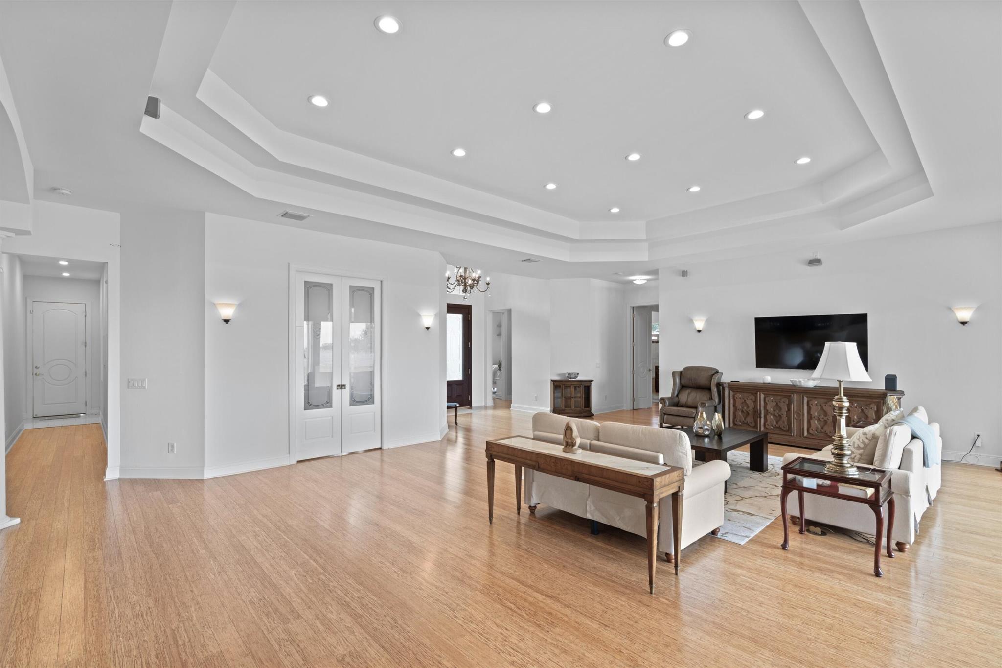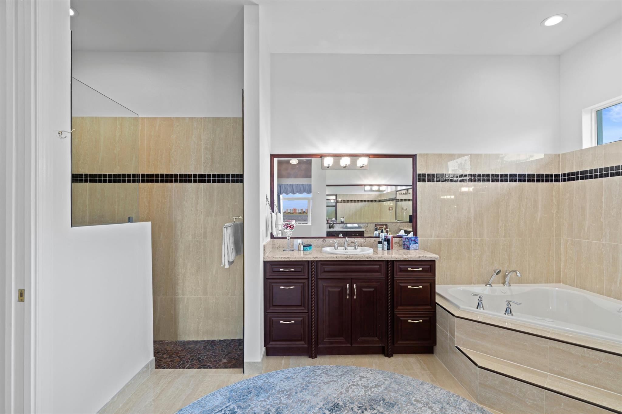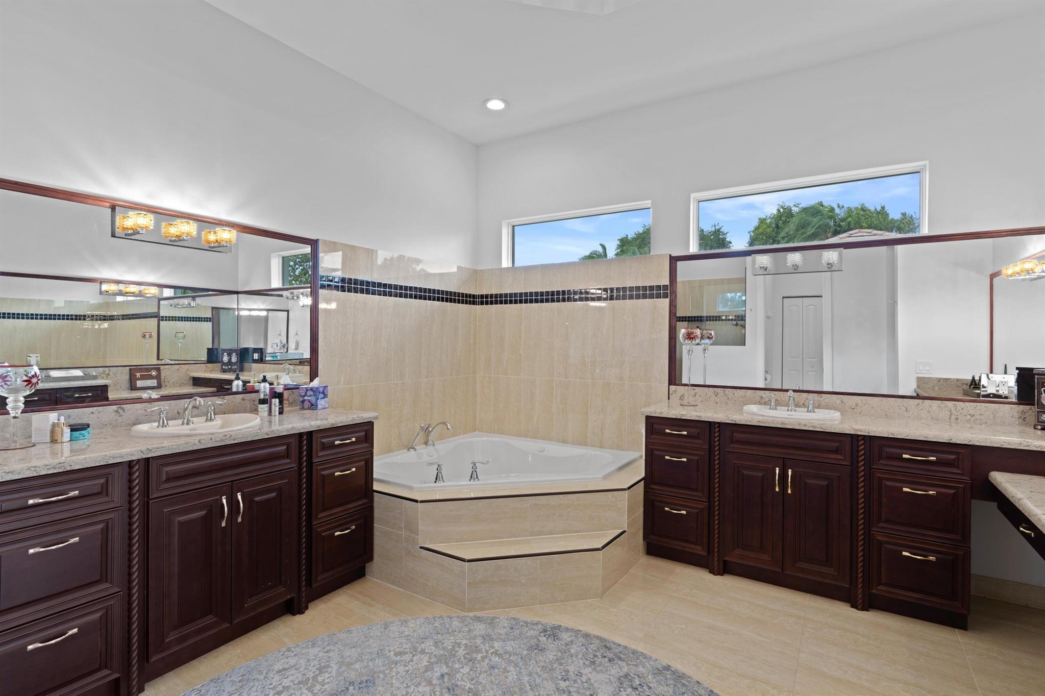 Welcome to 10 Firestone, a luxurious 4-bedroom waterfront estate in Presidential Estates. Built in 2016, this stunning residence boasts serene lake views, high ceilings, and bright interiors. The spacious kitchen featuring a wine cooler is ideal for any chef and the grand outdoor patio is perfect for entertaining. Park 3 cars in the garage! Outdoors, enjoy the saltwater pool with a grilling/bar area as well as an expansive backyard. This gated community offers security and tranquility. You're moments away from the beach, Palm Beach International Airport, Rosemary Square, the Palm Beach Outlets, and local golf courses. This gem sits on a quiet cul-de-sac and is close proximity to the new and improved Banyan Cay Resort and Golf Club. Discover luxury living at it's finest