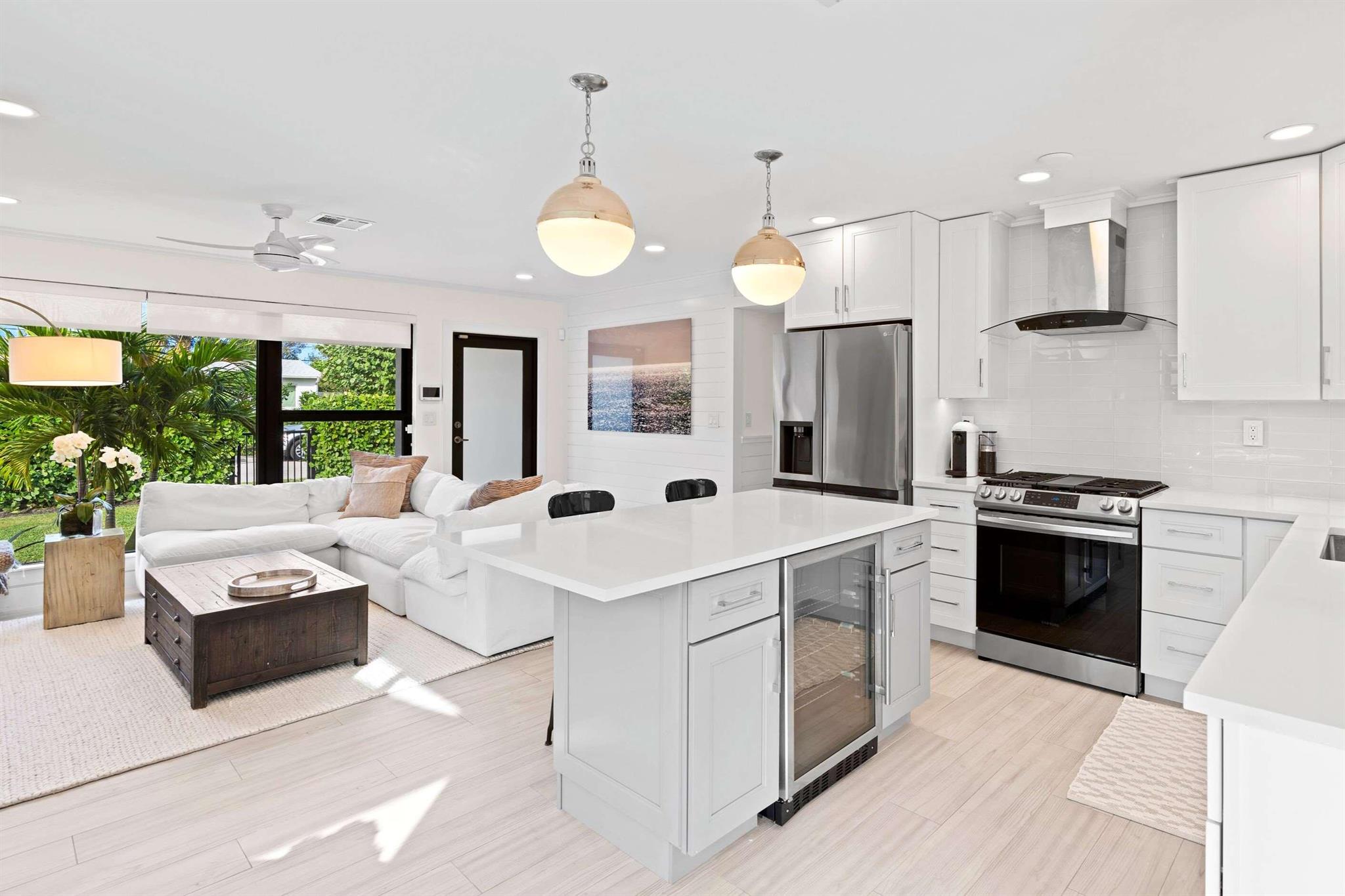 BRAND NEW COMPLETE RENOVATION!! Conveniently located in the highly sought-after ''SOSO'' neighborhood just minutes away from Palm Beach Island. This chic 3/2 pool home has been completely transformed, featuring a modern open kitchen with stainless steel appliances (including wine fridge), white cabinetry, and custom impact windows and doors. Beautiful new landscaping with lush green outdoor spaces- completely fenced in to provide privacy and ambiance. The outdoor covered loggia is perfect for entertaining & outdoor dining. Close proximity to the Intracoastal and The Park (Spectacular new public golf course & restaurant). Only a 5 minute drive to PBI International Airport.