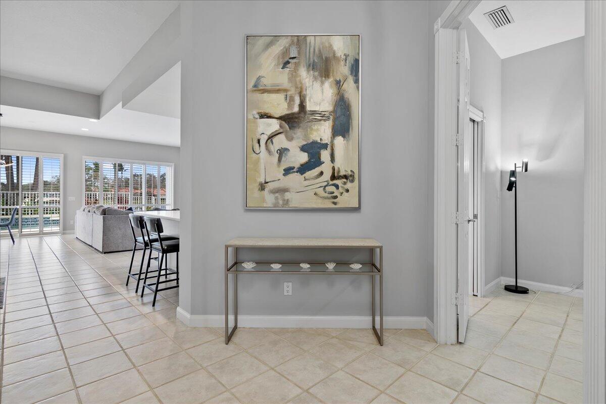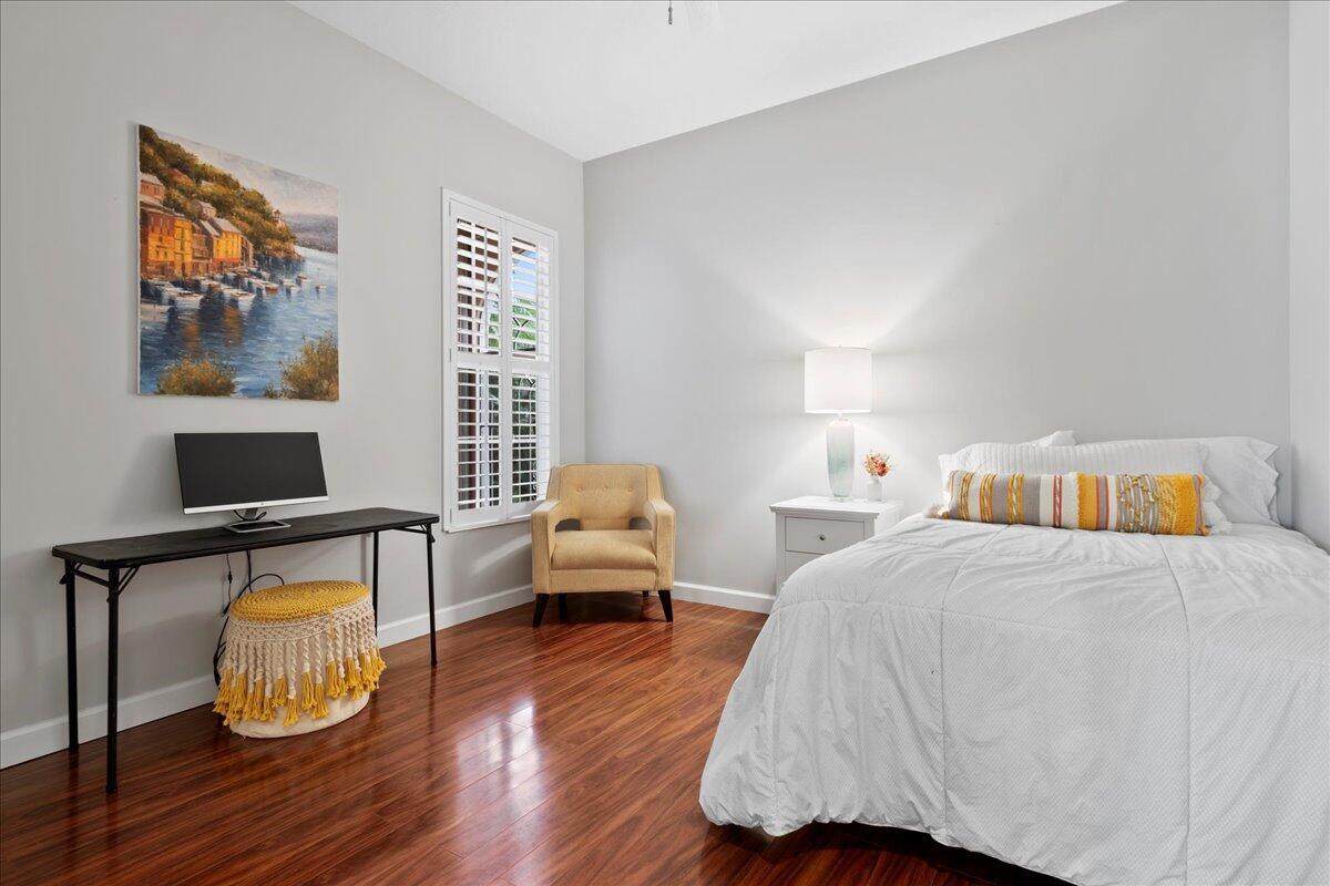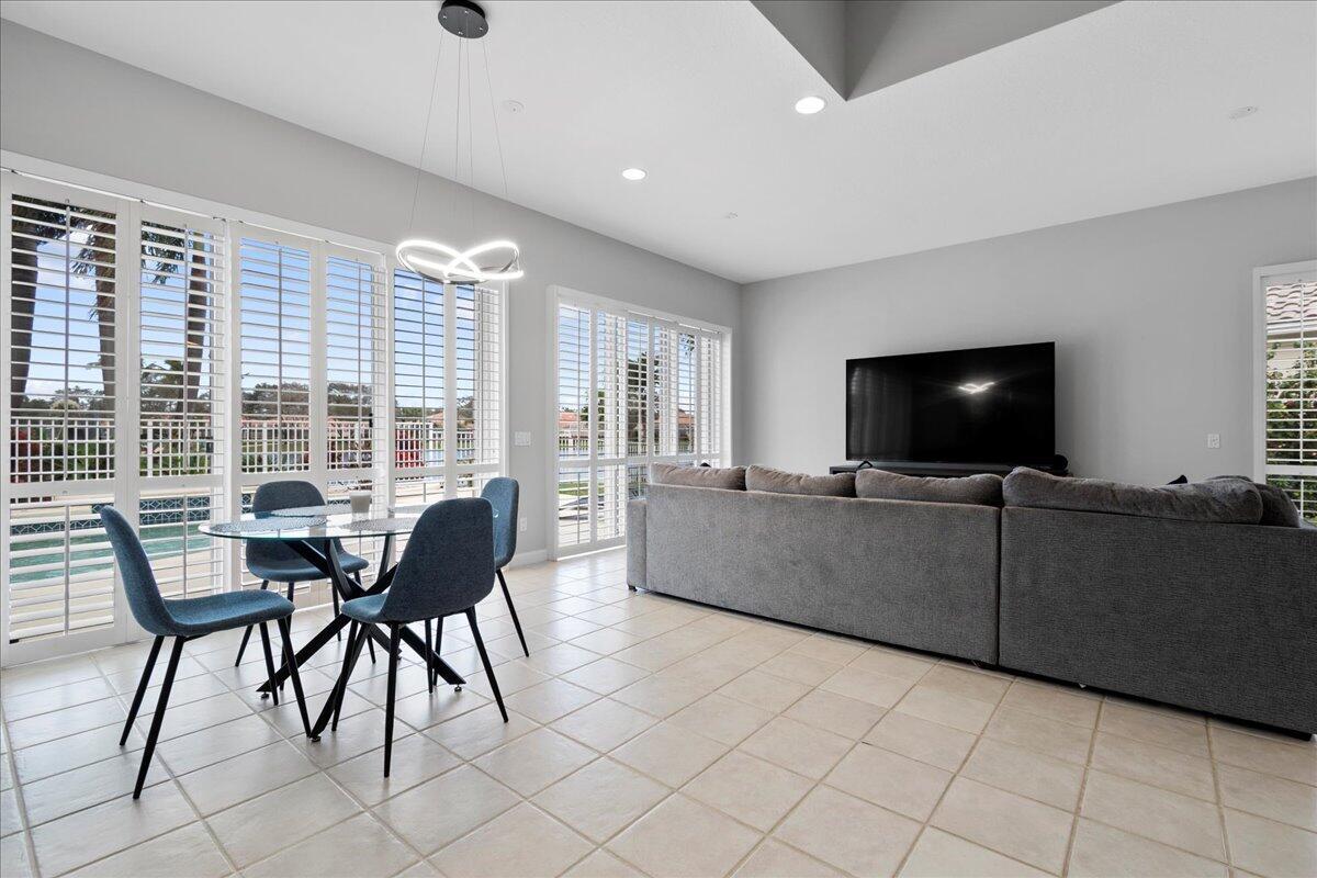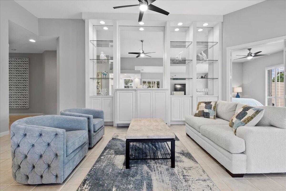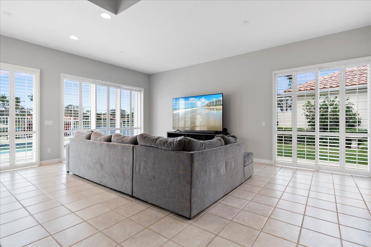 Exceptional gated Expanded Oakmont home in Riverwalk w extra long lake views on wide fenced lot. Hardly used well cared for home on best quiet lot location. Stunning entrance with high ceilings looks thru home to custom pool with spa jets and waterfall. Exotic landscaping surrounds the entire exterior of home. This spacious 3/3 with dbl doors to office can be used as 4th bedroom. Expanded model boasts additional living room and dining area open to kitchen. Custom exterior electric awnings across back of home. Updated plantation shutters on all doors and windows, fresh interior/exterior paint, new modern lighting and fans, custom entertainment center, spacious 2 car garage with built in cabinets.