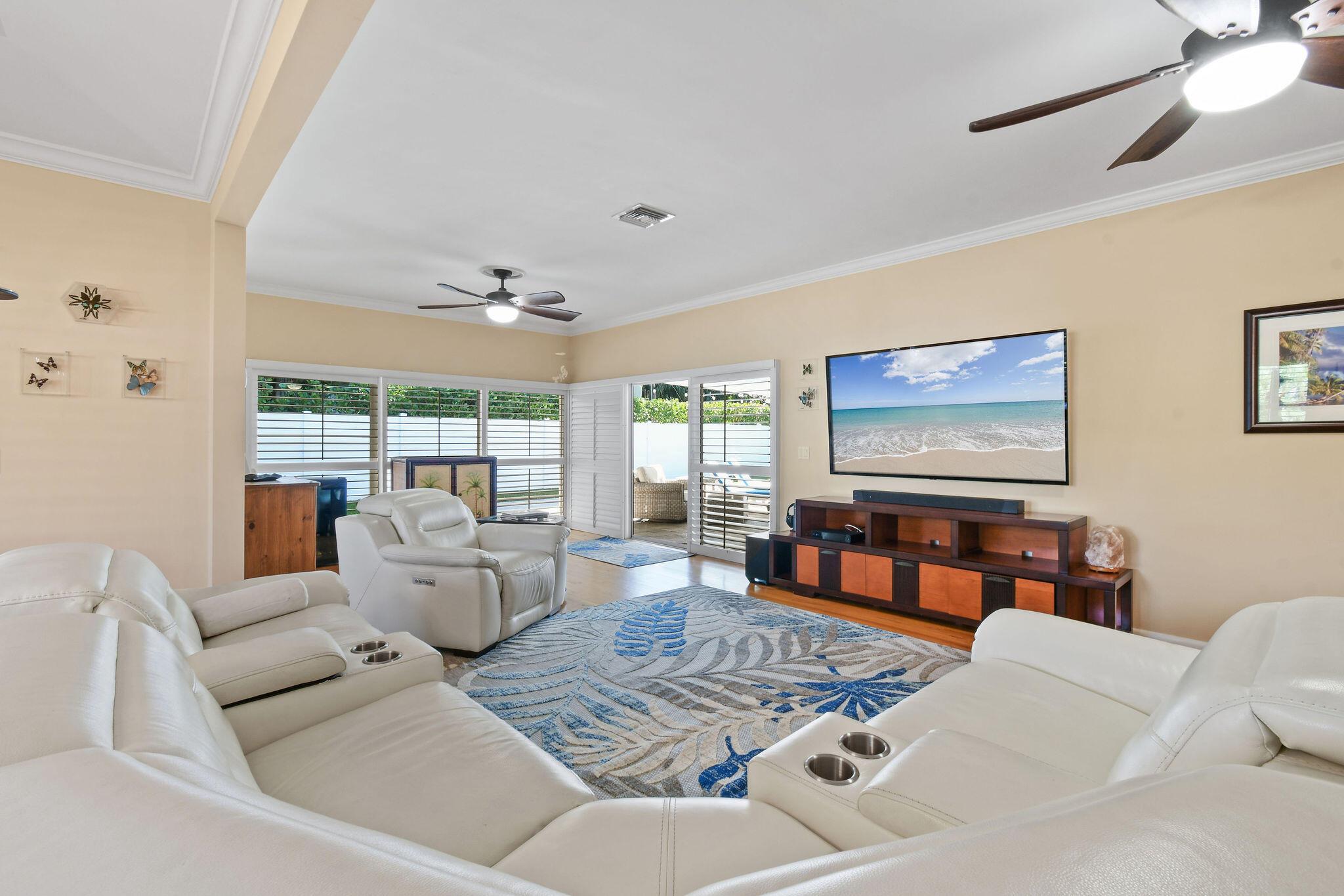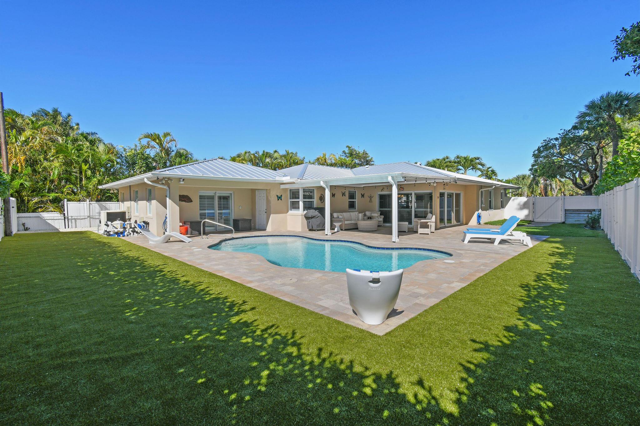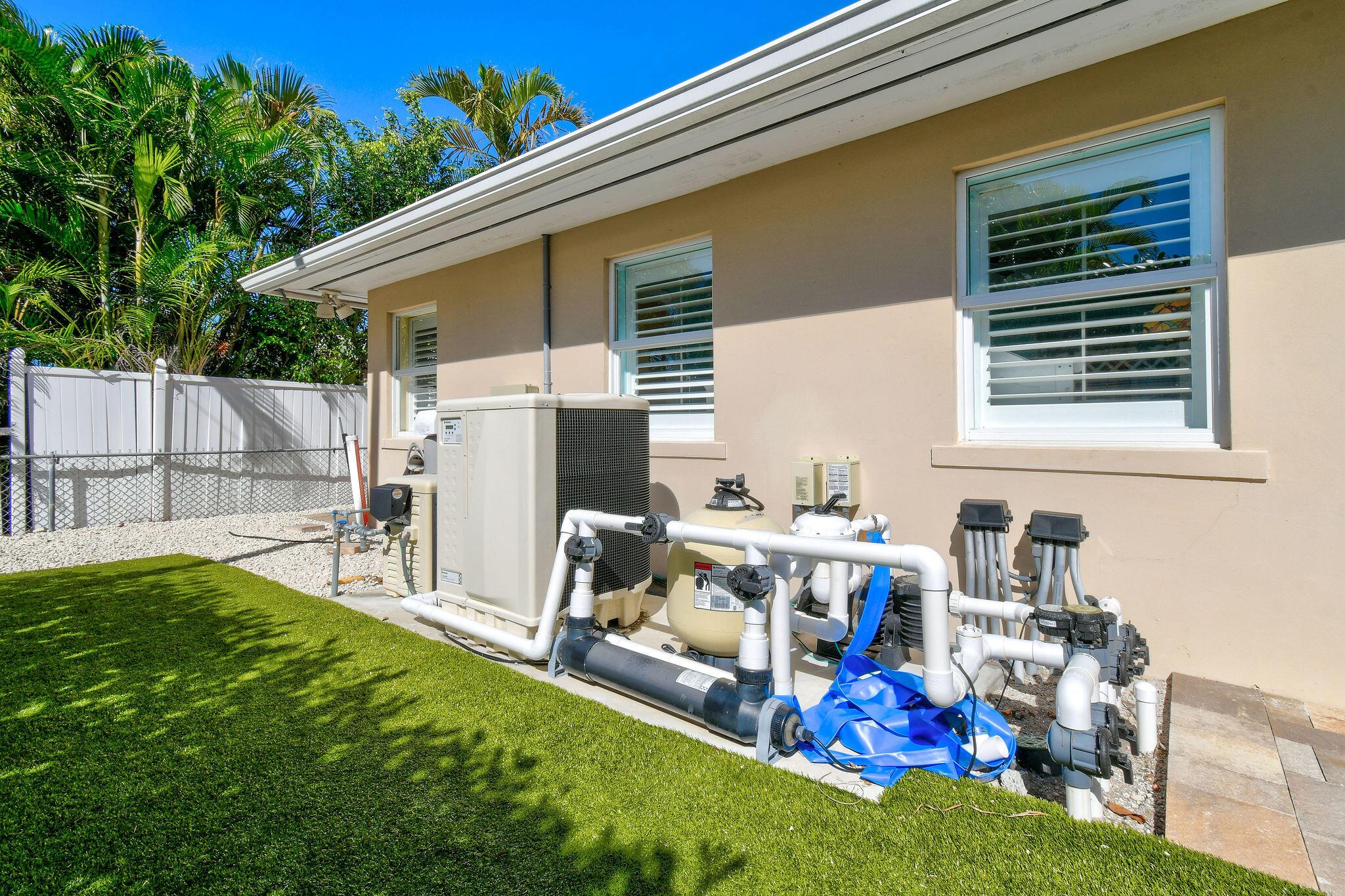Welcome to your dream home in the heart of Palm Beach Shores! This meticulously maintained residence boasts an array of luxurious features and upgrades, ensuring comfort and convenience for the discerning homeowner.Upon entering, you'll be greeted by the charm of impact windows and plantation shutters, offering aesthetic appeal and enhanced security. The water filtration system by Atlantic Filtration ensures pristine water quality throughout the home, while the meticulously landscaped grounds, including back fencing and artificial turf, create a serene outdoor oasis.Experience the ease of natural gas amenities, controlling the stove, dryer, BBQ, and water heater, providing efficiency and reliability. The 2020 metal roof and 2021 patio cover installation including new gutters,