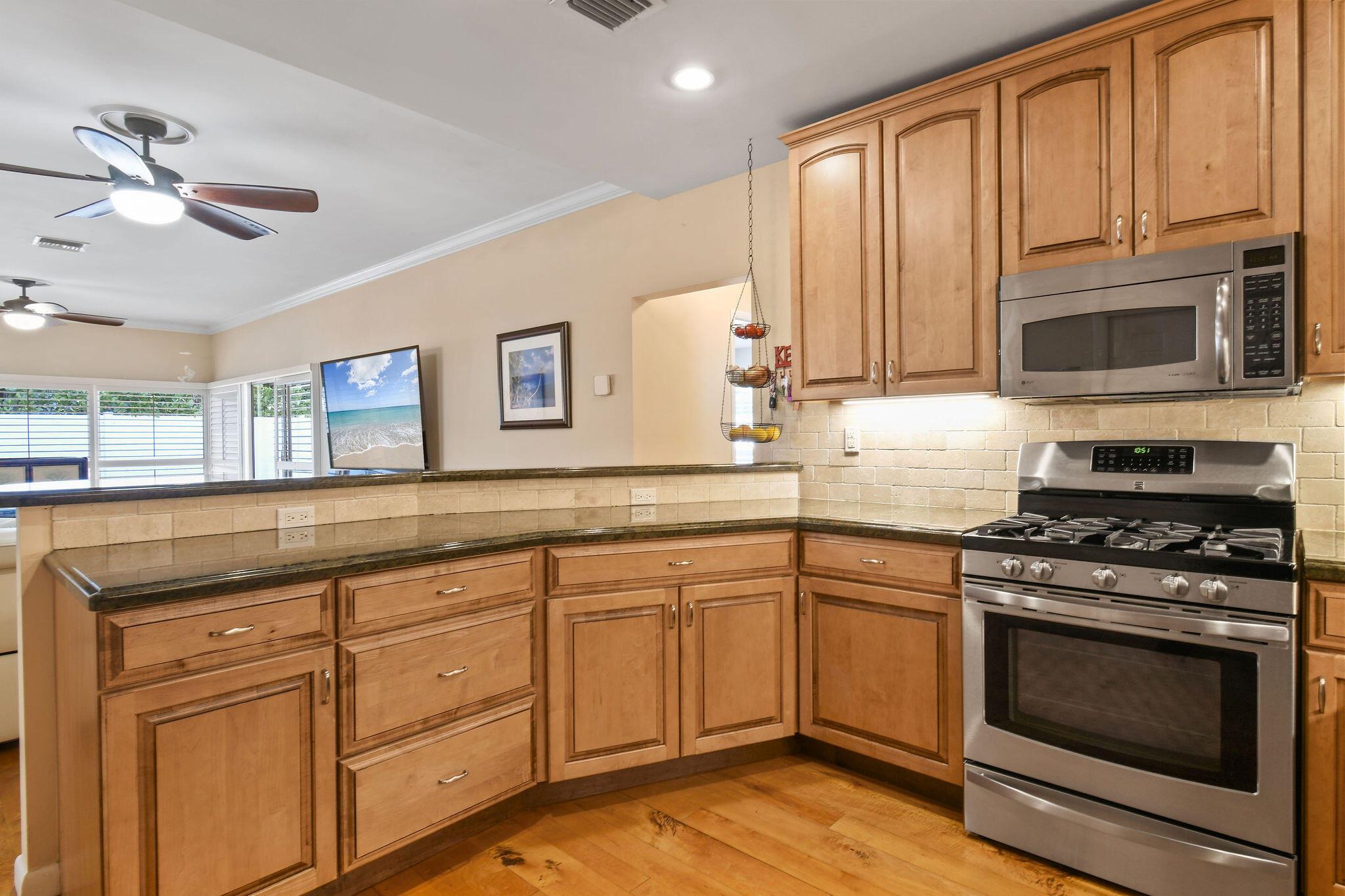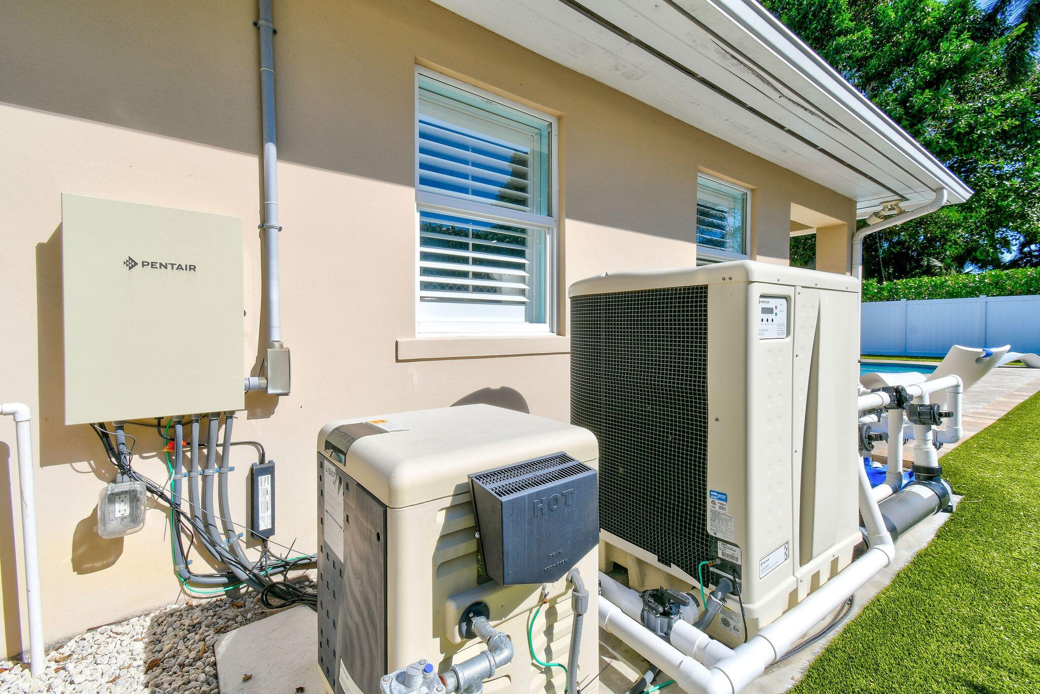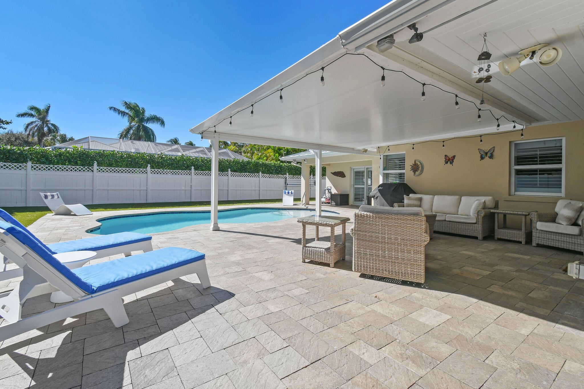 Welcome to your dream home in the heart of Palm Beach Shores! This meticulously maintained residence boasts an array of luxurious features and upgrades, ensuring comfort and convenience for the discerning homeowner.Upon entering, you'll be greeted by the charm of impact windows and plantation shutters, offering aesthetic appeal and enhanced security. The water filtration system by Atlantic Filtration ensures pristine water quality throughout the home, while the meticulously landscaped grounds, including back fencing and artificial turf, create a serene outdoor oasis.Experience the ease of natural gas amenities, controlling the stove, dryer, BBQ, and water heater, providing efficiency and reliability. The 2020 metal roof and 2021 patio cover installation including new gutters,
