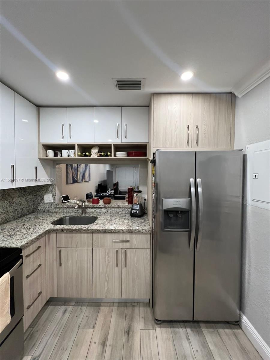This townhome features 2 bedrooms, 2.5 bathrooms, and boasts recent upgrades. The kitchen and bathrooms have been remodeled, showcasing granite countertops, updated cabinets, and modern appliances such as a refrigerator, stove, & microwave. The entire home is adorned with contemporary lighting, and a washer and dryer are conveniently included. This property is suitable for all ages, and pets are welcome. New roof 2025.