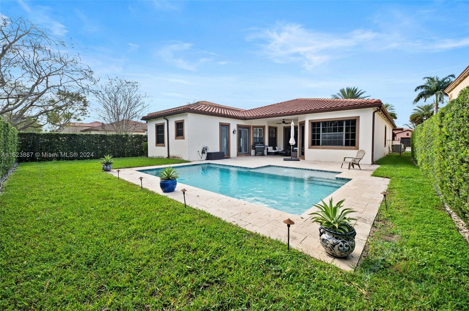 Welcome home to the exclusive Estates of Estada at Monterra in Cooper City. This perfectly appointed home has 4 bedrooms,3 full baths, 3000+ SF home in the highly sought-after 24-hour guard gated community. With impact windows & doors, tons of natural light, custom closets, gourmet chef’s eat-in kitchen,11 ft ceilings throughout, separate laundry room, full 2 car garage, 3rd garage converted to 5th bedroom/office plus tons of storage you can move right in! With the tropical & lush landscaping it’s easy to enjoy the XL backyard, full size heated pool. This home is zoned for the best A rated schools, close to house of worship, minutes to shopping, grocery, cafes and so much more! Connect anytime for a private tour! Easy to show!