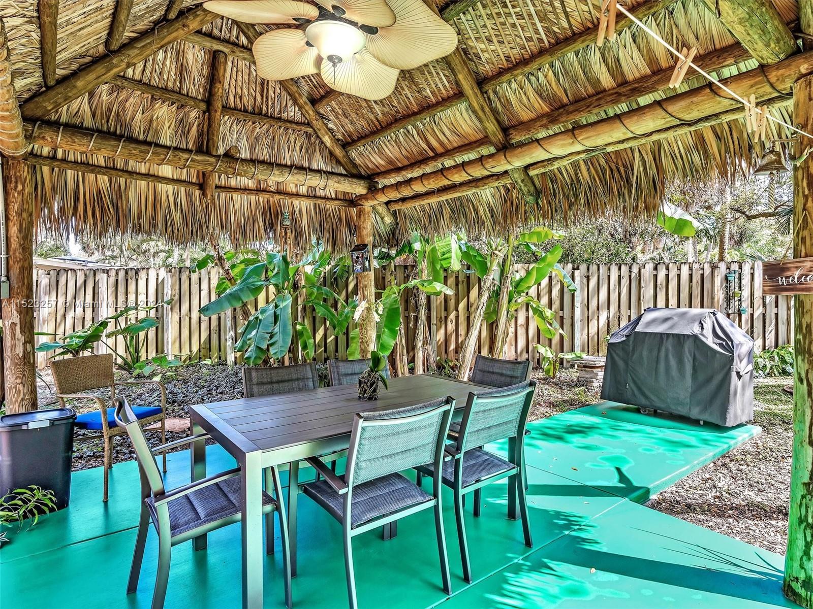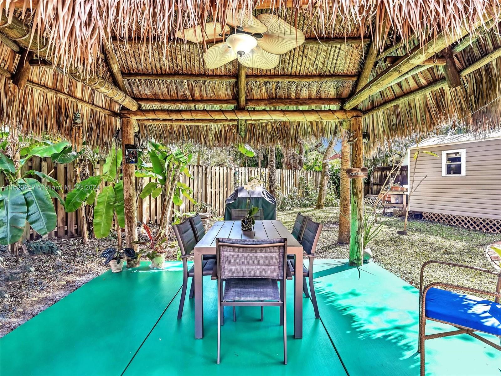 Peaceful and Inviting, this super clean 2 bed 2 bath home is upgraded and move-in ready! Extra large lot with majestic oak trees keep you cool. Unbelievable swirling brick pavers lead through the Fully Fenced Private Yard to your Tiki Hut and on to your 12' x 14' Storage Shed, both with electricity! Mature fruit producing mango, loquat and banana trees. Landscaping makes this oversized yard a Tropical Paradise! Plenty of room for a pool! New driveway pavers, covered carport, and front screened porch. 2022 Jaco Coated Roof and updated weatherproofing to chimney and high impact skylights. Newly painted, New Custom Cabinetry, Refrigerator and Gas Stove. Hurricane Impact Windows and Doors. Walk to Parks and Nature Preserve! Minutes to the Beach, Downtown, Transportation, and much more!