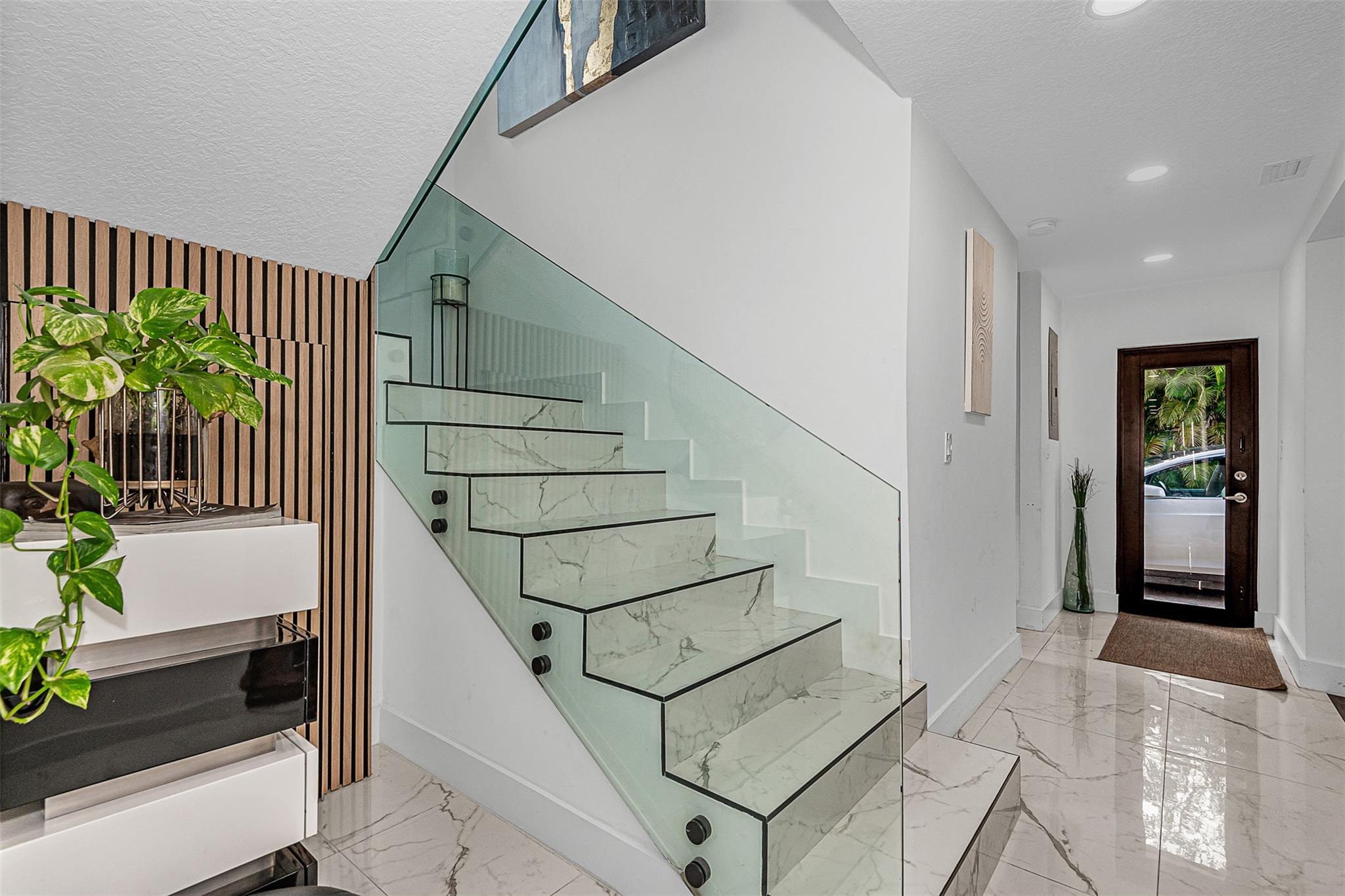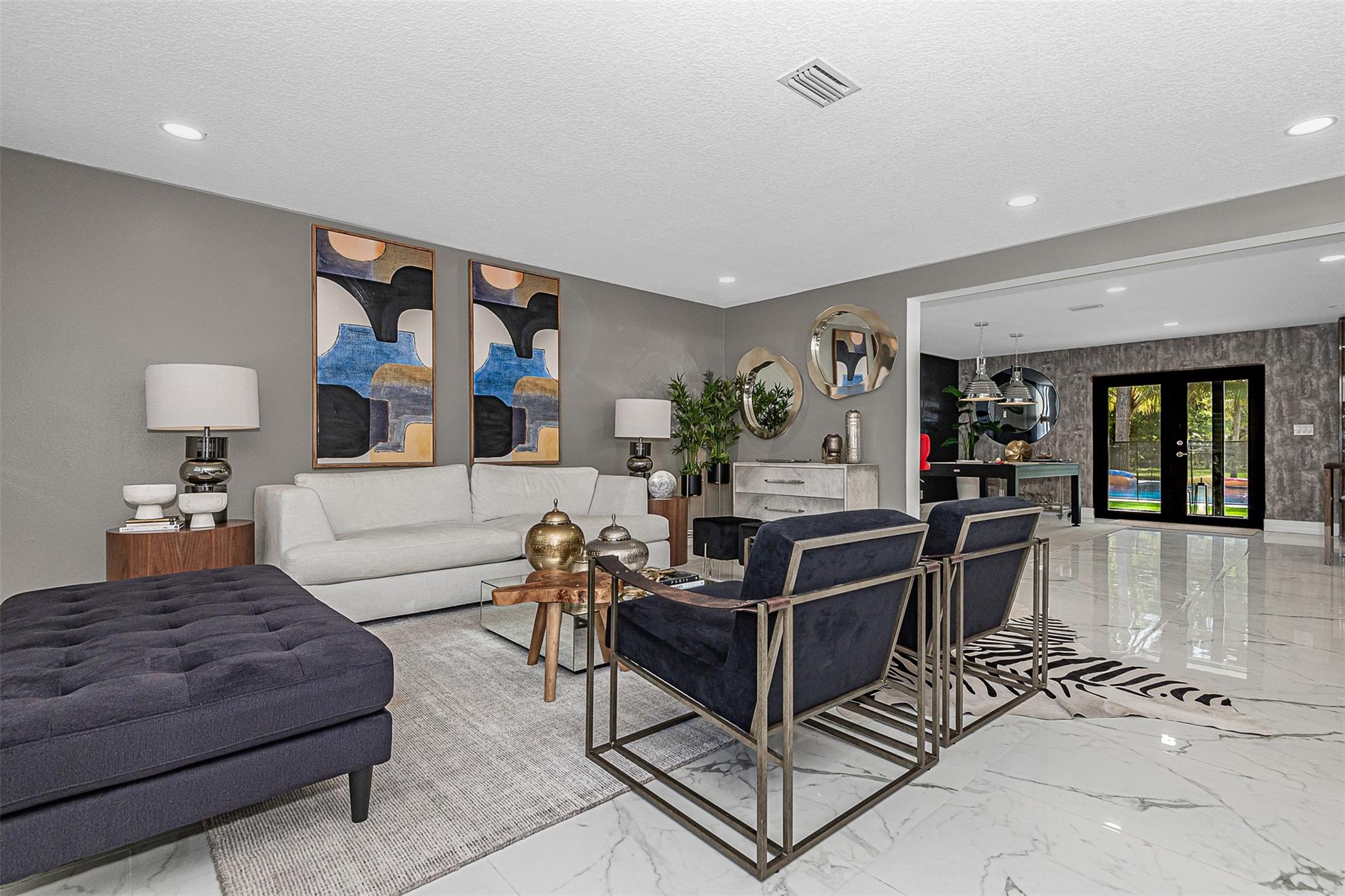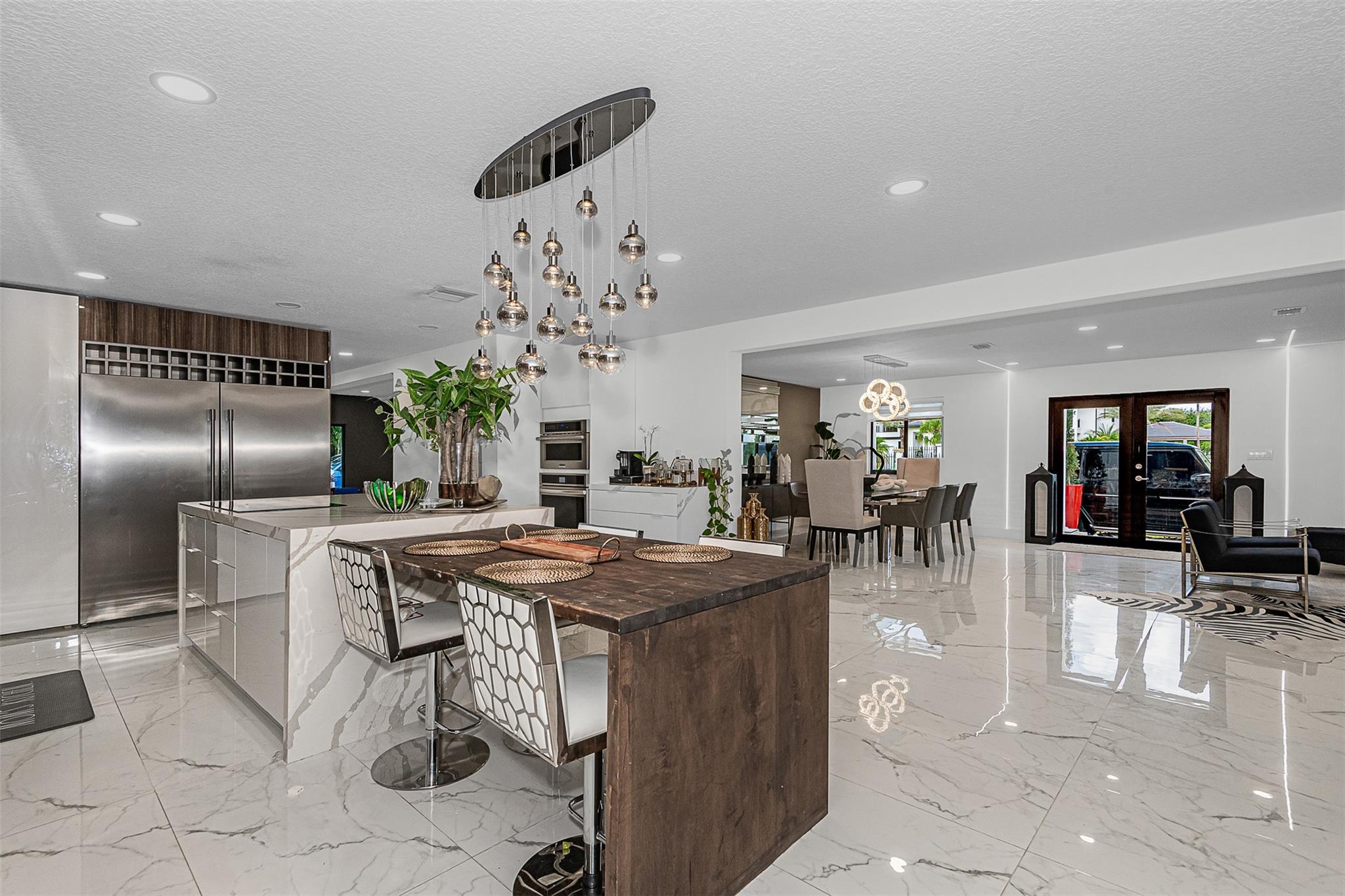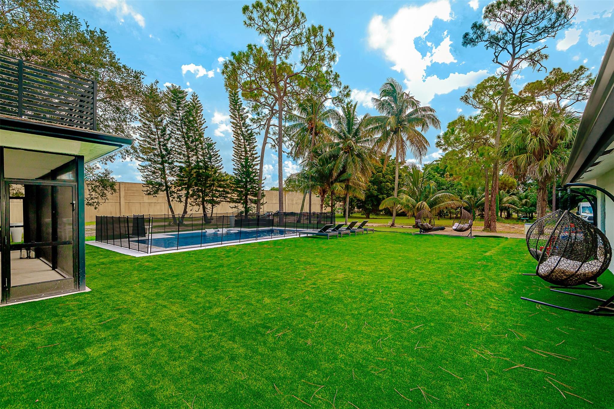 Rare Opportunity! A Hidden Secret tucked away in a private section of Parkland, very quiet & private This large 5-bed 3-bath house has been beautifully renovated with porcelain tile throughout downstairs, and laminate upstairs. European cabinets & quartz counter in the kitchen and laundry room, top-of-line appliances, induction stove, oversized refrigerator/freezer. Baths have been remolded. Glass staircase. Electrical & plumbing upgraded, 2 new A/C installed, all doors replaced. New hot water heather. Electric charge installed for cars. The roof was replaced in 21. Septic/Sewer & well tank were also replaced. Brand new Salt Water Pool, artificial turf, soccer field, playground, and miniature golf, transformed part of the garage into an office with an added bathroom. On 1.25-acre lot