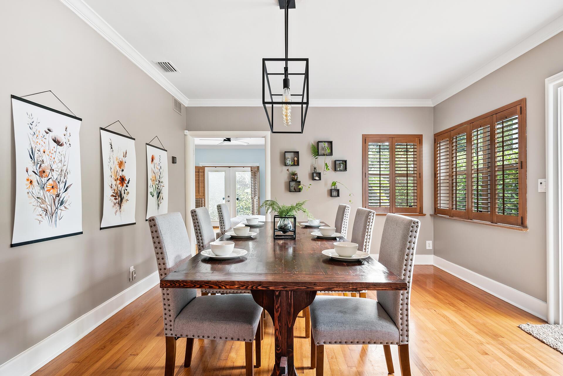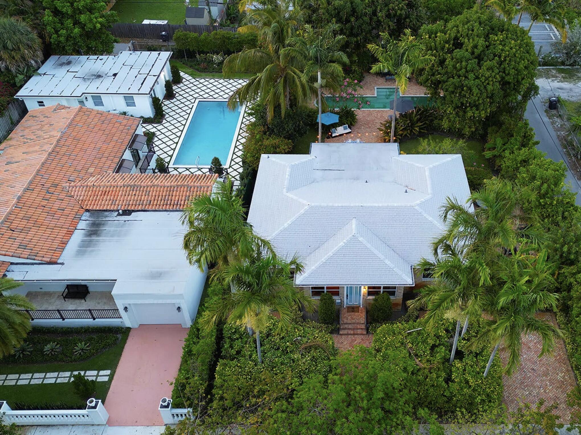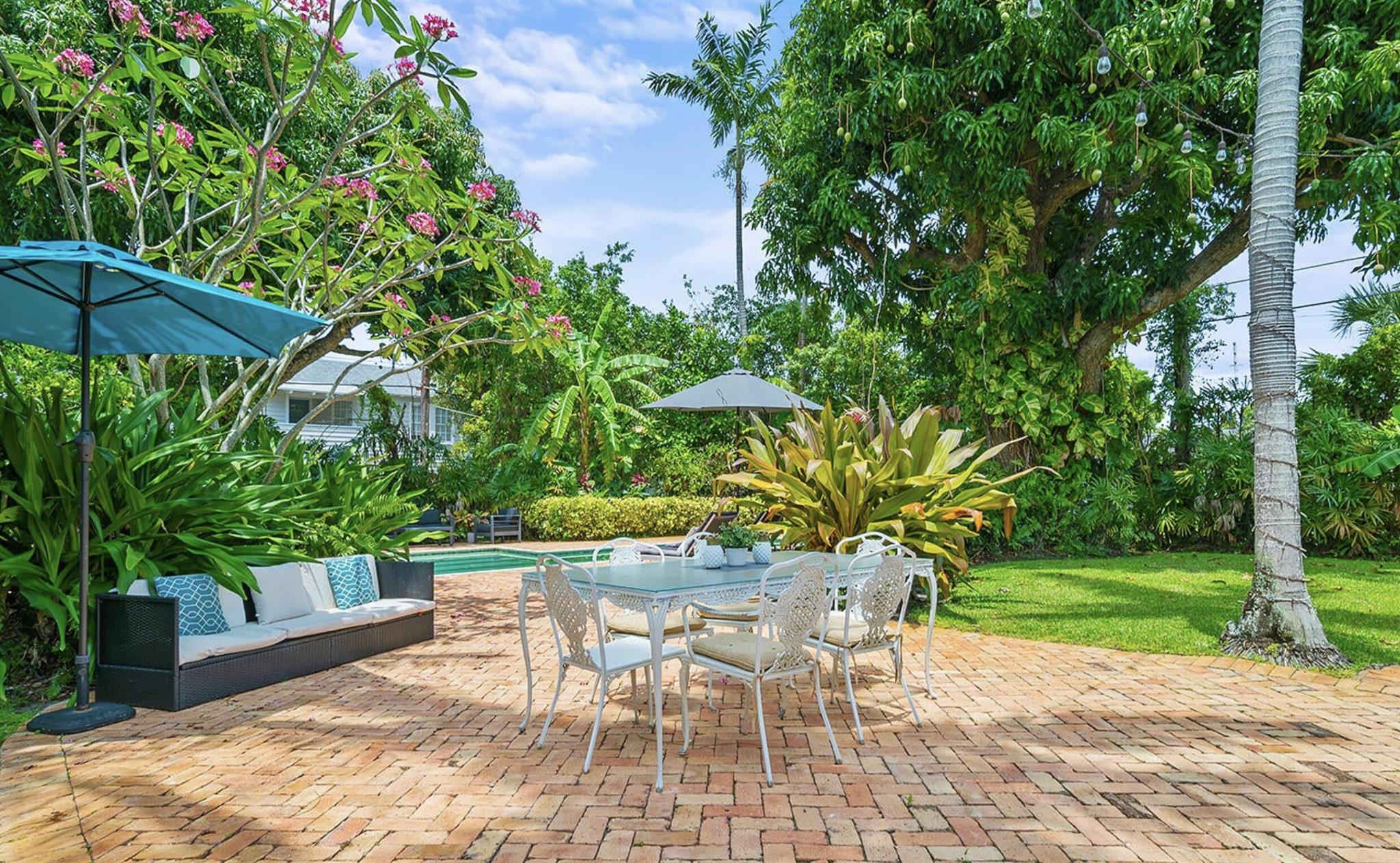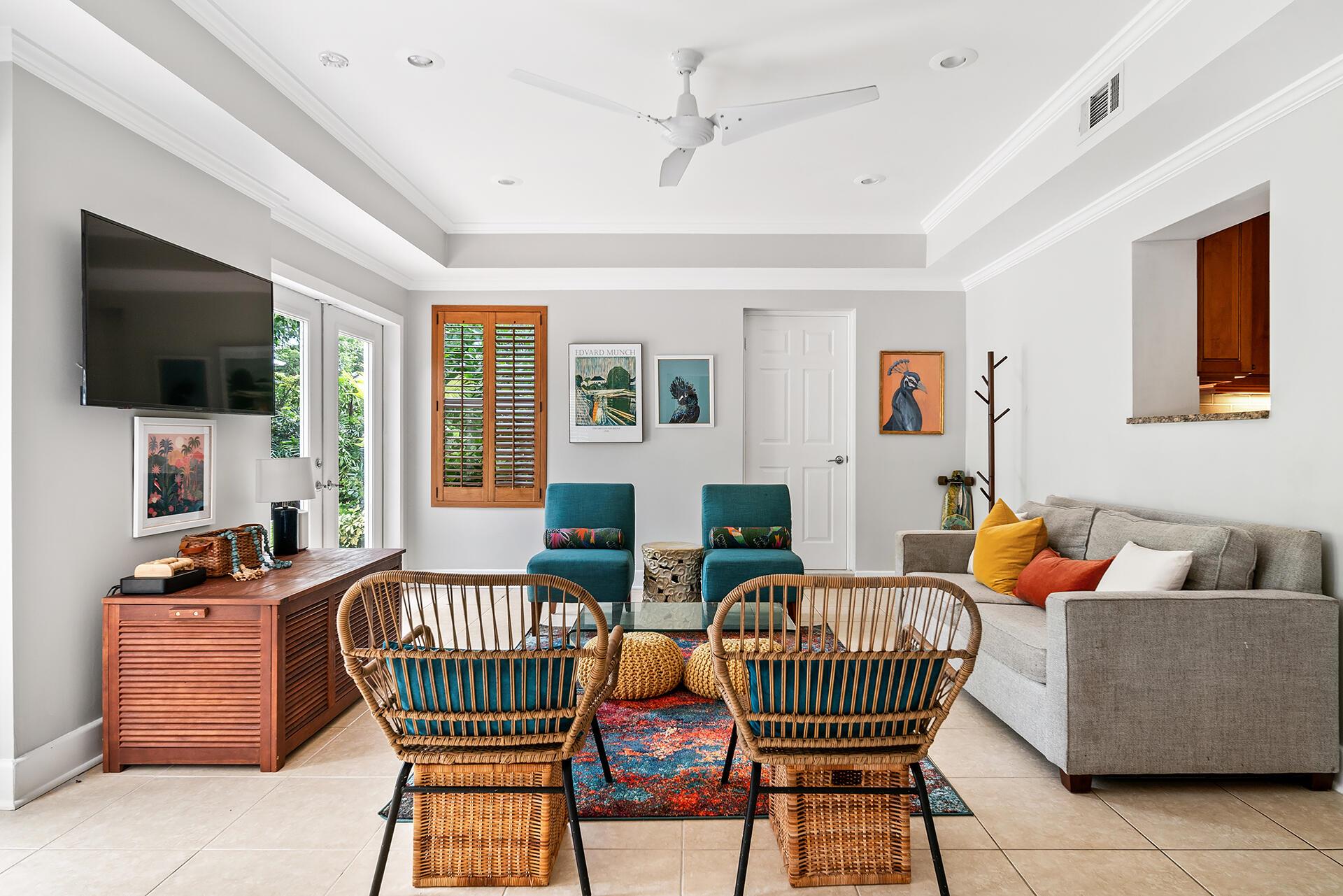 PRICED UNDER APPRAISED VALUE! Craftsman charm meets midcentury modern in prime location! Single level, CBS, pool home only steps to the Intracoastal & West Palm's newest hotspot for shops & dining. Features 4-way split floorplan, 3 huge bedrooms, each with en-suite bath + DEN (or convert to bedroom 4) & 1/2 pool bath. Chef kitchen boasts endless storage, seated island, gas stove & workspace. Crown moulding, louvre shutters, marble baths, flat walls, walk in closets, tray ceiling, wood floors & more. French doors open living room to tropical backyard, an outdoor paradise to relax & entertain. Chicago brick courtyard & 48' heated pool on 1.4 acres of lush gardens, fruit trees & exotic flowers. Fenced. Well-fed sprinklers. Tankless H2O. Roof 2018. AC 2020. NO HOA. QUALIFIED OPPORTUNITY ZONE.