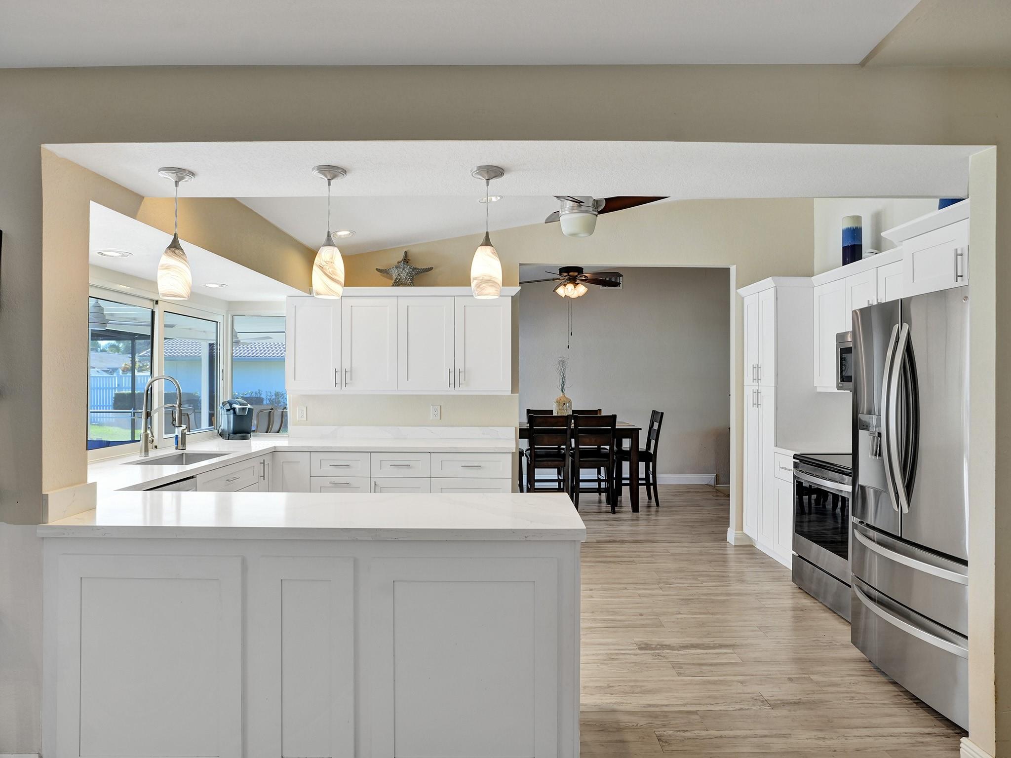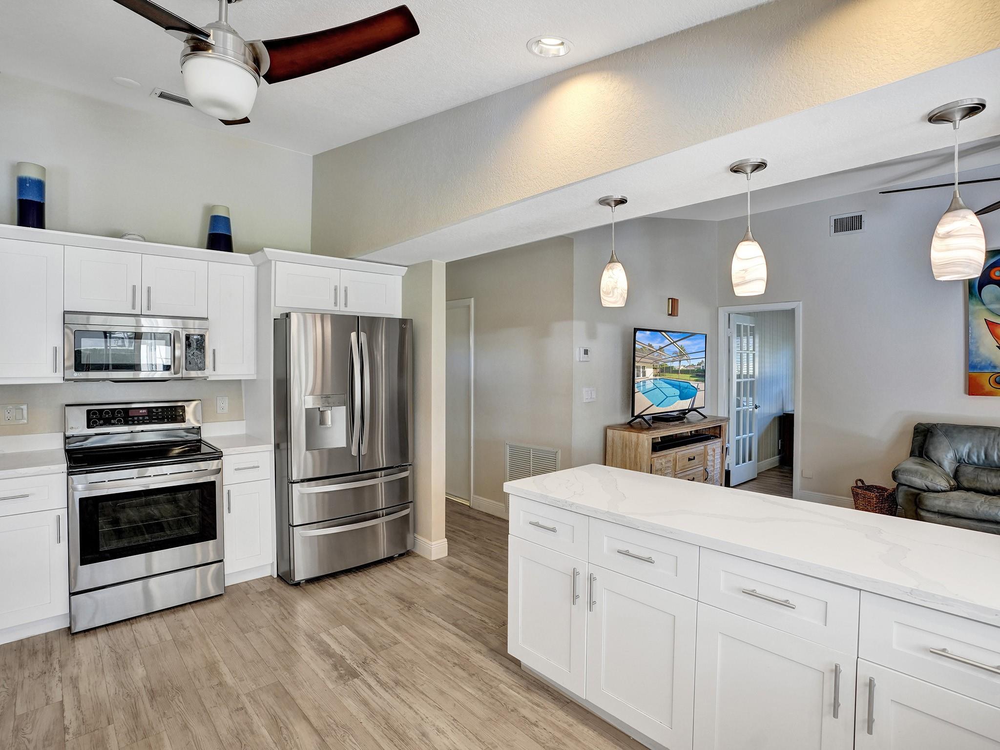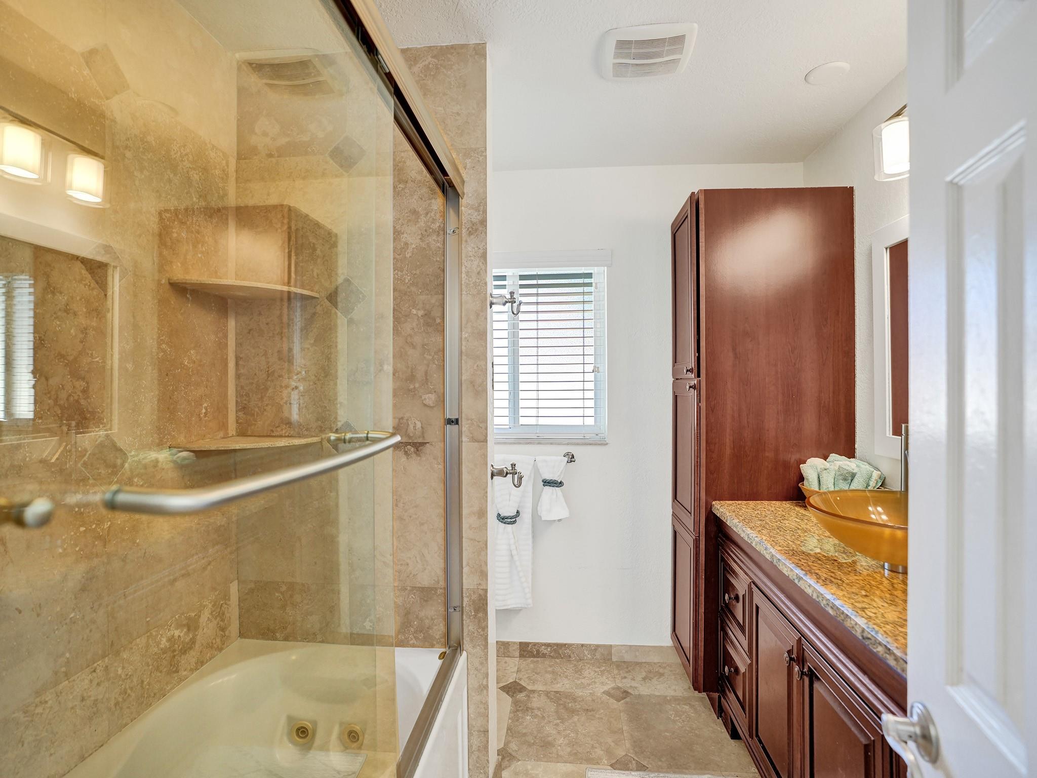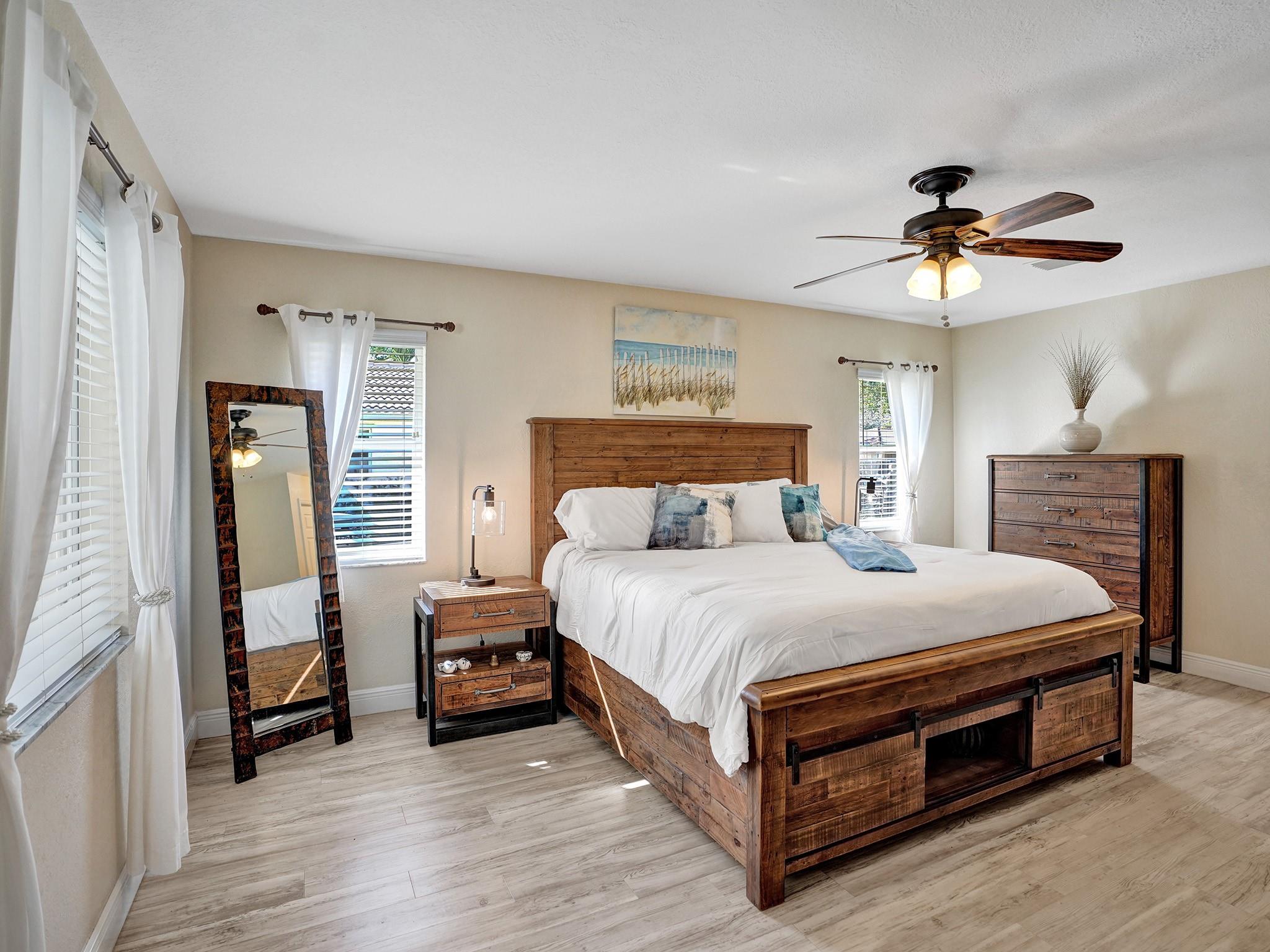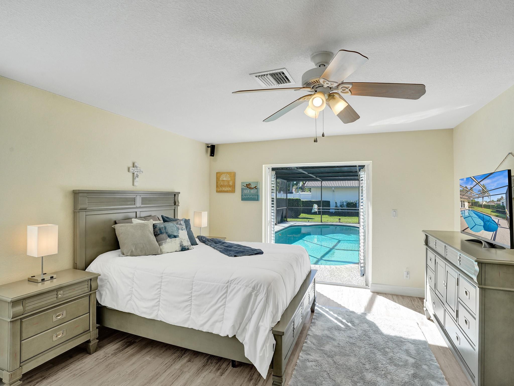 Turn key, modern, updated home in highly desirable Shadow Wood. Over 1/4 acre quiet interior lot. IMPACT WINDOWS & DOORS! 2 master bedrooms. Tile floor throughout the home. Kitchen updated with white shaker cabinets, stainless steel appliances, & quartz countertops. Beautiful views of the pool & backyard from every room. All bathrooms have been updated & every room has plenty of closet space. Screened in, heated, salt water pool & XL covered patio are great for enjoying your backyard with the family & pets. Master bedroom features an oversized walk-in closet. Roof 2004, AC 2013, water heater 2019. Freshly painted & new landscaping. Shed in backyard. Whole house water softener. Home has been meticulously maintained & is ready for it's new family! All furniture can be included in the sale!