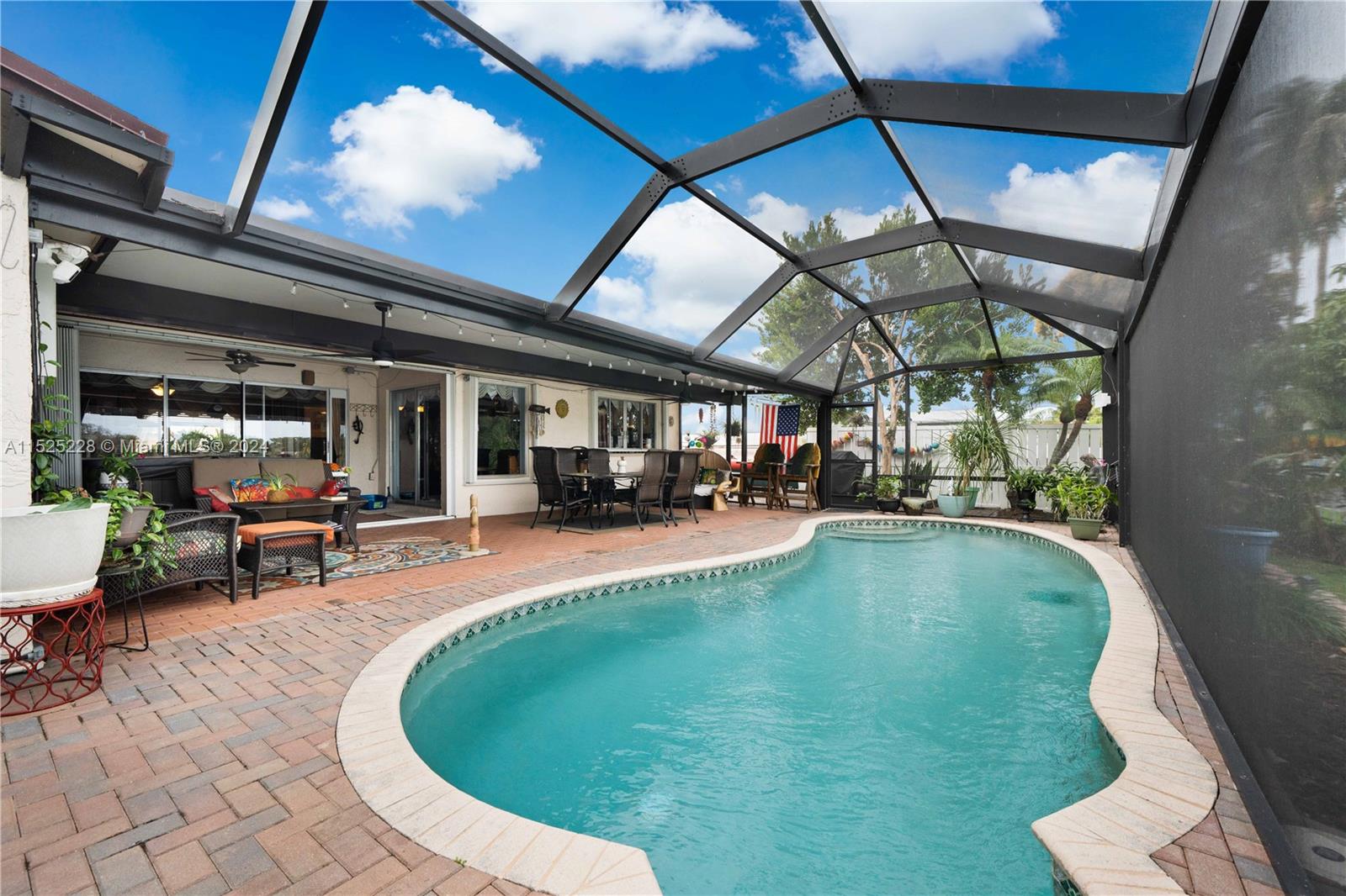 Enjoy gorgeous lake views from this lovely one story 3/2, 2 car garage home. With a well laid out living area, saltwater pool, and separate hot tub – this home is truly a delight! Features include an open airy floor plan, paver driveway/pool deck area, new saltwater pool system, screened pool enclosure, gardeners shed, fenced yard, indoor laundry, kitchen w/granite counters, SS appliances and island seating, built-in custom closets, updated primary bath, imported sink in 2nd bath, crown molding, impact front windows, hurricane shutters on other windows and new garage door. No HOA fees and boats are allowed in the driveway. With the spectacular lake views and central Pines location, this is the perfect place to call home!