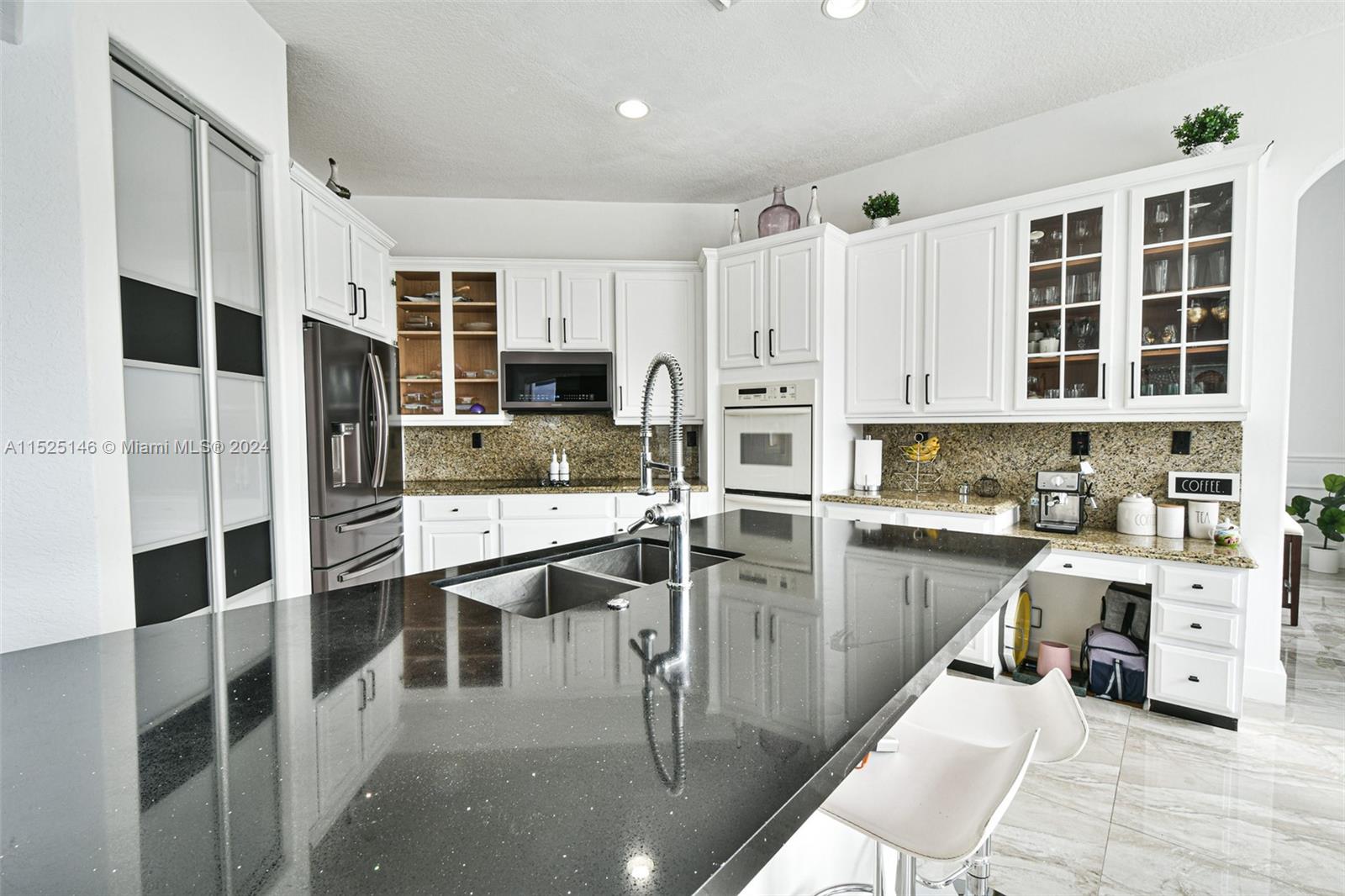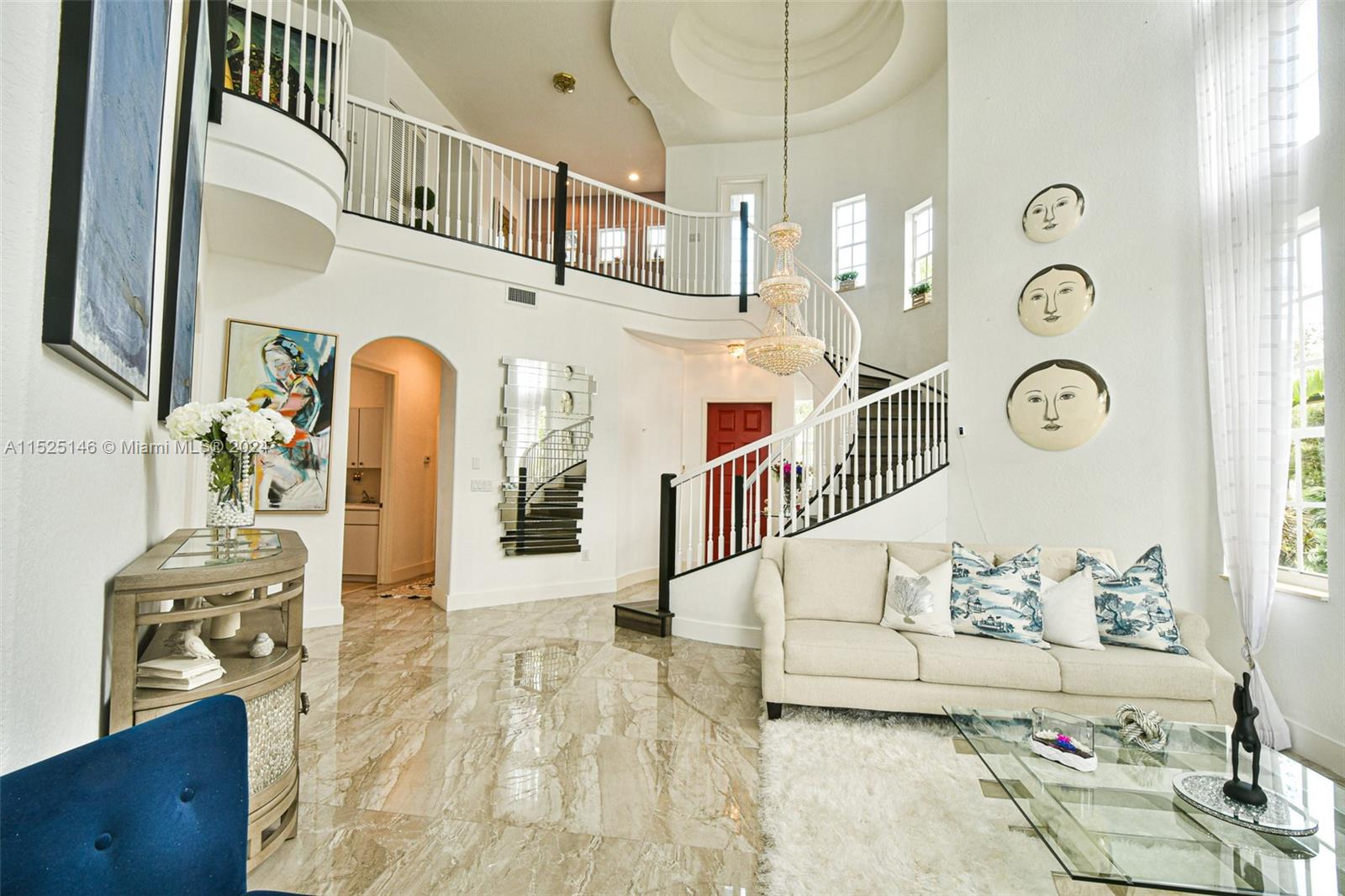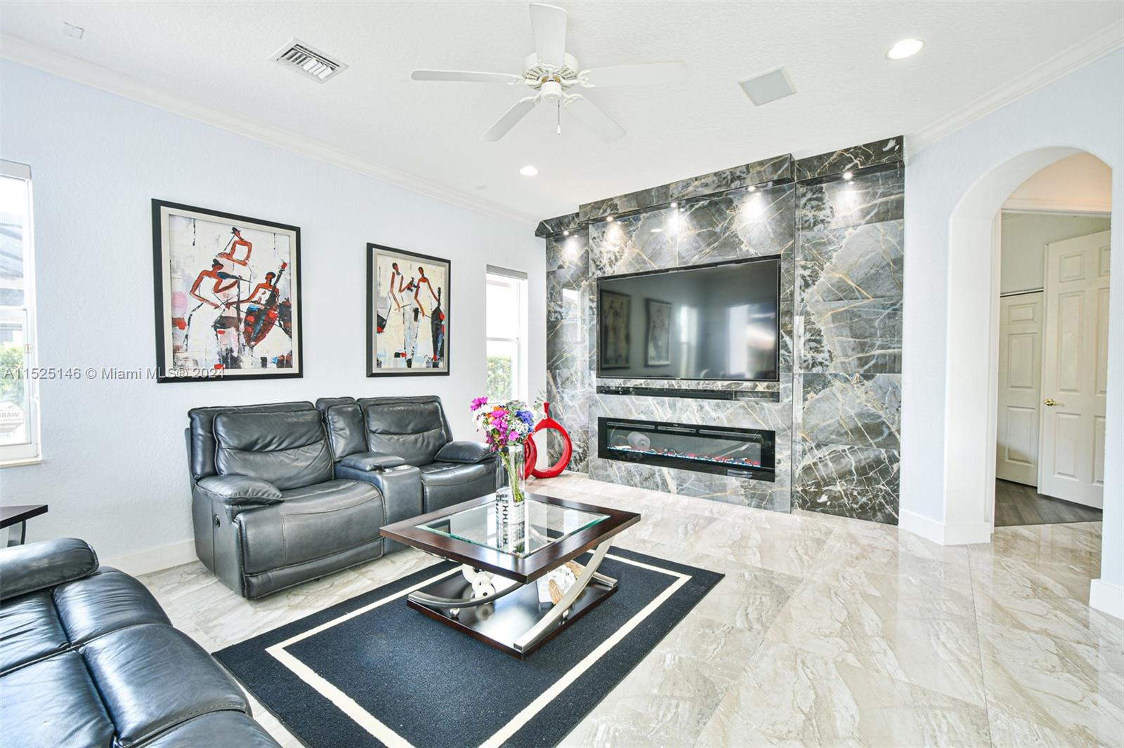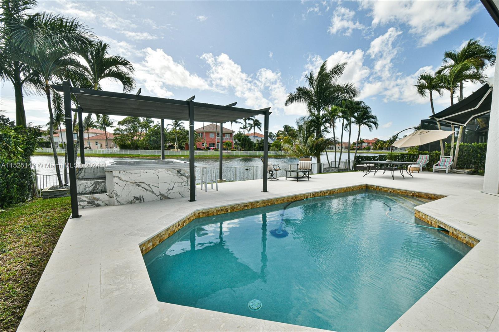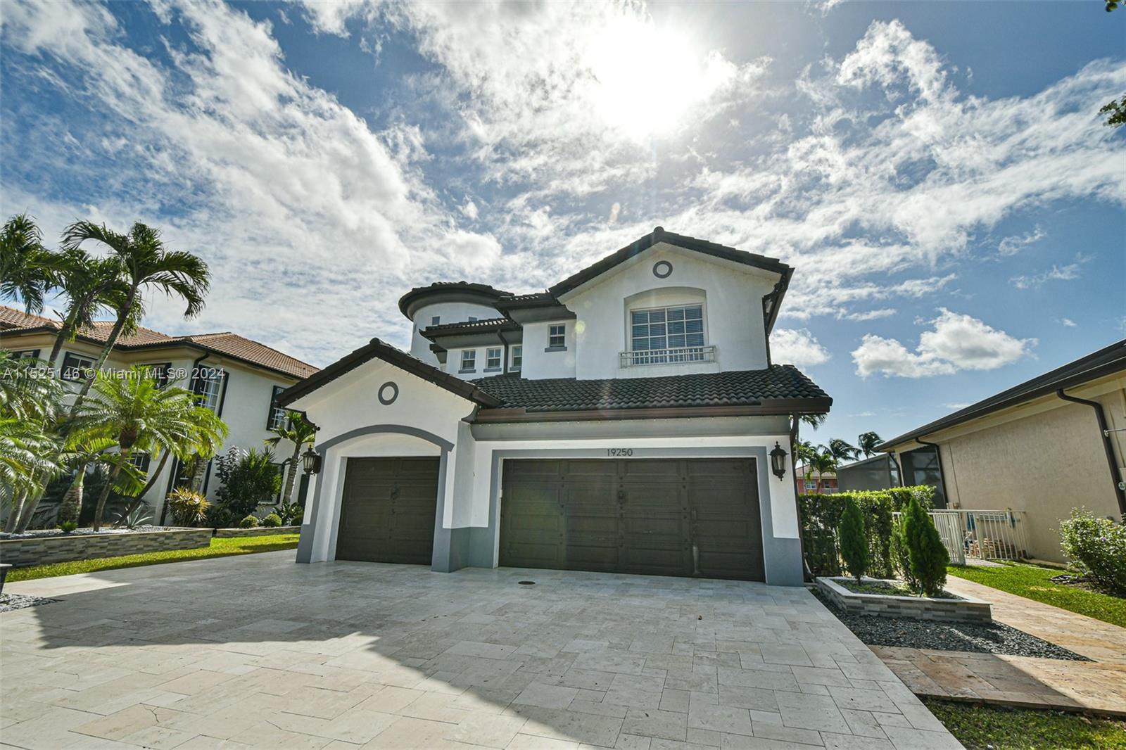 Price to sell now! Spectacular Mediterranean-style home in Sunset Lakes- Grand Isles! Lakefront 4 Bedrooms 3.5 Bathrooms This home is sure to impress upon view. High vaulted ceilings, formal living and dining room, large kitchen with double oven and granite countertops and quartz island. Awesome family room perfect for entertaining. The home features a full 3-car garage mesmerizing views of the lake with a spacious seating area by the pool.