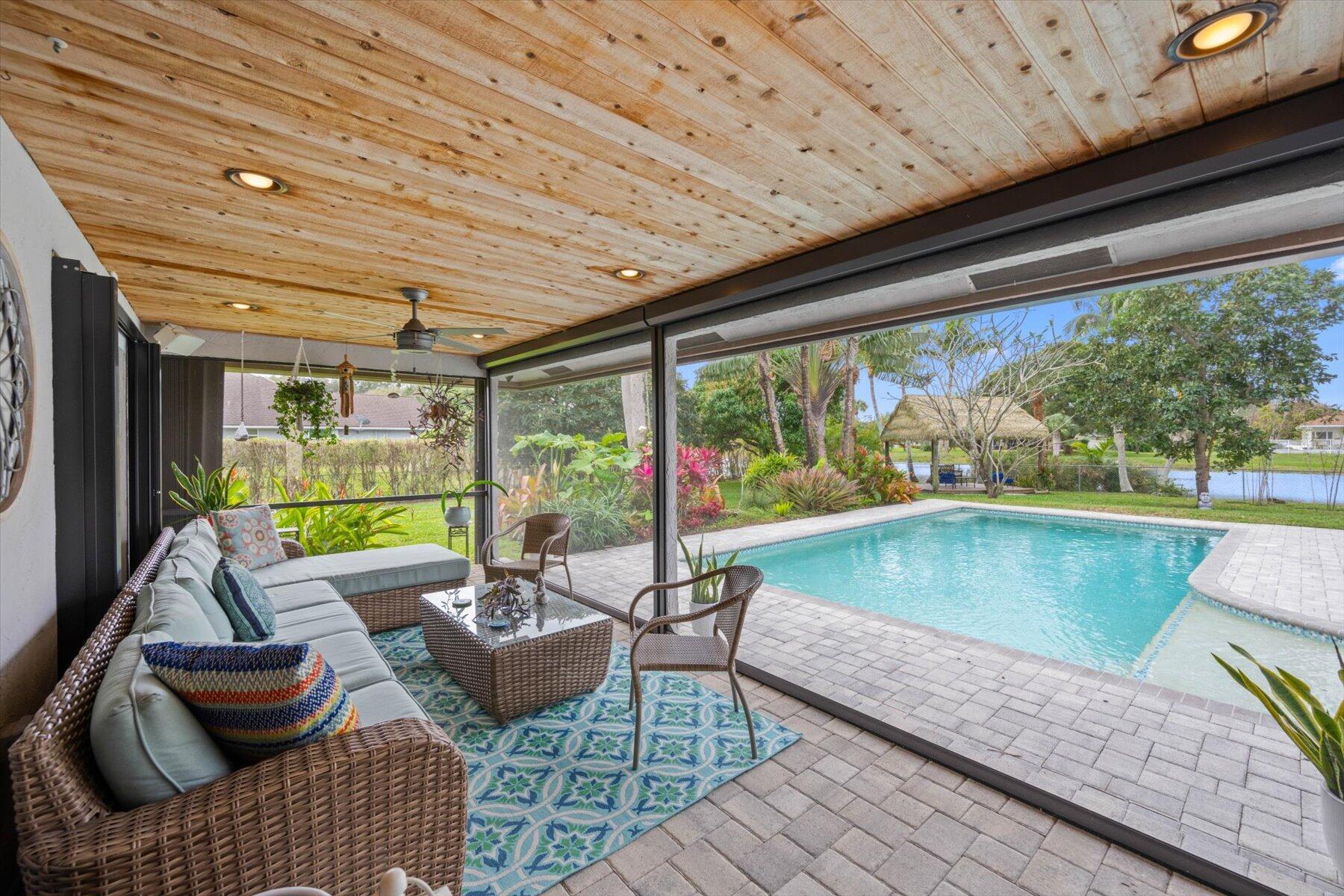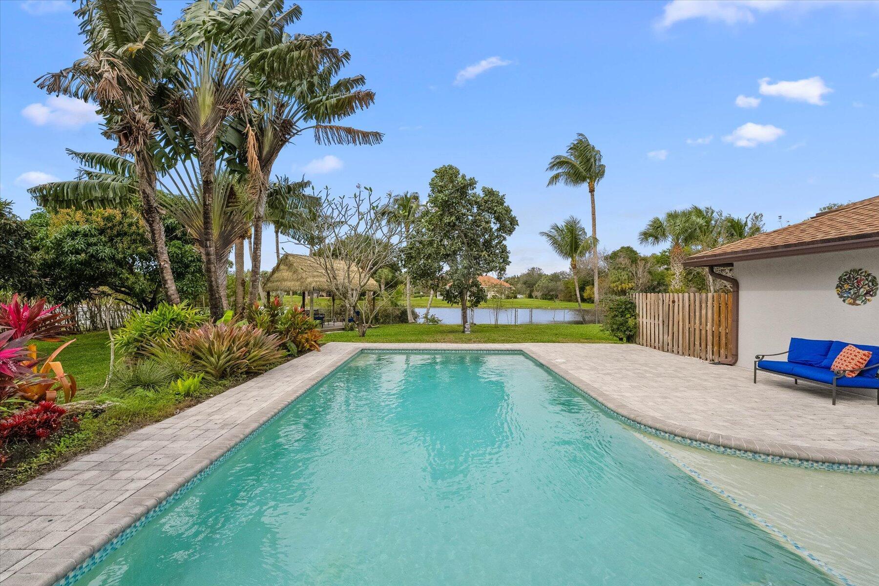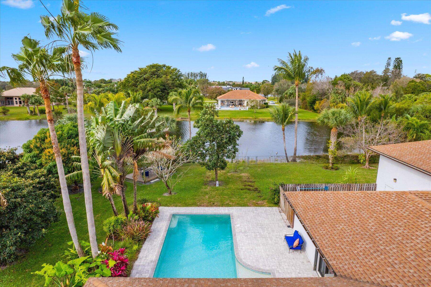 Welcome to your stunning lakeside retreat! Nestled on 1.19 acres of picturesque land, this immaculately renovated 2338 SF, 4 BR & 4 BTH home offers breathtaking views of the serene lake & gorgeous property. Step inside to discover the ultimate blend of luxury & functionality. One of many highlights of this home is the remarkable 638 SF bonus room, which offers endless possibilities for entertainment, recreation, & relaxation and makes the total square footage of the home 2976 SF. Step outside to experience resort-style living at its finest w/ a screened-in patio, recently renovated pool, 11' X 16' tiki hut, fruit trees & beautifully landscaped & fenced-in yard. Be the envy of the neighborhood with the 2 story-attached garage to be used to store your vehicles/RV/boat or to use as a gym