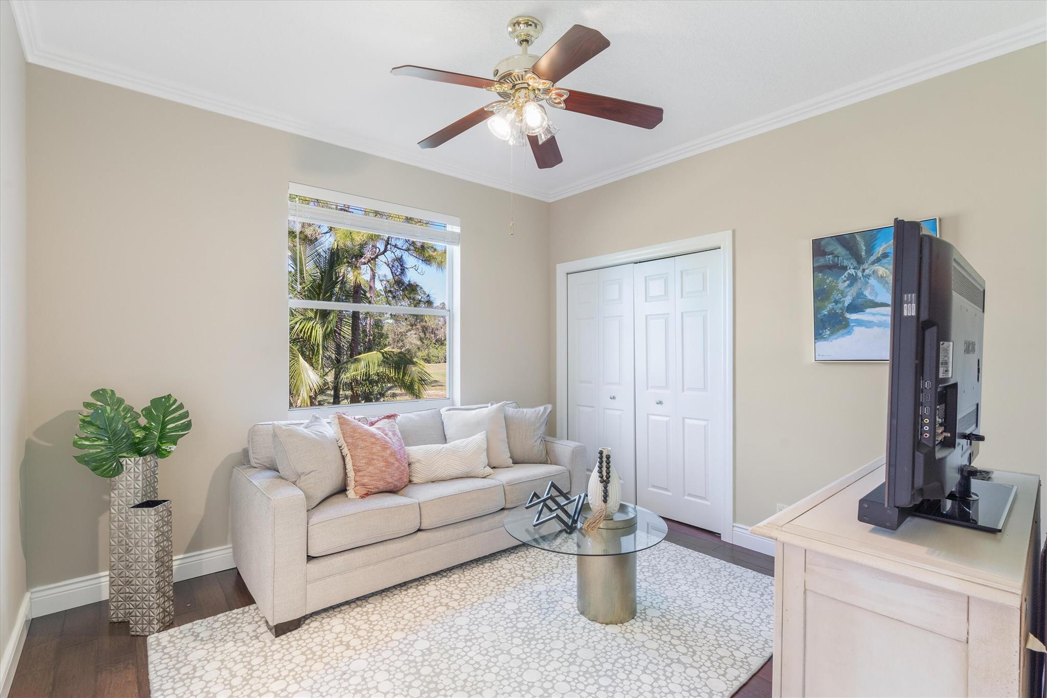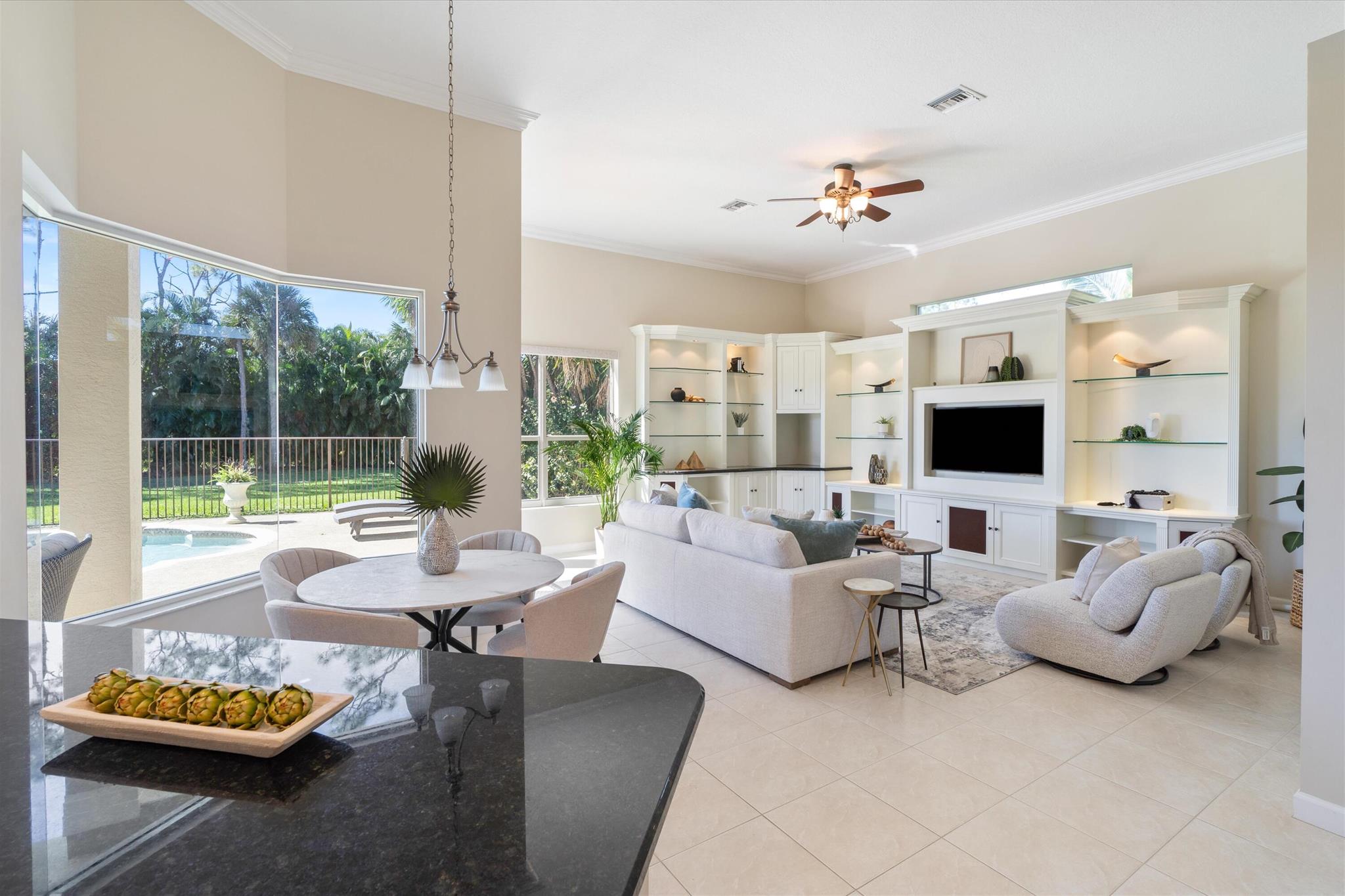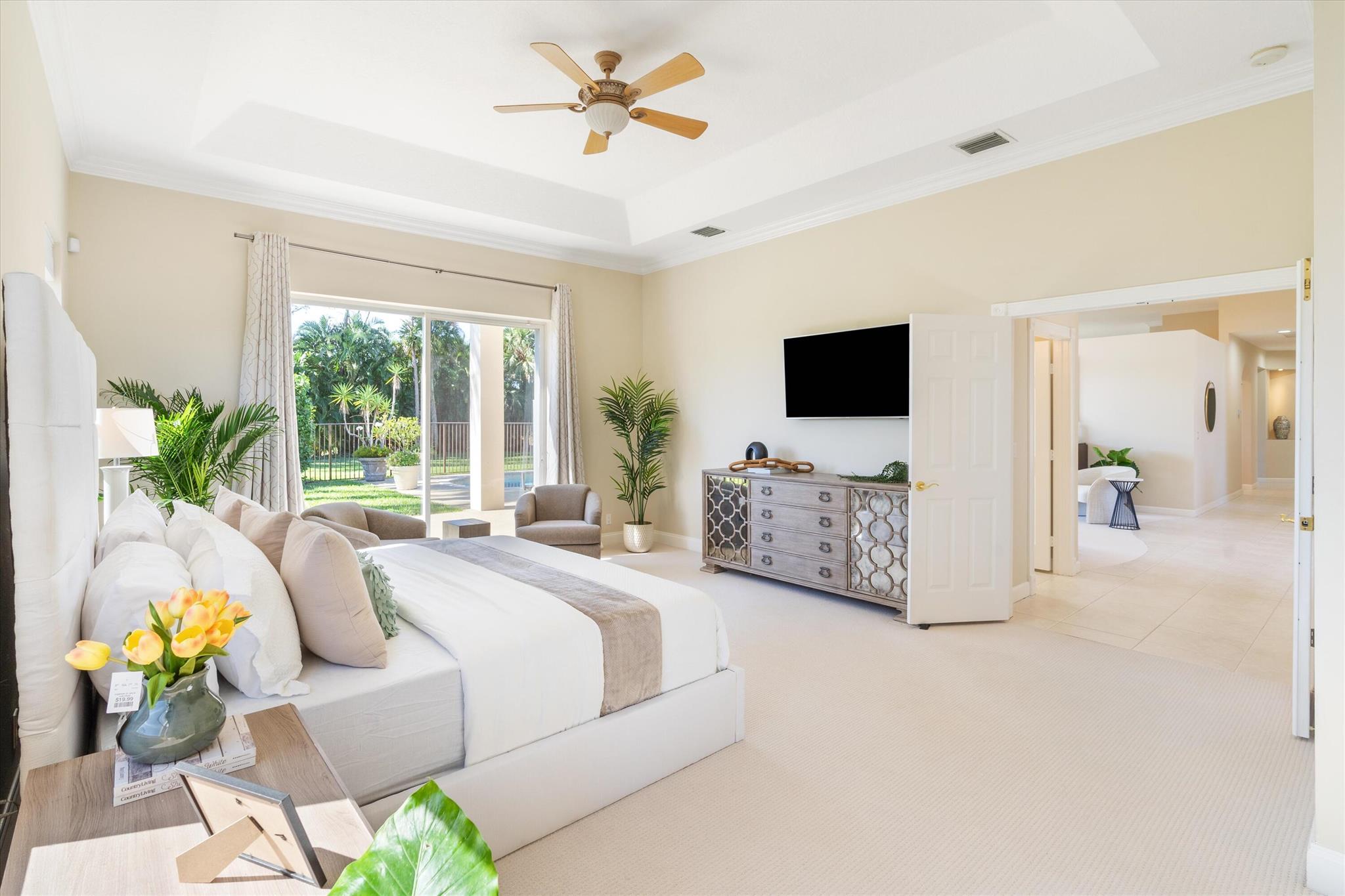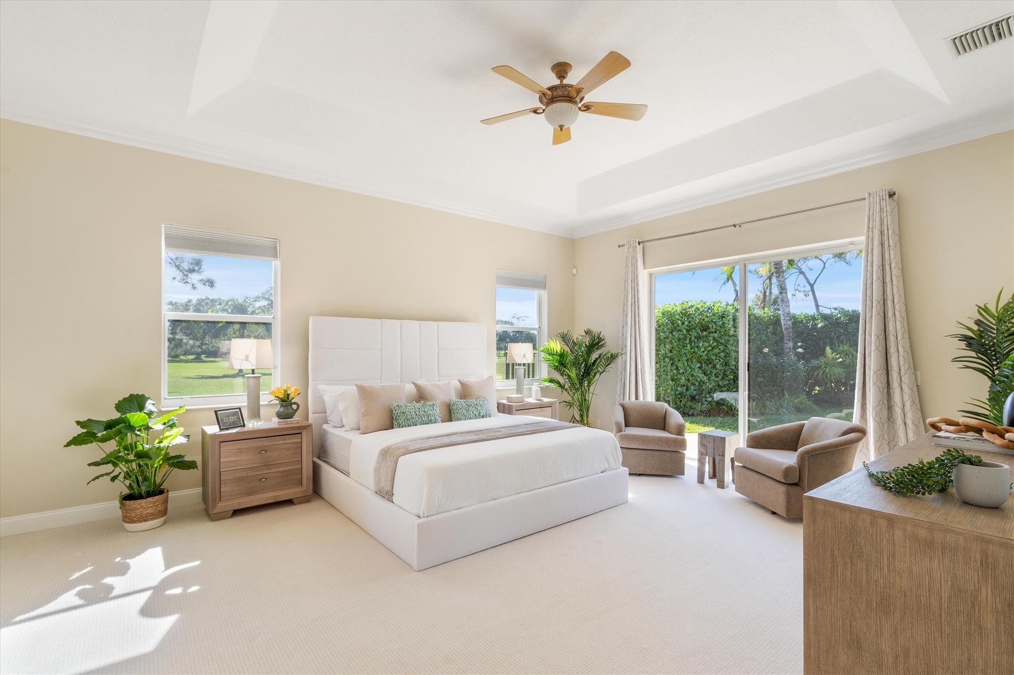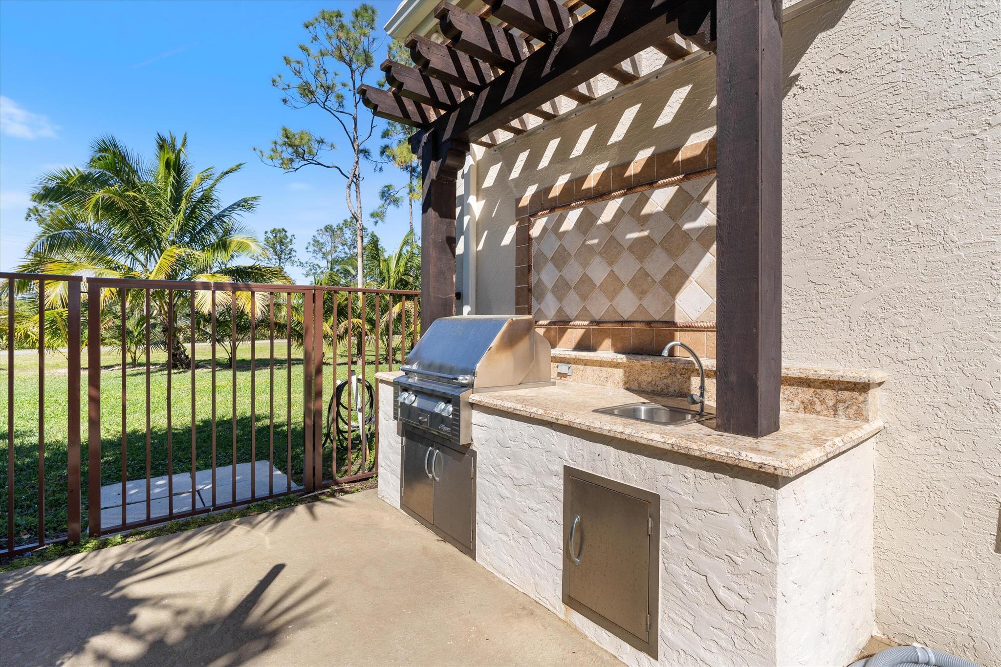 This stunning 4 bedroom, 4 bath home w/private office offers the perfect split floor plan. Ideal for Multi-generational families and remote workers! Soaring ceilings, sun filled rooms & gorgeous lake & golf views abound. Serene 1 acre yard, private pool & outdoor kitchen create a perfect space for relaxing, outdoor dining, gardening, or working pool side. Nestled within the stunning gated community of Bayhill Estates, just 7 miles West of the Turnpike. Insurance friendly with 2020 roof, newer 2022 pool pump & full hurricane protection! A golf membership is available through PGA National (but not required). Just 25 minutes to PBI International & minutes to incredible dining & shopping options in Palm Beach Gardens. Don't miss this incredible opportunity.