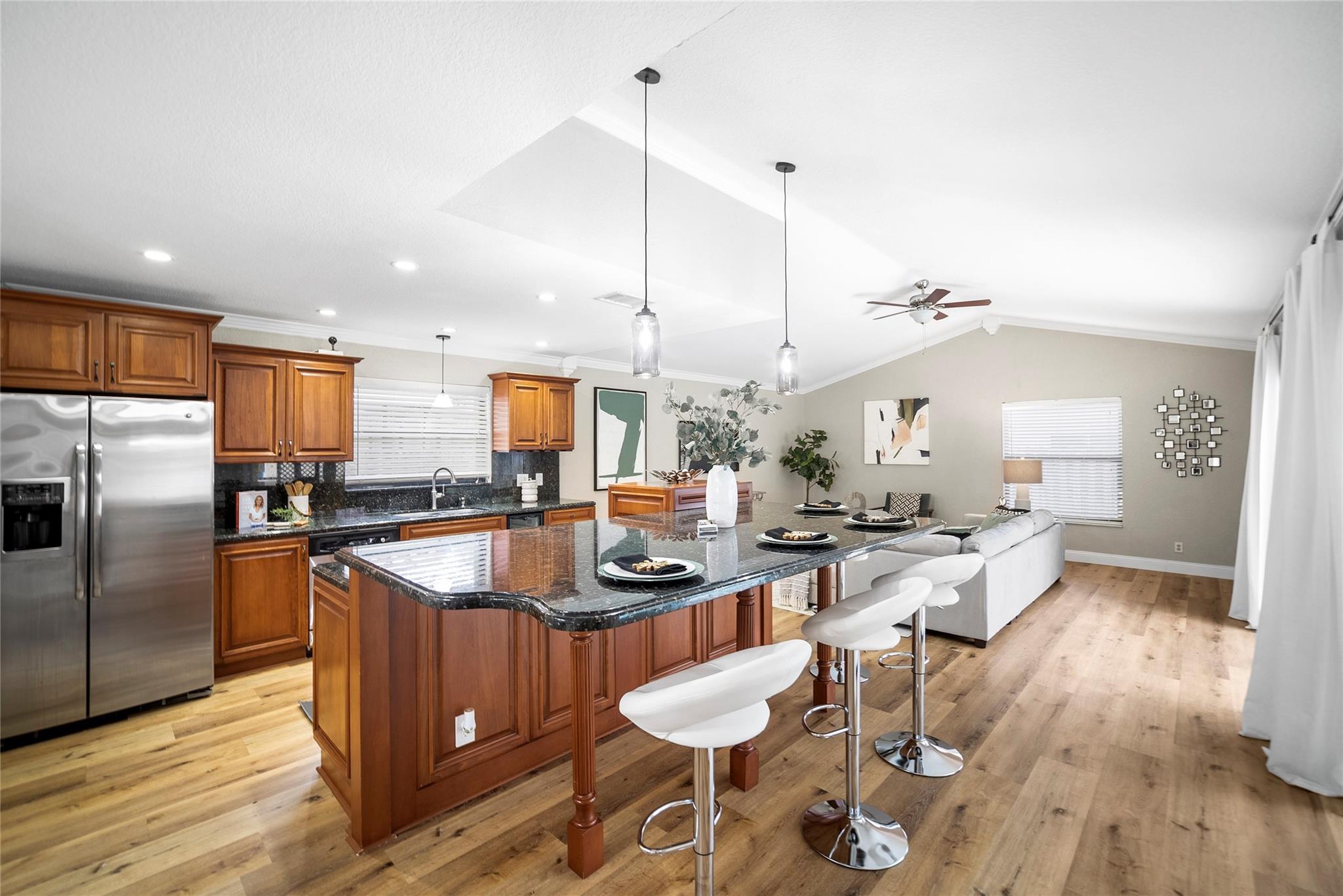 Over $75K in Upgrades! All Impact Windows, Accordion Shutters on Silding Glass Doors, Solar Heated Screen-In Pool, New Hurricane Impact Front Door, Cabana Door & Hurricane Rated Garage Door, Buyer Will Get Full Insurance Credits, New Luxury Vinyl Wood Floors Throughout Whole House, Brand New Washer & Dryer, New Energy Efficient Water Heater, Updated Gourmet Kitchen w/ Huge Center Island, Stainless Steel Appliances, Granite Countertops, Built In Wine Refrigerator, AC is 2017, Custom Barn Yard Door in Primary Bedroom, Vaulted Ceilings, Crown Molding, Neutral Colors, Long Paved Driveway, Beautiful Curb Appeal, Built In Cabinetry in Laundry Room for Extra Storage, Safe Racks in Garage, New Fans and Fixtures, Close to Shopping, Restaurants, The Turnpike, Walking Distance to Schools, Low HOA!
