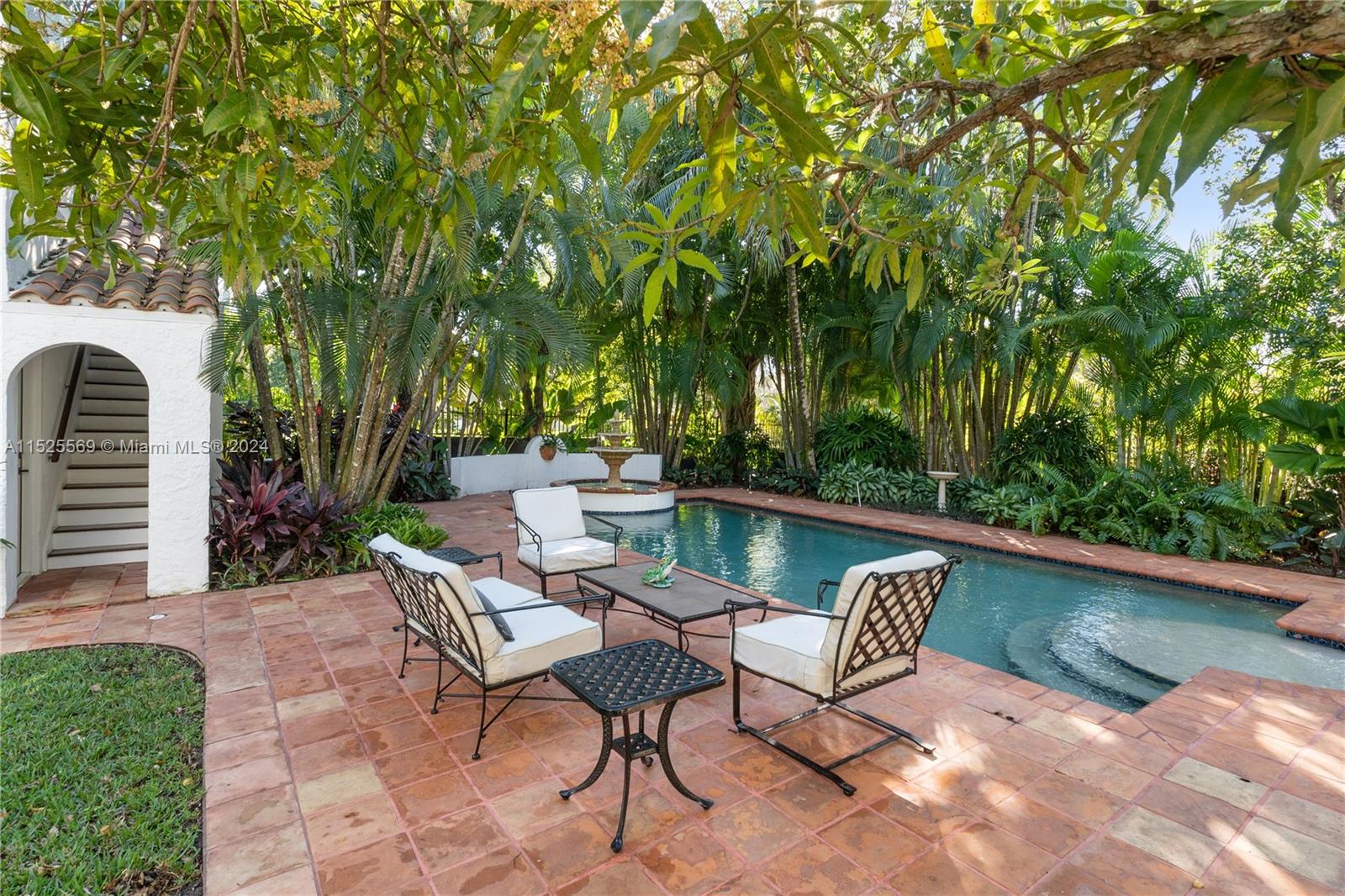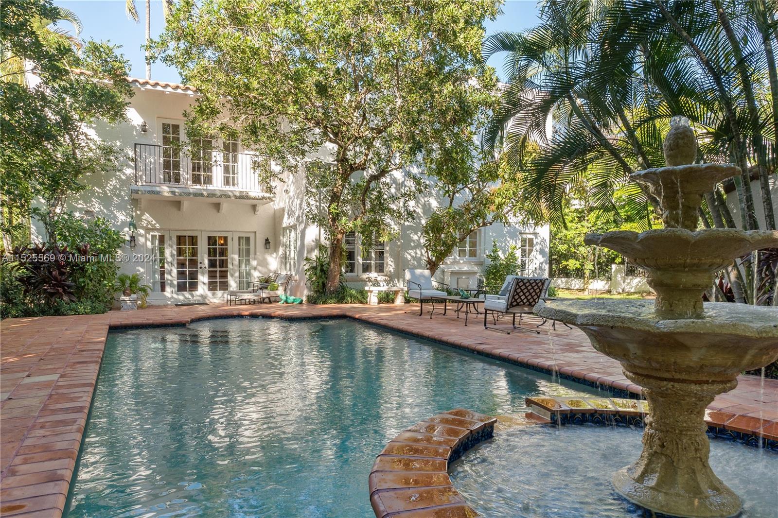 Embrace this exclusive Coral Gables gem, a majestic home designed by George Fink & meticulously renovated. With impact windows & doors, & a 1-year-old roof, this residence is move-in ready. As you enter, abundant natural light, 22Ft vaulted ceilings, & beautiful French doors greet you, leading to a spacious kitchen & breakfast room overlooking the lush garden & inviting pool. The main house features a fireplace, large family room, formal dining room, & stunning tile & wood floors. Walk up the grand staircase to 3 generous bedrooms with a primary bdr open balcony. A second cottage behind the main house is fully renovated with its own kitchen, bedroom, office, bathroom, outdoor shower, & 2 car garage. Close to Salvadore Park, ideal for Pickleball & Tennis enthusiasts, & Biltmore golf course.