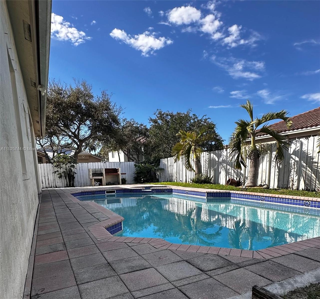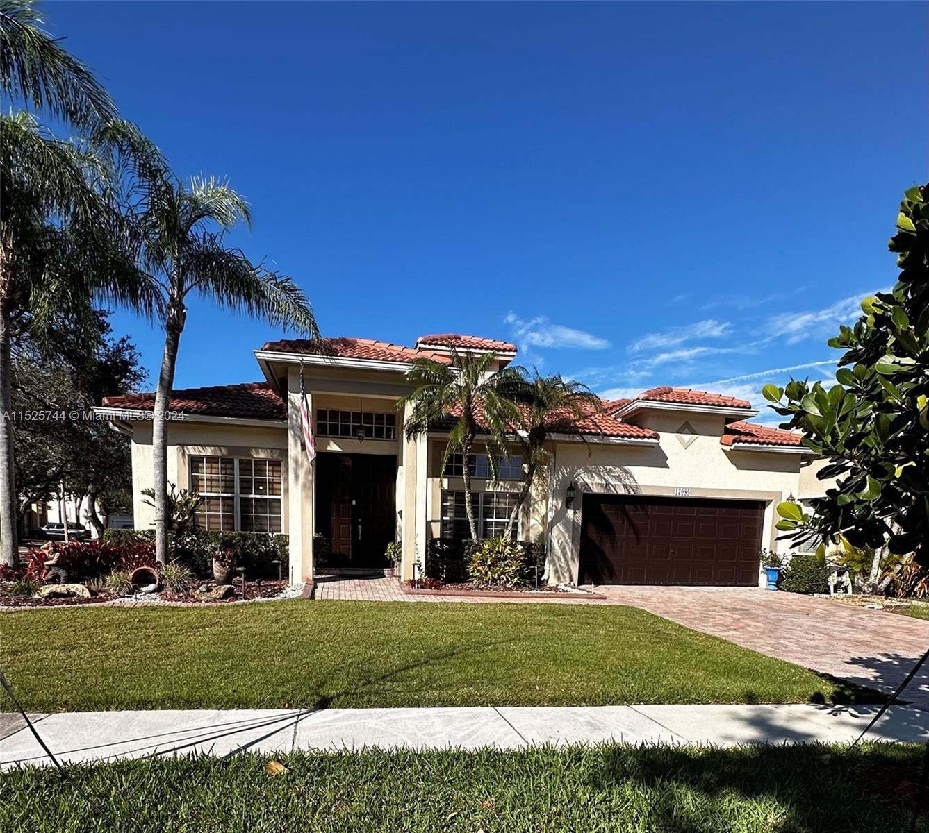 Stunning single family home, with pool, newer appliances, new wood laminate floors with formal dining room. Vaulted ceilings, spacious area for entertaining. Large patio with pool. HOA includes (cable, alarm, grass, water for irrigation/maint, 24hr security patrol/ man gated entry. Clubhouse with 3 pools, 4 tennis, gym, basket & volleyball court, saunas, soccer field and more! Mid point Miami-Ft. Lauderdale. Don't pass up this opportunity.