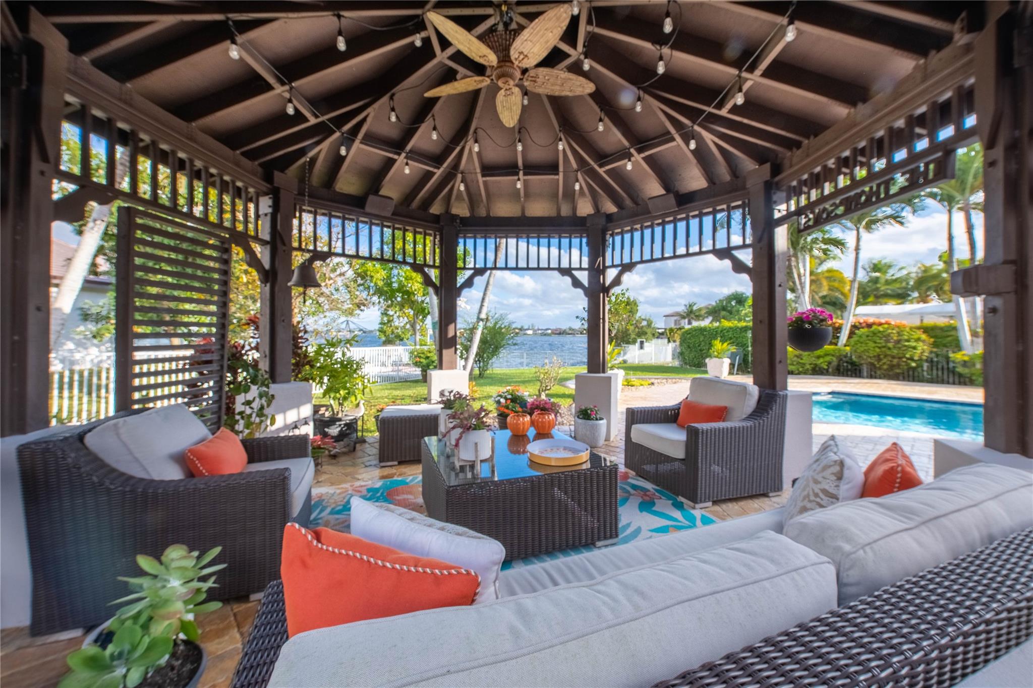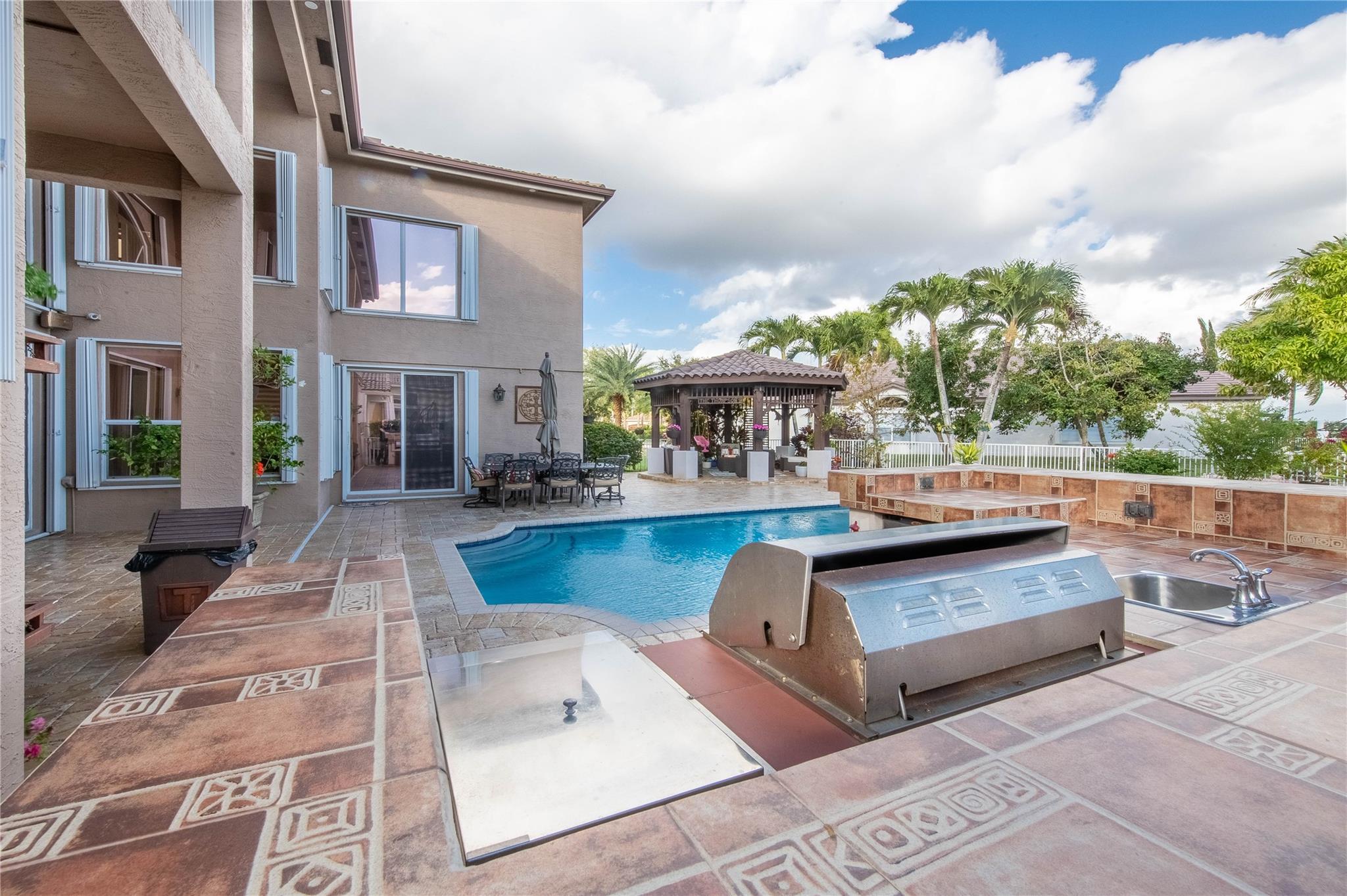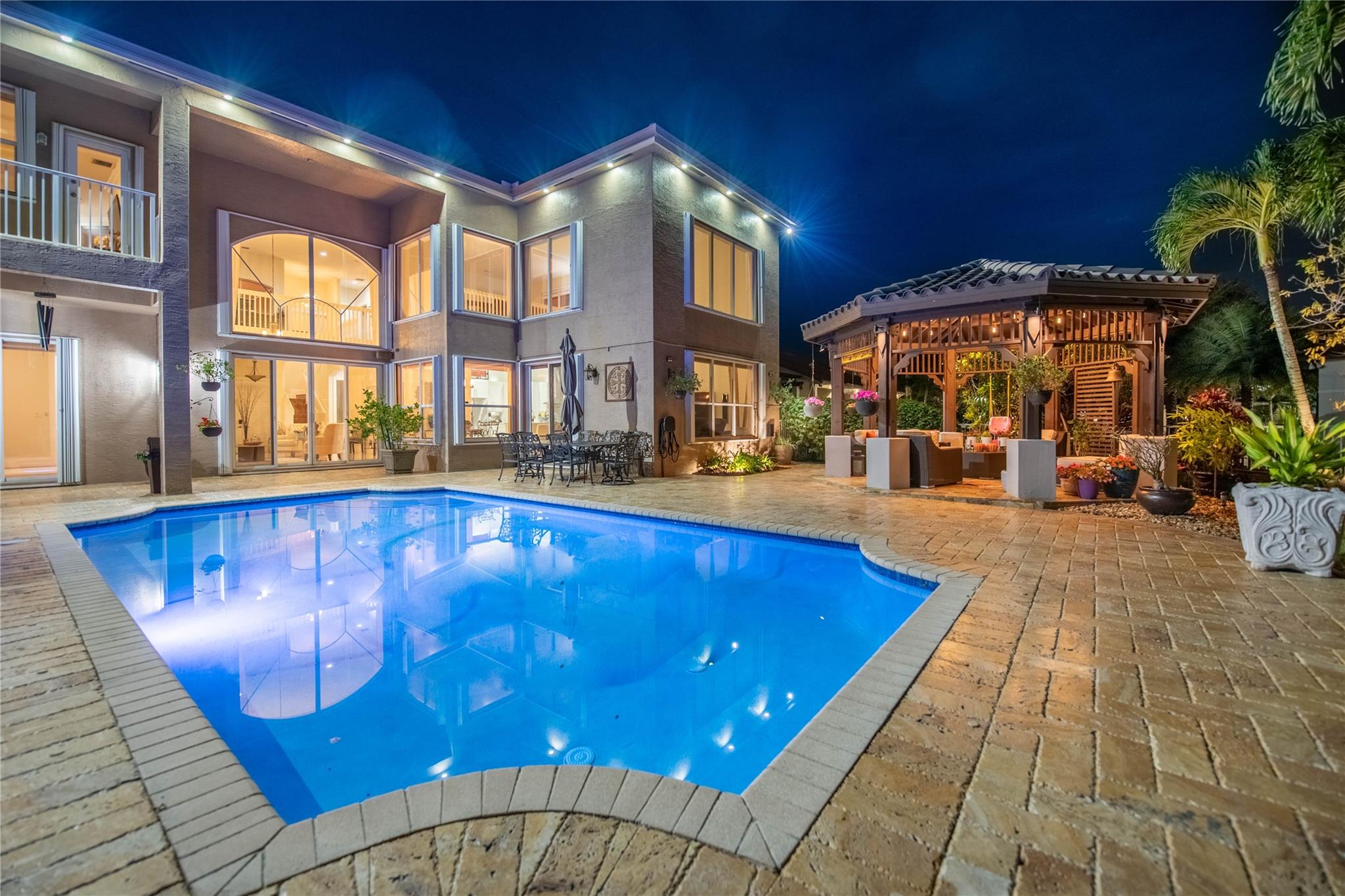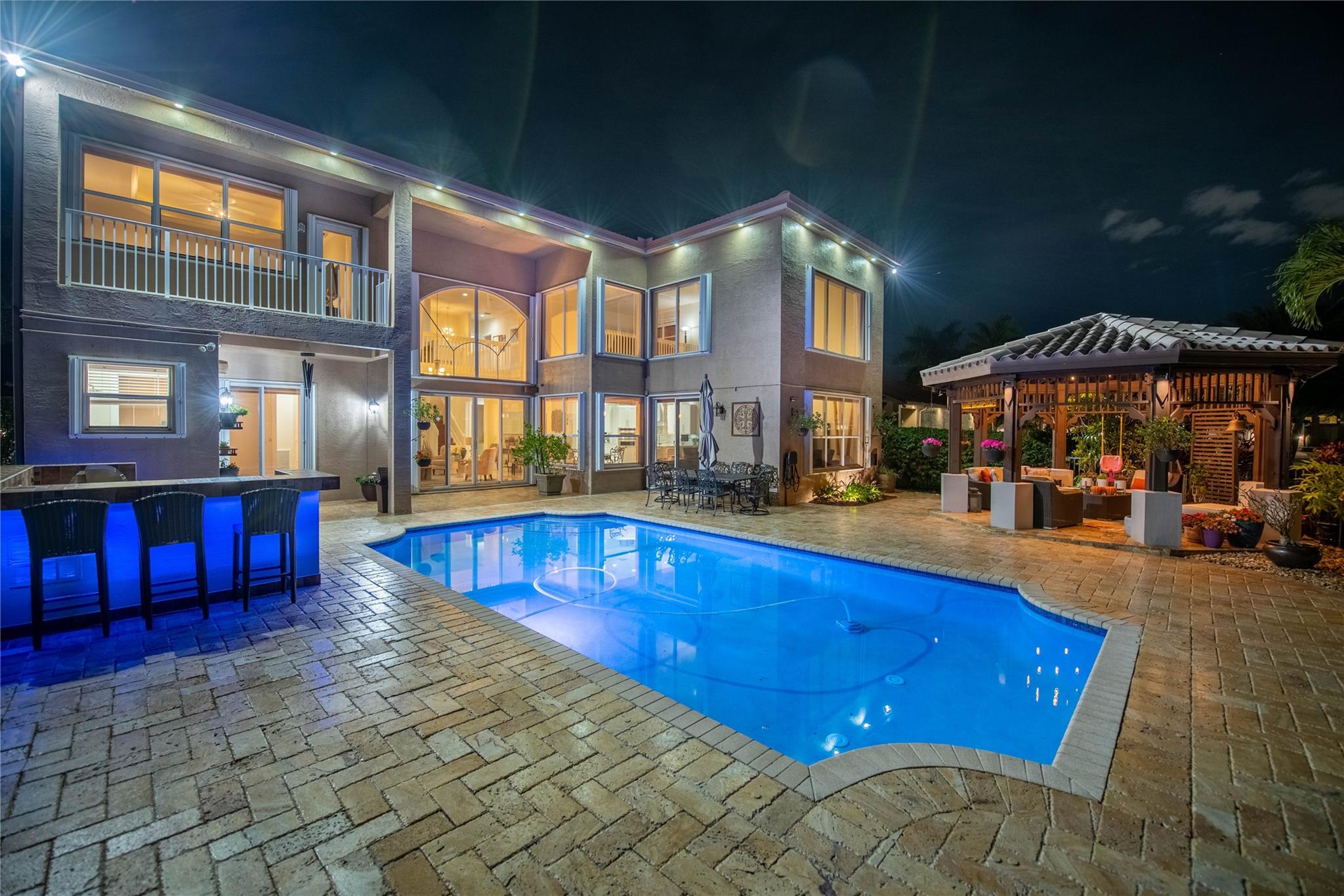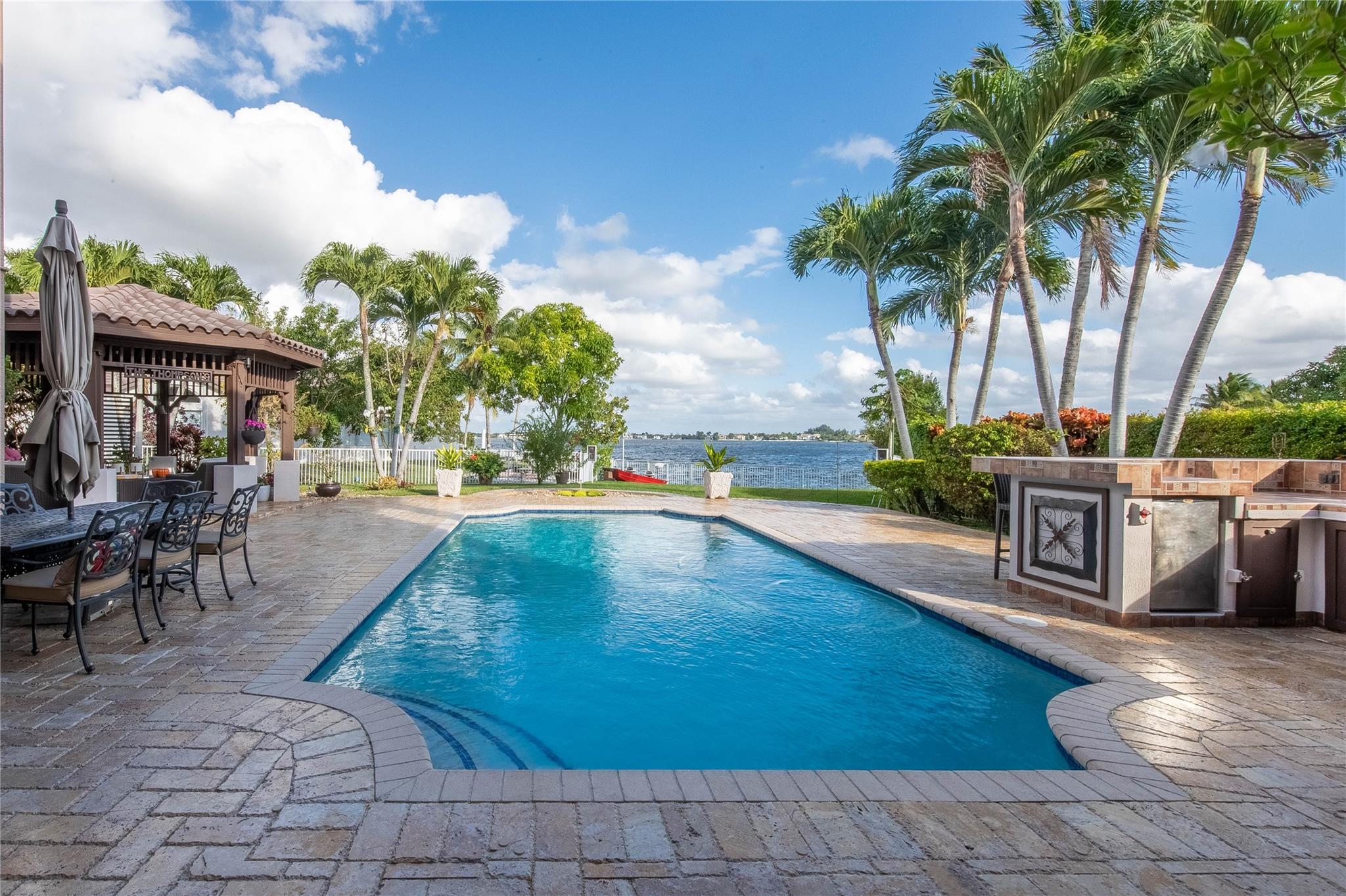 Spectacular water front and completely remodeled house . New and modern kitchen with Kitchen Aid appliances, quartz countertops, neutral porcelain floors on the first floor and Brazilian Cherry wood on the second floor, new bathrooms, freshly painted, new A/C units , accordion shutters .one bedroom downstairs with a private bathroom and office. Enjoy the resort style backyard with a breathtaking lake view,pool, travertine pavers, a custom made wood gazebo, outdoor kitchen island , lush landscaping with surround sound throughout the patio.