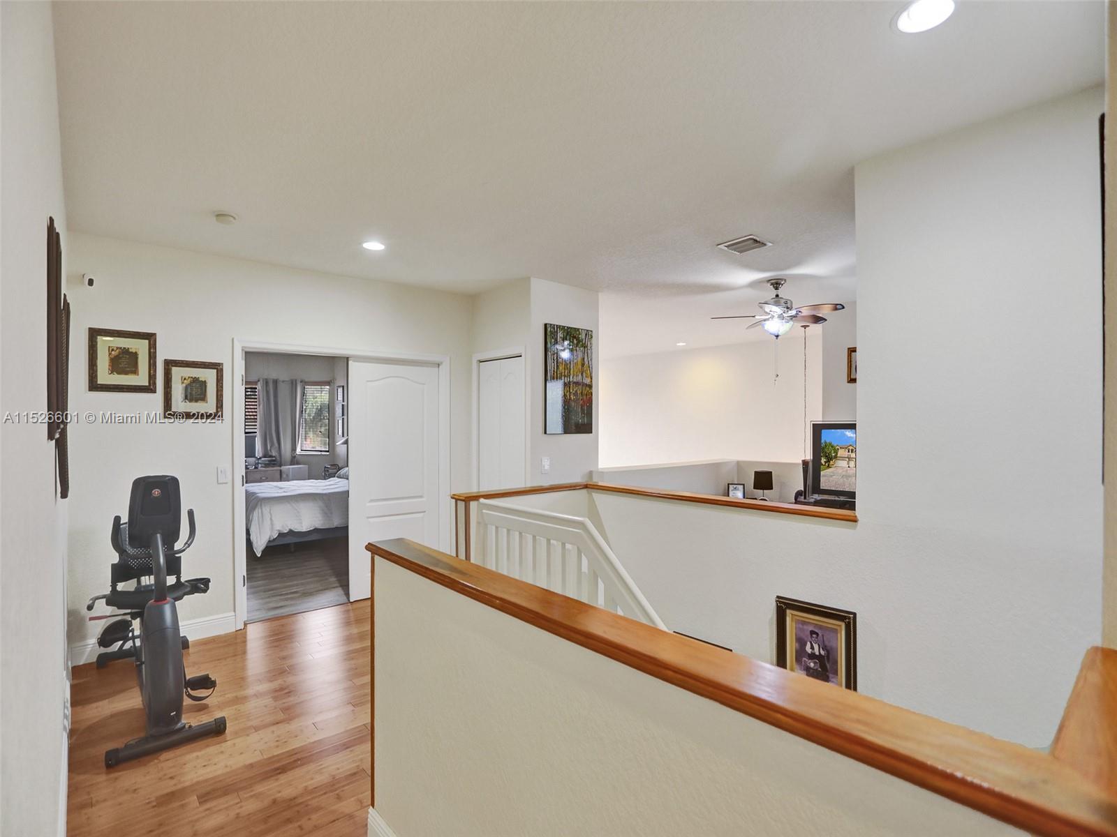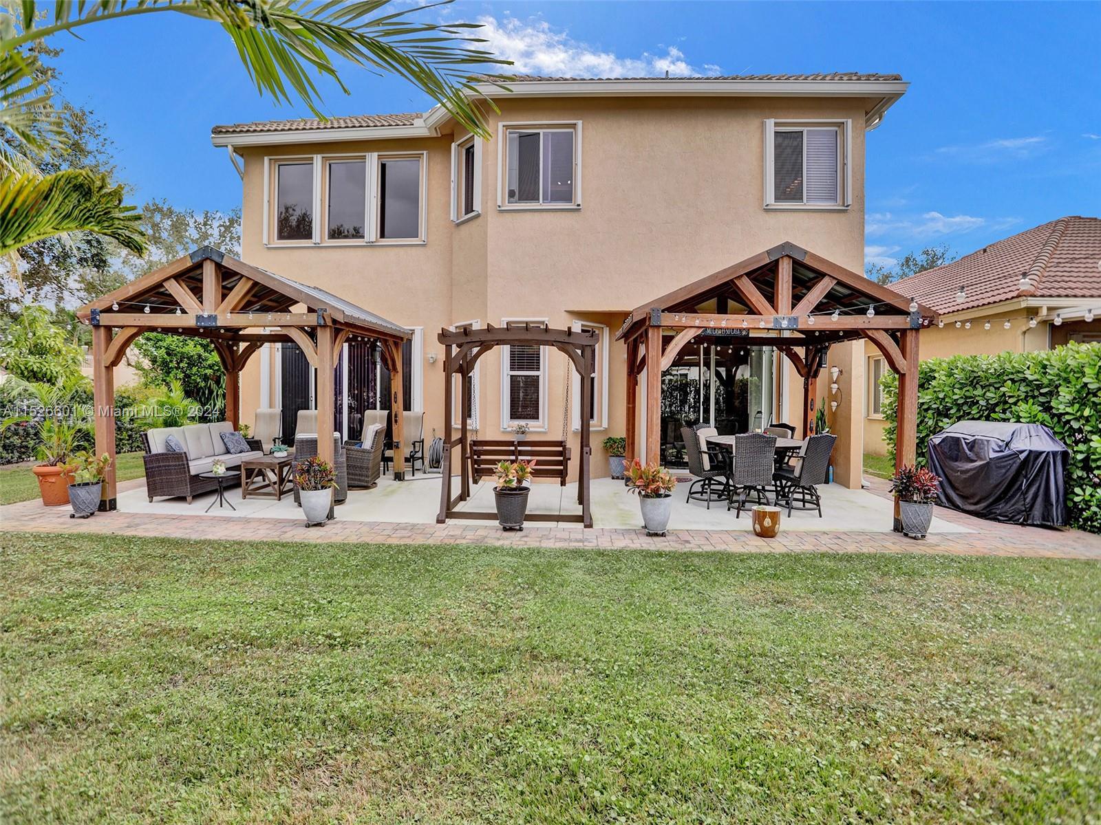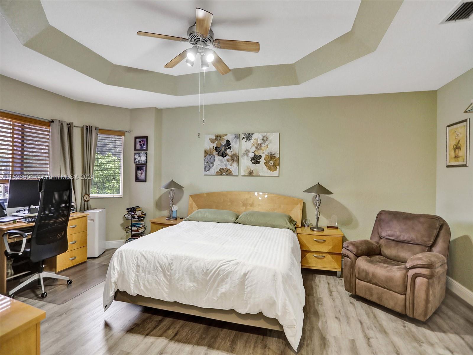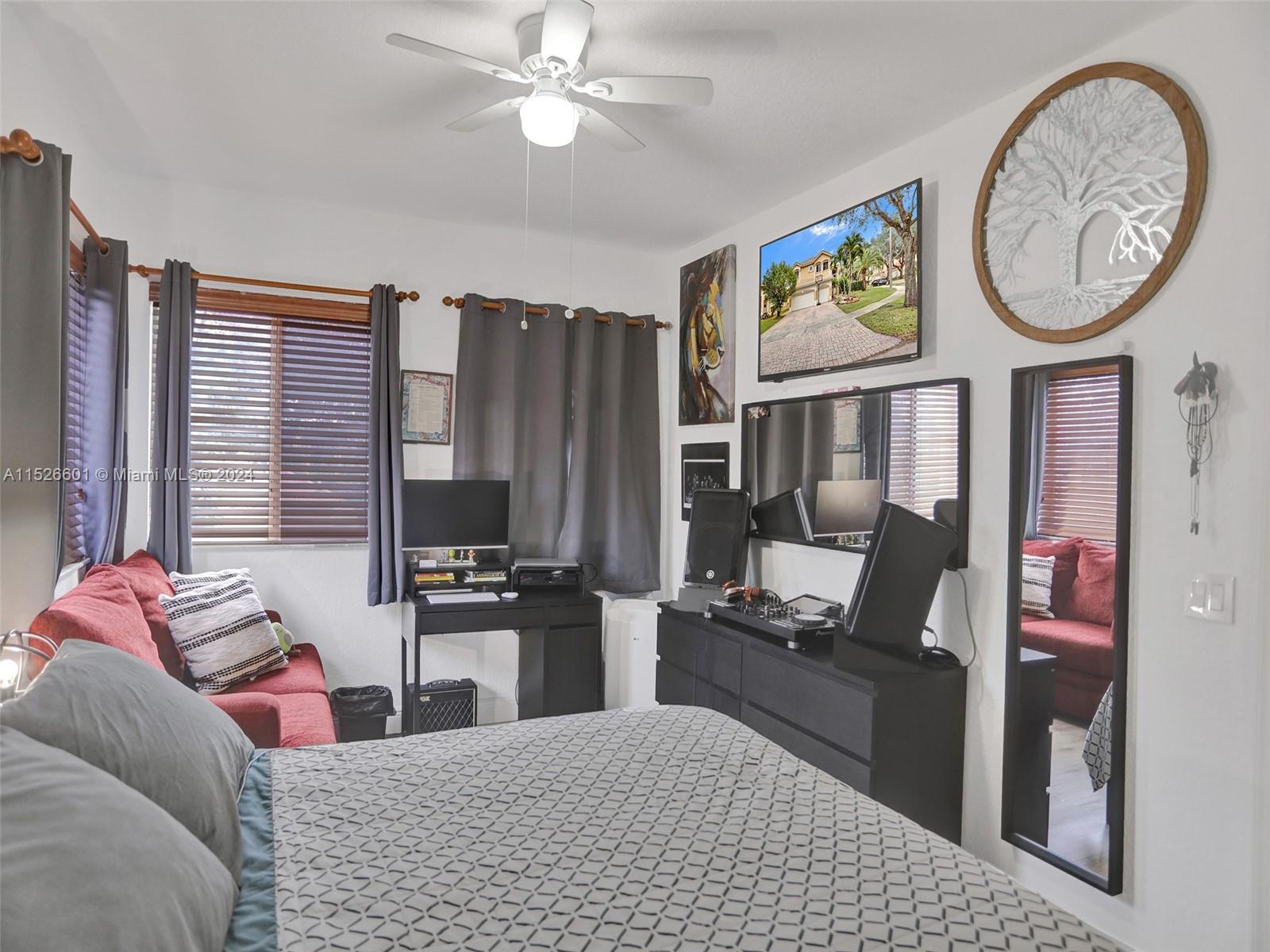 Spacious two-story corner lot home on a gated community. One bedroom and full bathroom on first floor. Tile on main floor & wood laminate flooring on second floor. Kitchen features stainless steel appliances, granite countertops, and wood cabinets. New A/C and Tankless Water Heater, accordion shutters, fresh paint. Second floor features oversized master bedroom with walk-in closets, upgraded master bath, double vanity sink with quarts top. Bonus room which can serve as den, office or playground. Large patio with room for pool and trees. Convenient location near I-75, Pembroke Gardens Mall, Restaurants, and Hospital.