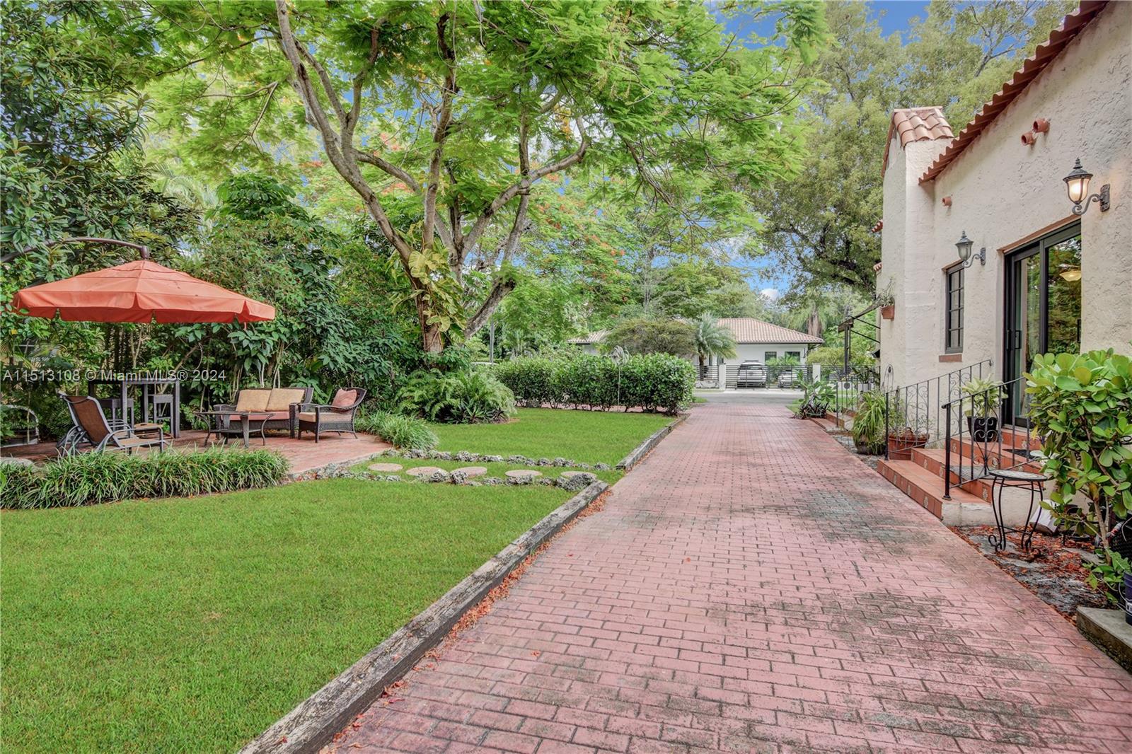 Welcome to this beautifully renovated & immaculate Spanish-style home in Coral Gables. Huge nearly 9,000 sq ft lot where others are 5000-6000 max. Vibrant flowering trees and a large driveway welcome your home. Old-school Gable's style with many modern features. Open living area with a well-appointed kitchen and entertaining space. Closets galore. Beautiful bathroom. Enjoy the sound of birds chipping in canopied garden terrace. Close to everything you need, minutes from best restaurants, shopping and more. Impact glass windows and doors keep this home cool and quiet. With an over-sized lot you could add a pool or even create your dream home! The city may allow you to expand to a 2-story home with rooftop terraces, large pool, and lots of outdoor entertaining space!