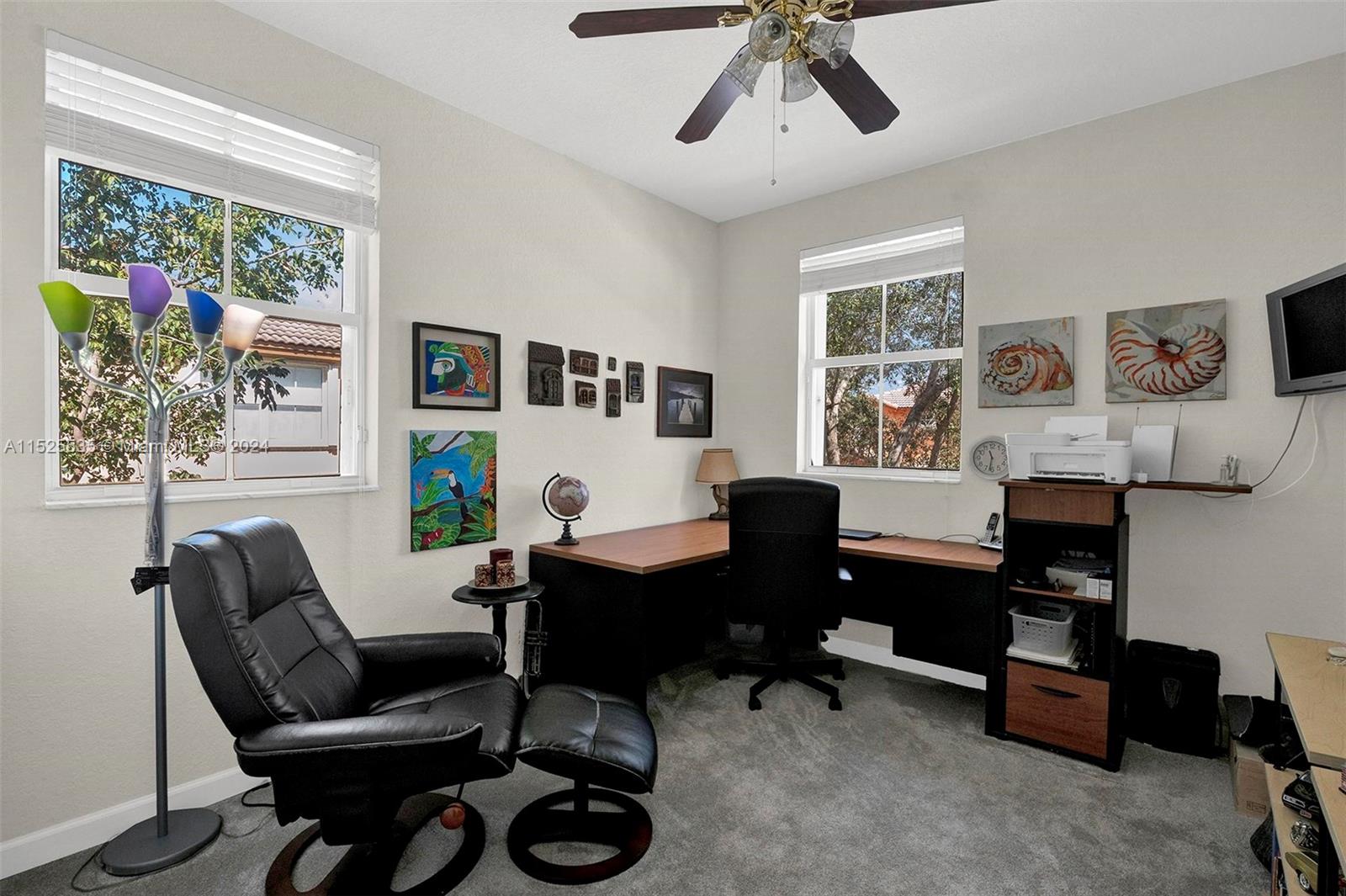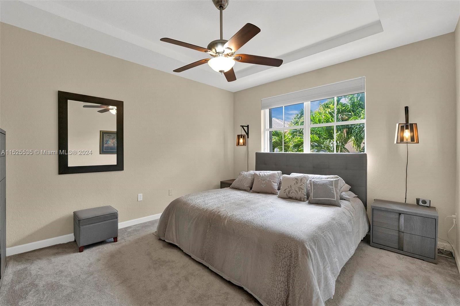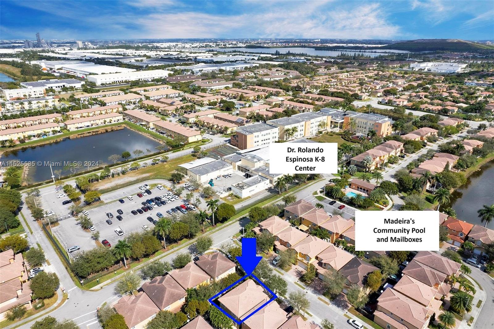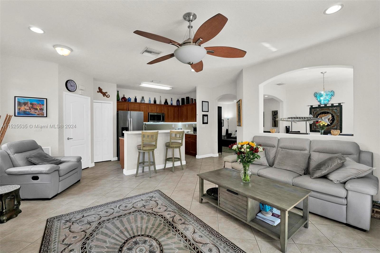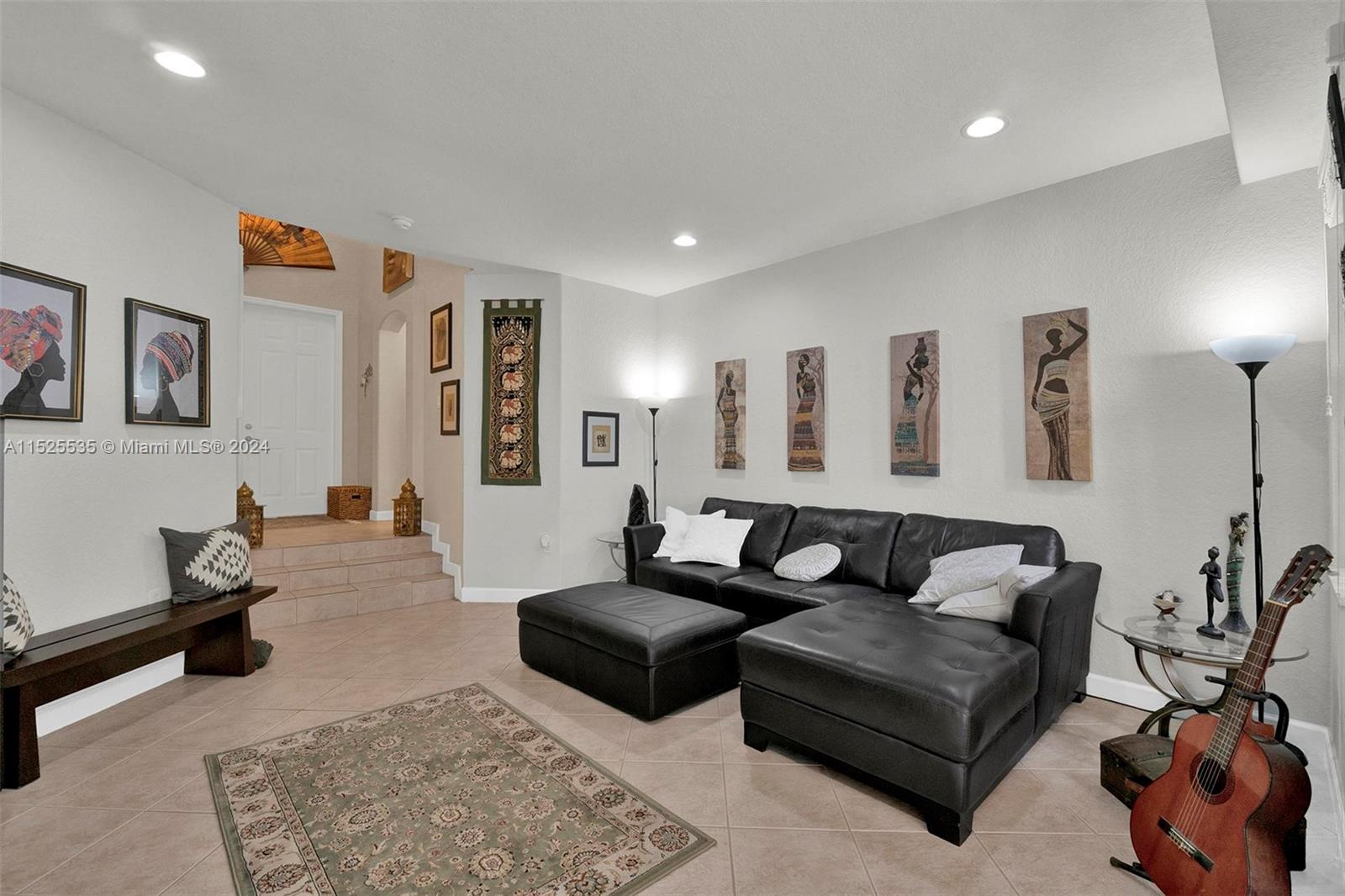 This corner home in IMMACULATE condition is a MUST-SEE in Madeira at Islands at Doral! When you open the double-door to come in, you see the bright living room and separate dining room, with the the half bath to the left, and the stairs to the right. The 4 beds/2 full baths are upstairs, offering privacy when you are entertaining. The family room and kitchen are not visible from the front door, so you won't have to worry so much about a messy kitchen when you cook. The patio is spacious and well-kept, and does not require mowing. Separate laundry room with full-size machines and a 2-car garage. Very close to schools, to the community pool, to the association's clubhouse and to Doral Legacy Park, but also close to two Turnpike exits. You will want to live here when you visit it in person.